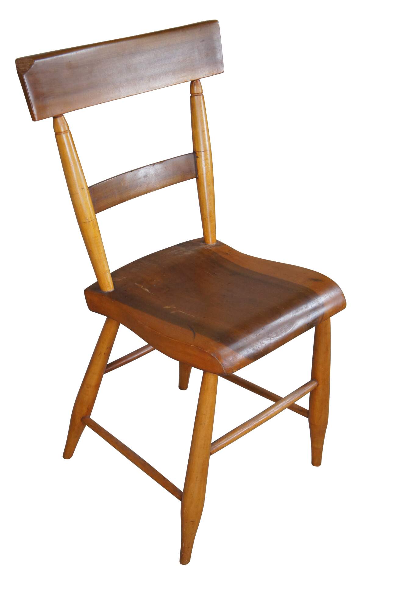 A charming antique side chair. Features a petite size made from maple with a contoured plank seat. A fun addition to any space.