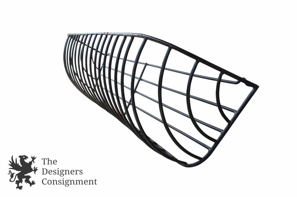 Iron coated black window box. 55" with rounded front. Mounts along the outside of the back to any solid surface.