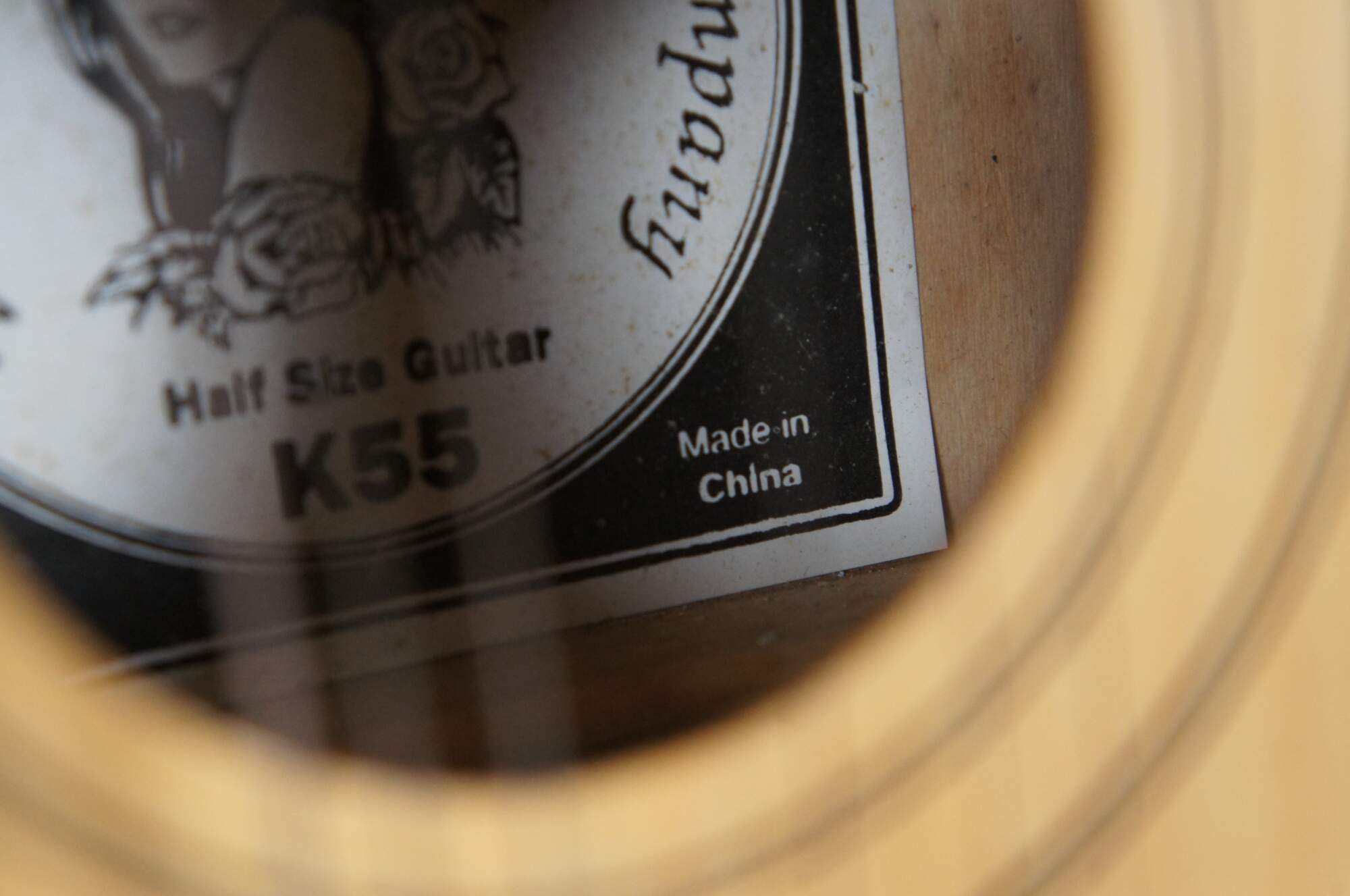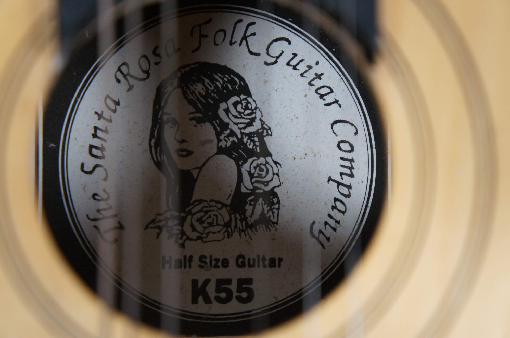 Mid to late 20th century Santa Rosa Folk Guitar Company model K55 Half Size Guitar. Perfect proportions for young / student musicians. Made in China. Small strap attached to the back from previous use as a display piece. No case.