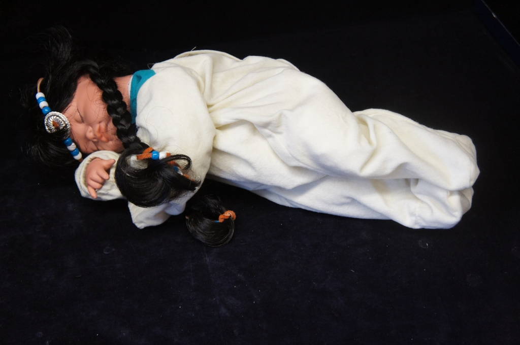 Vintage Native American Indian Ceramic Sleeping Baby Doll Porcelain Realistic
