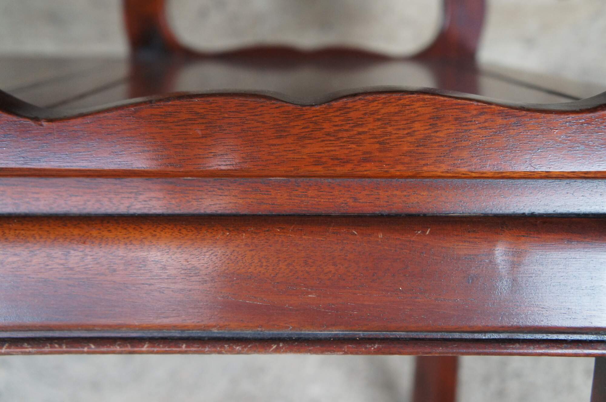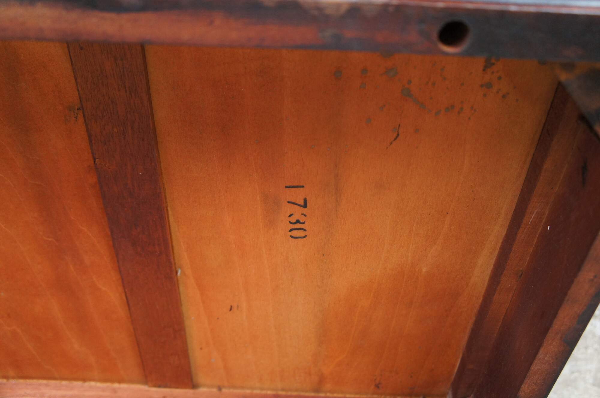 Good vintage condition, wear and distressing from age and use, marking / scuffing / fading, finish loss, indents, small missing trim piece.