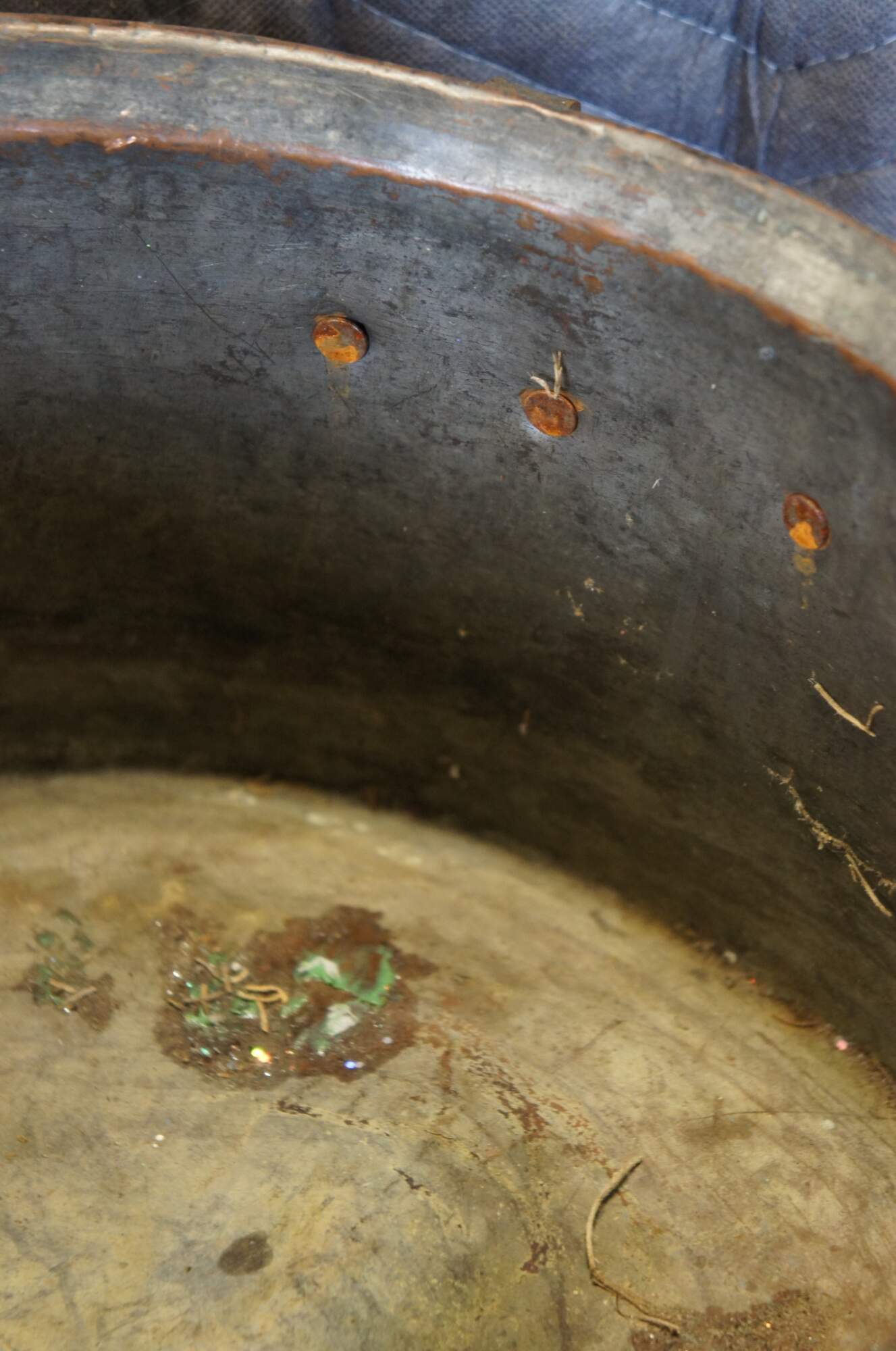 Good Overall - Tarnish; dents; sticky residue from use as planter