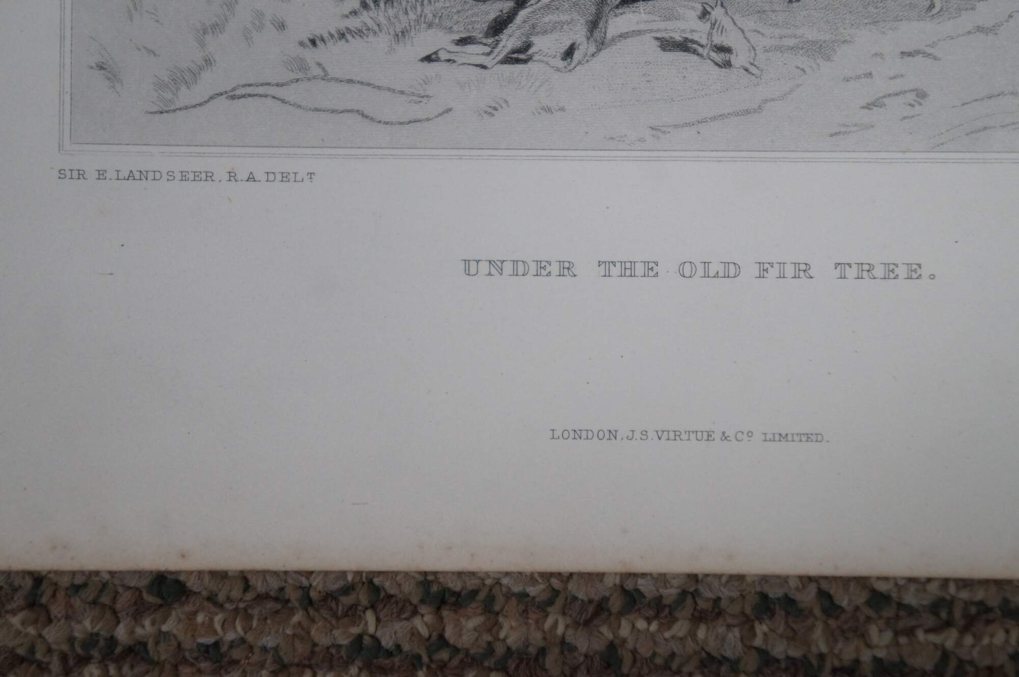 Lot of 6 late 19th century black and white engravings, plates extracted from the book The Works of Sir Edwin Landseer published by Virtue & Company, London. Includes several hunting scenes, a depiction of the ballad Chevy Chase, and a scene of Sancho Panza from Don Quixote.