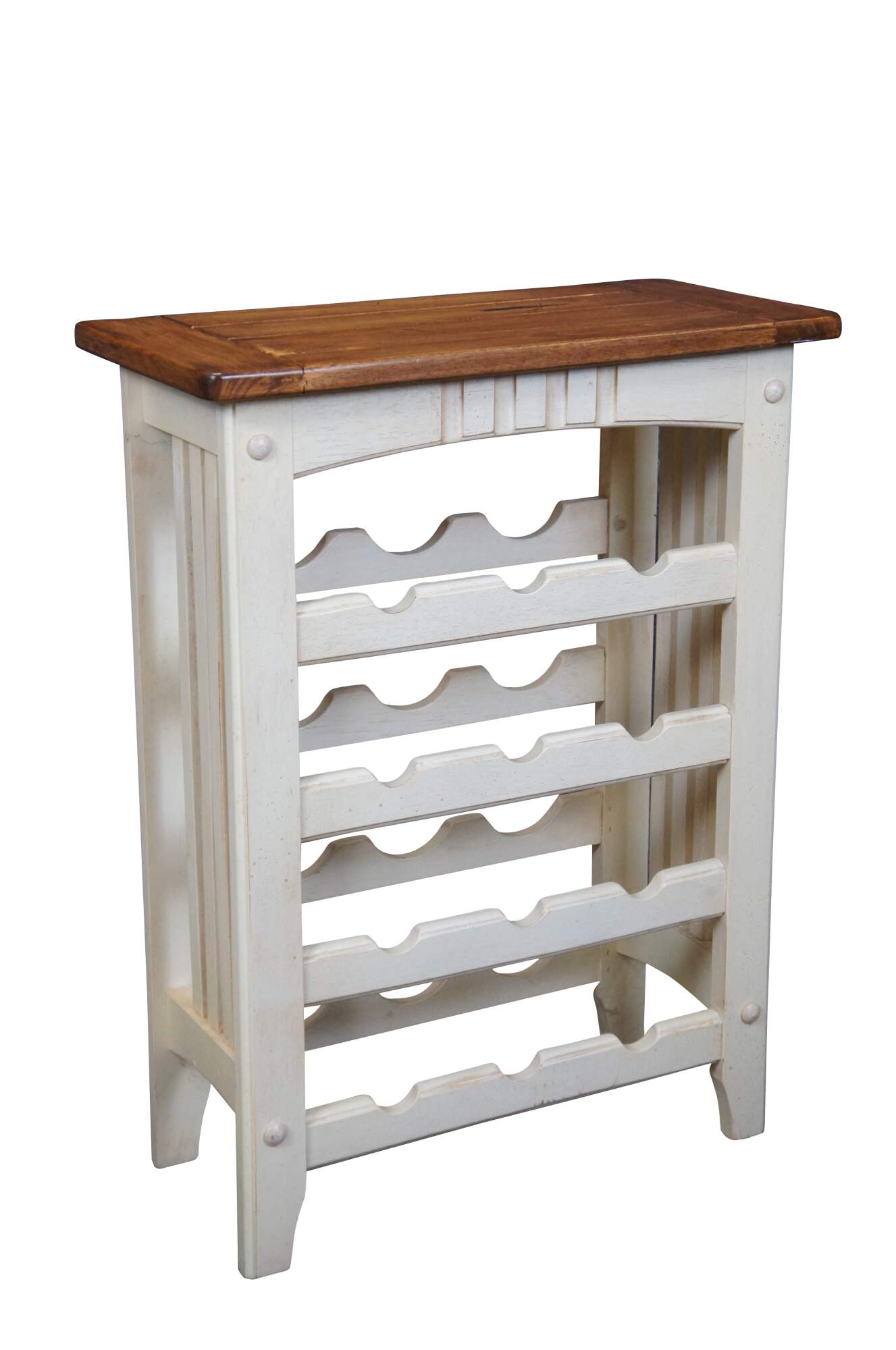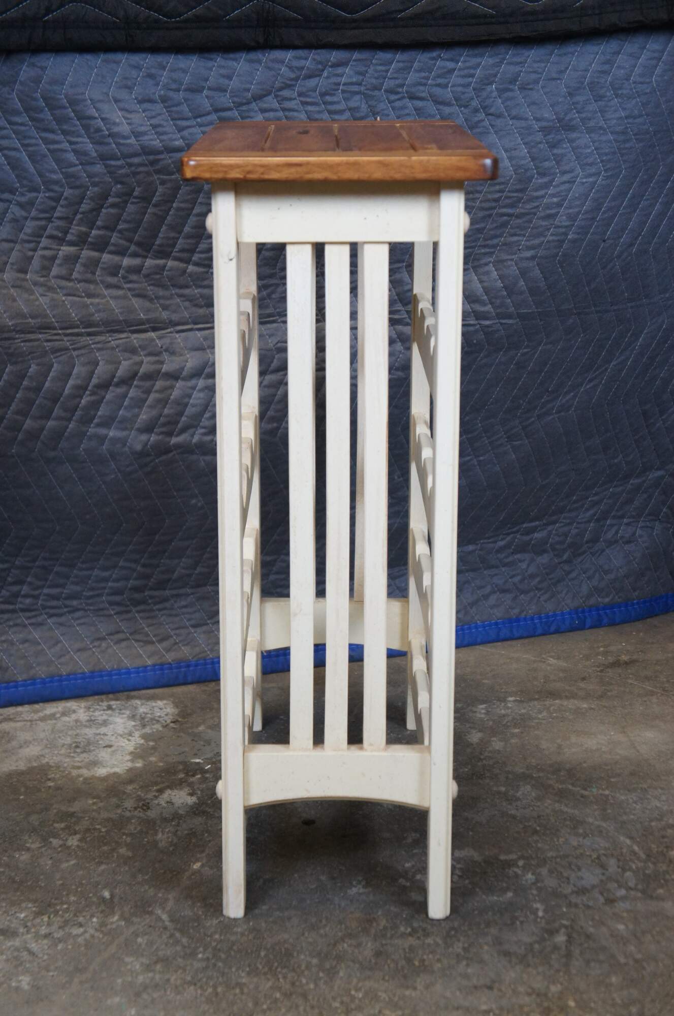 Late 20th century wooden wine bottle rack / holder with capcity for 12 bottles. White painted base with wood tone top for serving. Made in Thailand.