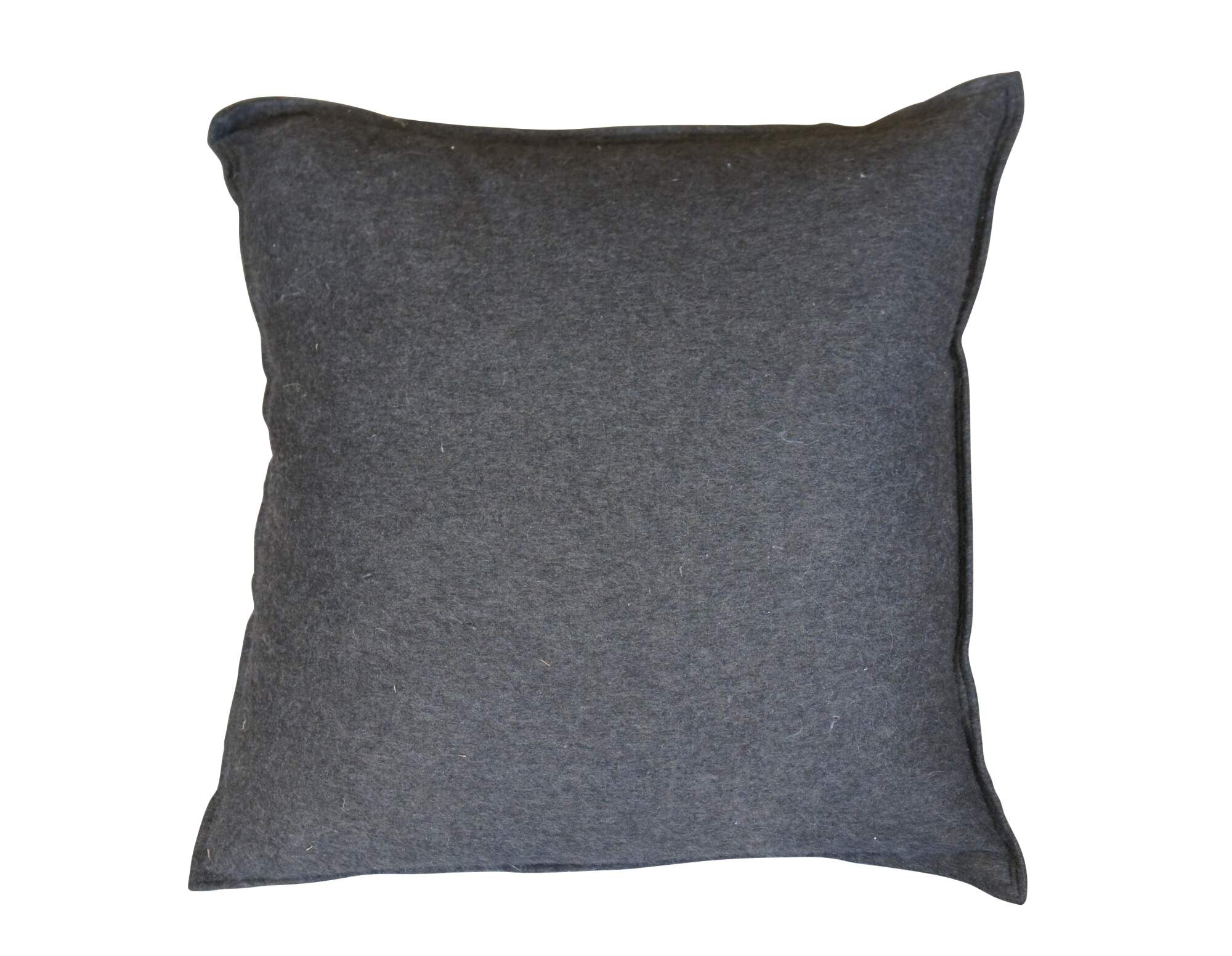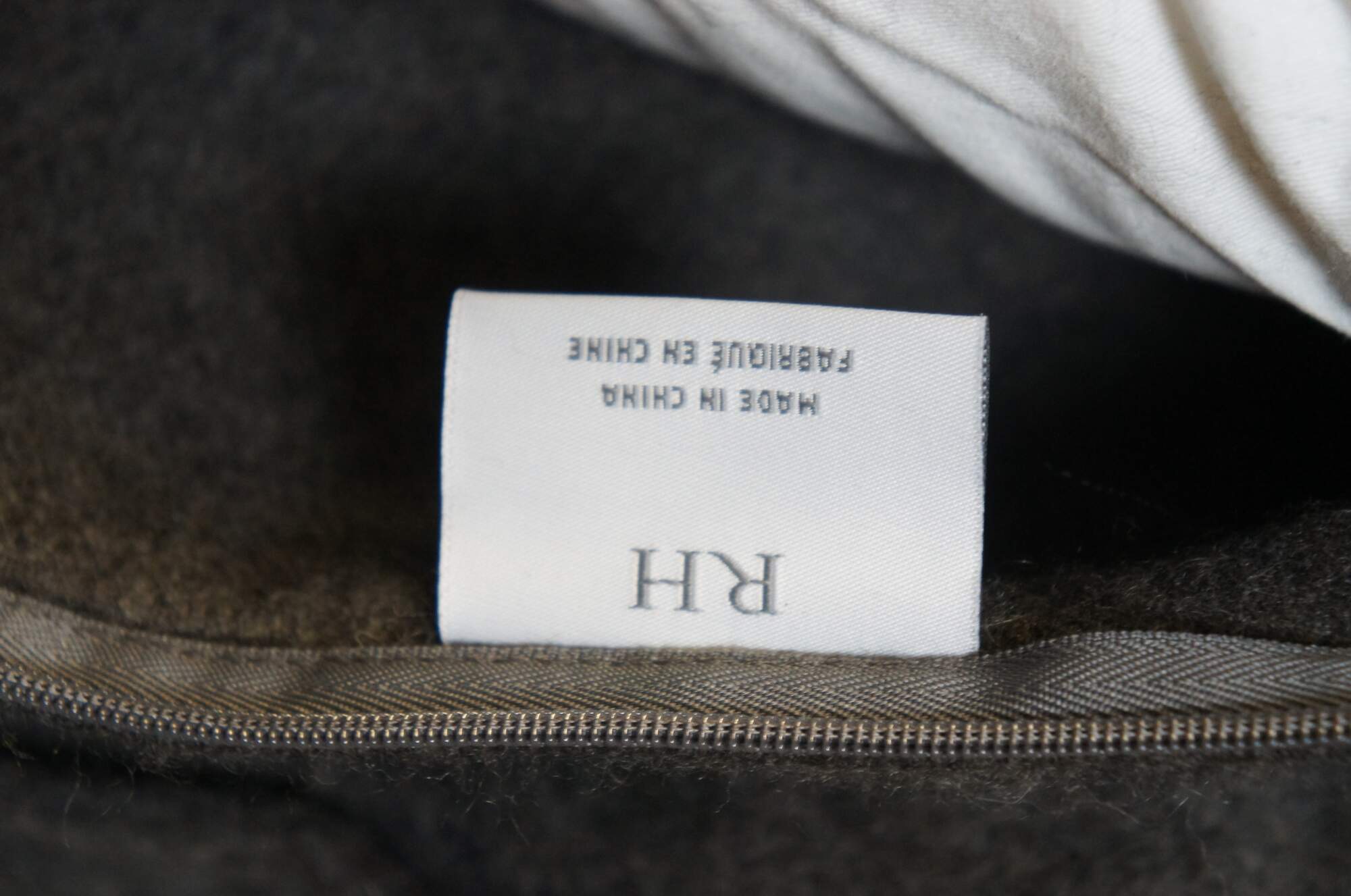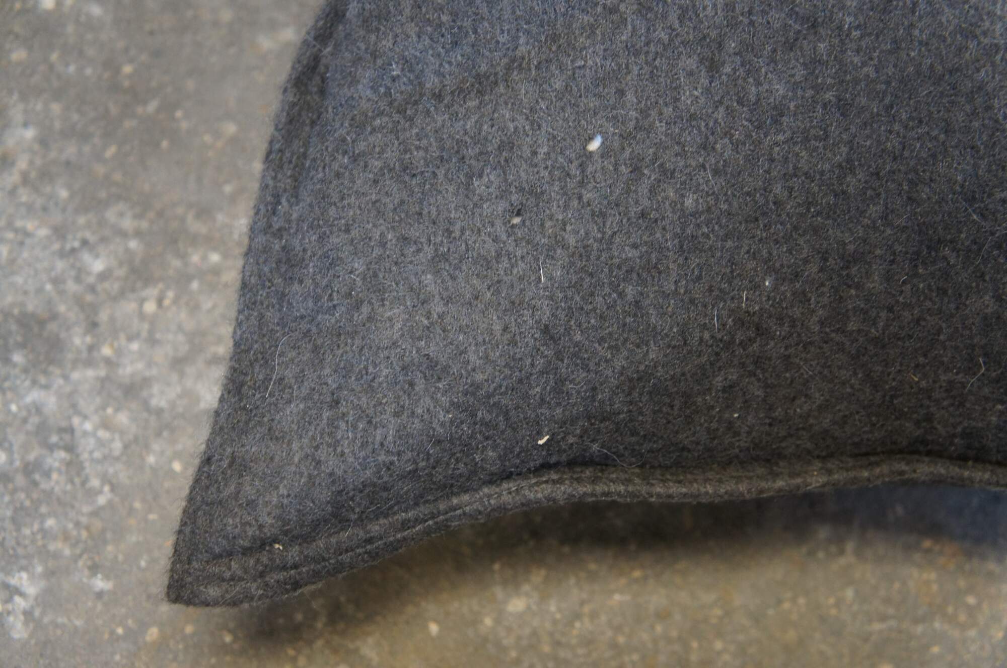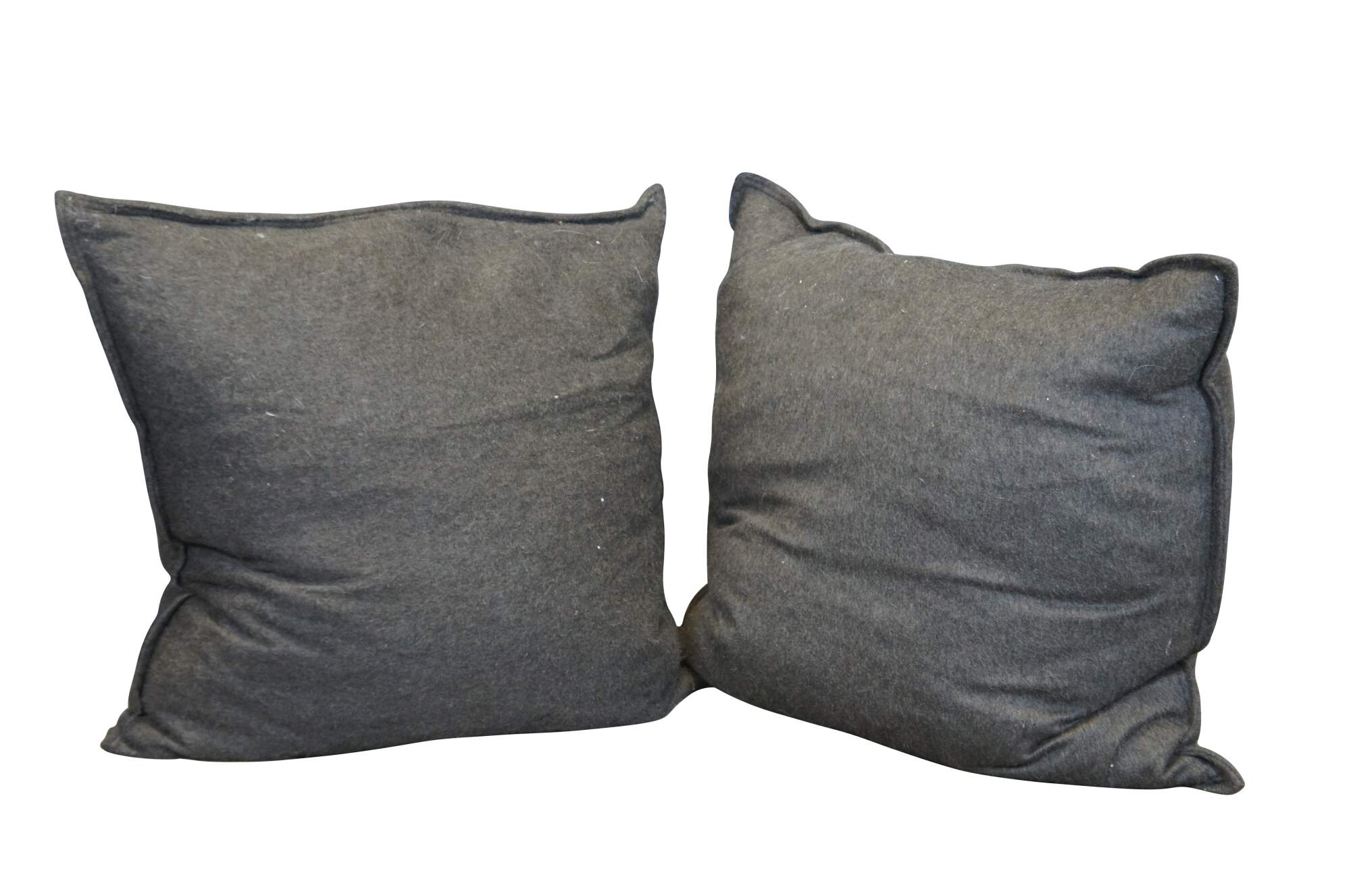 Very large pair of Restoration Hardware felted charcoal gray, 100% cashmere square throw pillows; down / waterfowl feather filled. Zipper closure.