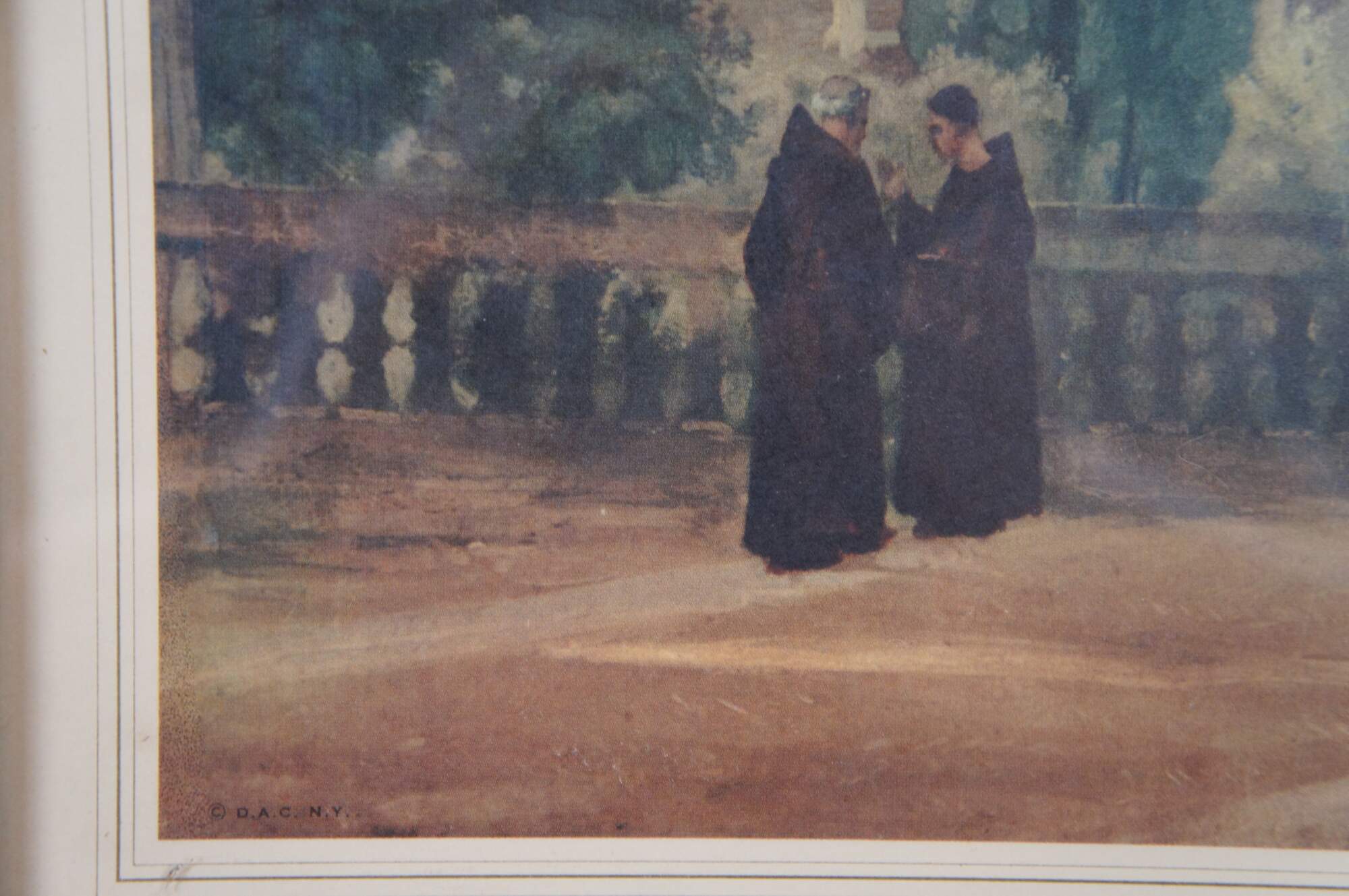 The Donald Art Company made reproductions prints that were sold in all major department stores between 1940 – 1984. Donald Bonnist started the Donald Art Company from meager beginnings, and it became the largest fine art publishing business in the world in its time. Before there was the Donald Art Company (DAC) there was M. B. & Z. Starting in 1924, Donald and his father, Maurits Bonnist, worked together to develop their art publishing business, M. Bonnist & Zonen in Amsterdam, Holland. One of their specialties was a series of movie star photo postcards for which they had exclusive rights, and which are still sought after by collectors. Maurits Bonnist died young of a heart attack, and in order to support his mother and siblings, Donald had to drop out of high school to run the business. In 1939, Donald and Serine van Embden (an artist in her own right) came to America on their honeymoon and were unable to return to their homeland due to the escalation of WWII. In America, a new company was born in their small rented apartment in Forest Hills, NY. The business continued to grow and after about 20 years, when the Mamaroneck building was outgrown, Donald moved DAC to Port Chester (Rye Brook), NY, where he built the Donald Art Plaza in 1965. A 70,000-square-foot building, it housed offices, warehouse space and “Gallery 90” where the ever-growing Donald Art Company Collection could finally be displayed. DAC developed initially as a publisher of paper art reproduction by lithography for the picture framing industry but in 1960 Donald partnered with Gus Montovano of Litho-Craft of New England to develop a technique for printing on artist canvas, textured to feel like brush strokes. The company made artwork for premiums, promotions and incentives and they offered a variety of art-related products, including pictures for Jigsaw puzzles. Donald Bonnist retired from the company in 1984, and passed away in 1986 at his home in Mamaroneck, NY, at the age of 78." (Source: Donald Art)