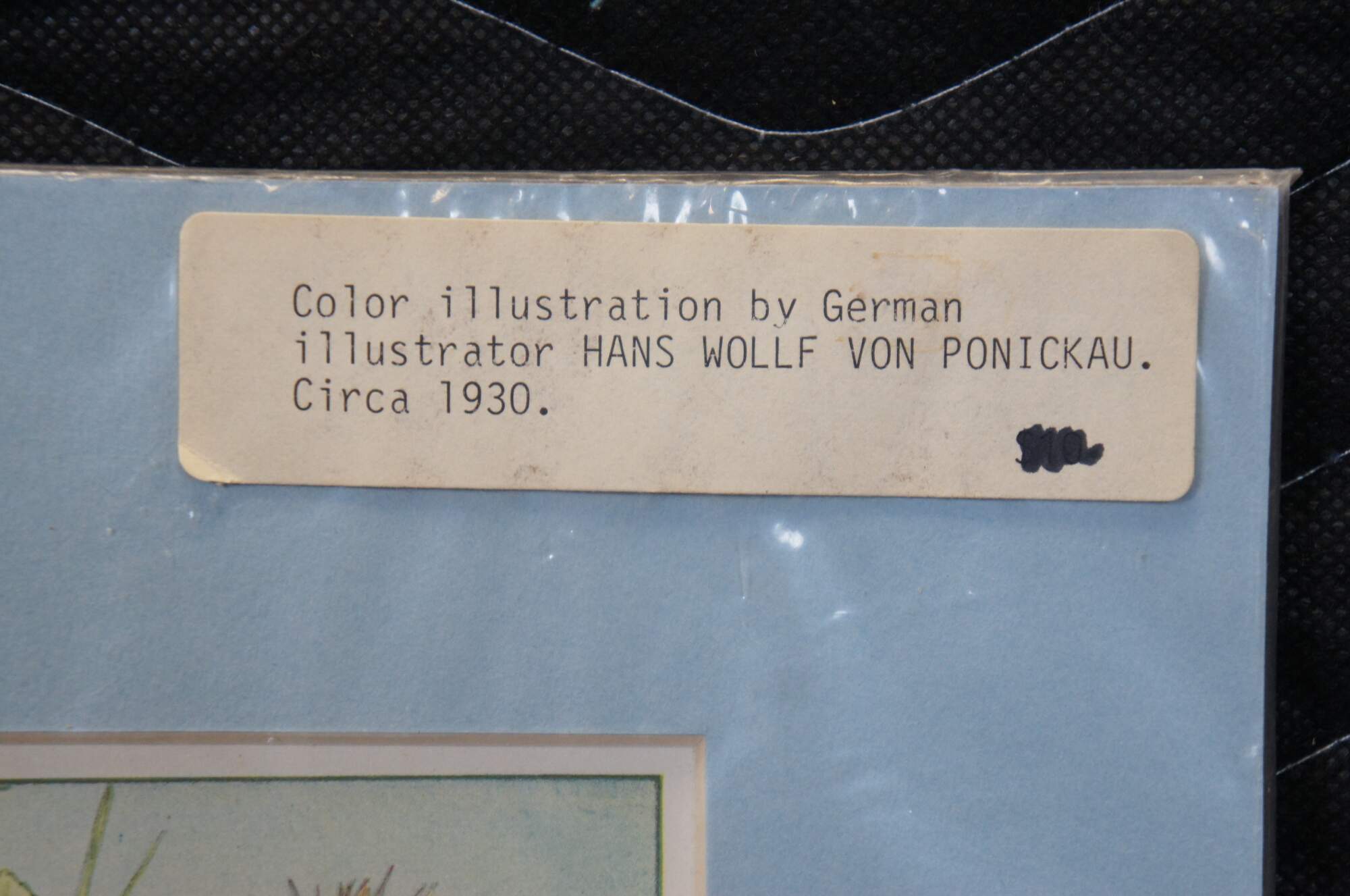 "Hans-Wolff von Ponickau came from the old Saxon-Meissen noble family of the von Ponickau. He studied agriculture at the University of Bonn. In 1922 he became a member of the Corps Rhenania Bonn. In 1923 he completed his studies as a graduate farmer. He then studied painting as a pupil of Josef Eberz at the Academy of Fine Arts in Munich and from 1925 to 1929 as a pupil of Johann Vincenz Cissarz, Hans Leistikow and Franz Karl at the Städelschule Frankfurt. In 1943, a sheet of his was exhibited at the Great German Art Exhibition. As a painter and graphic artist, von Ponickau worked in Göttingen, Frankfurt am Main, Tecklenburg and most recently Münster. He belonged to the Freie Künstlergemeinschaft Schanze. He illustrated numerous children's books from 1930 through the 1950s, designed artists' postcards and bookplates and worked as a landscape painter.