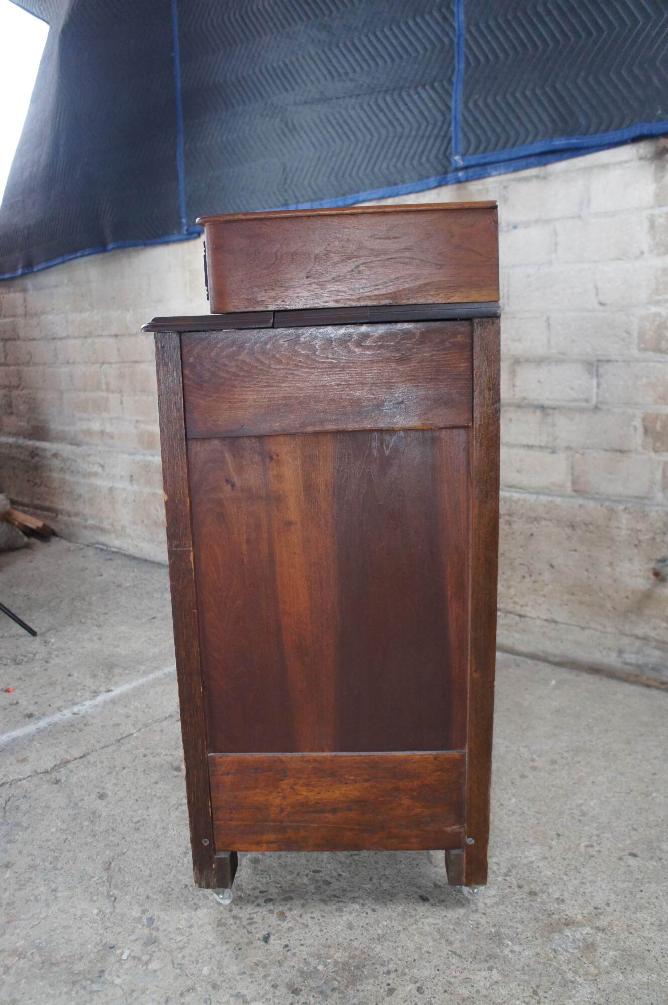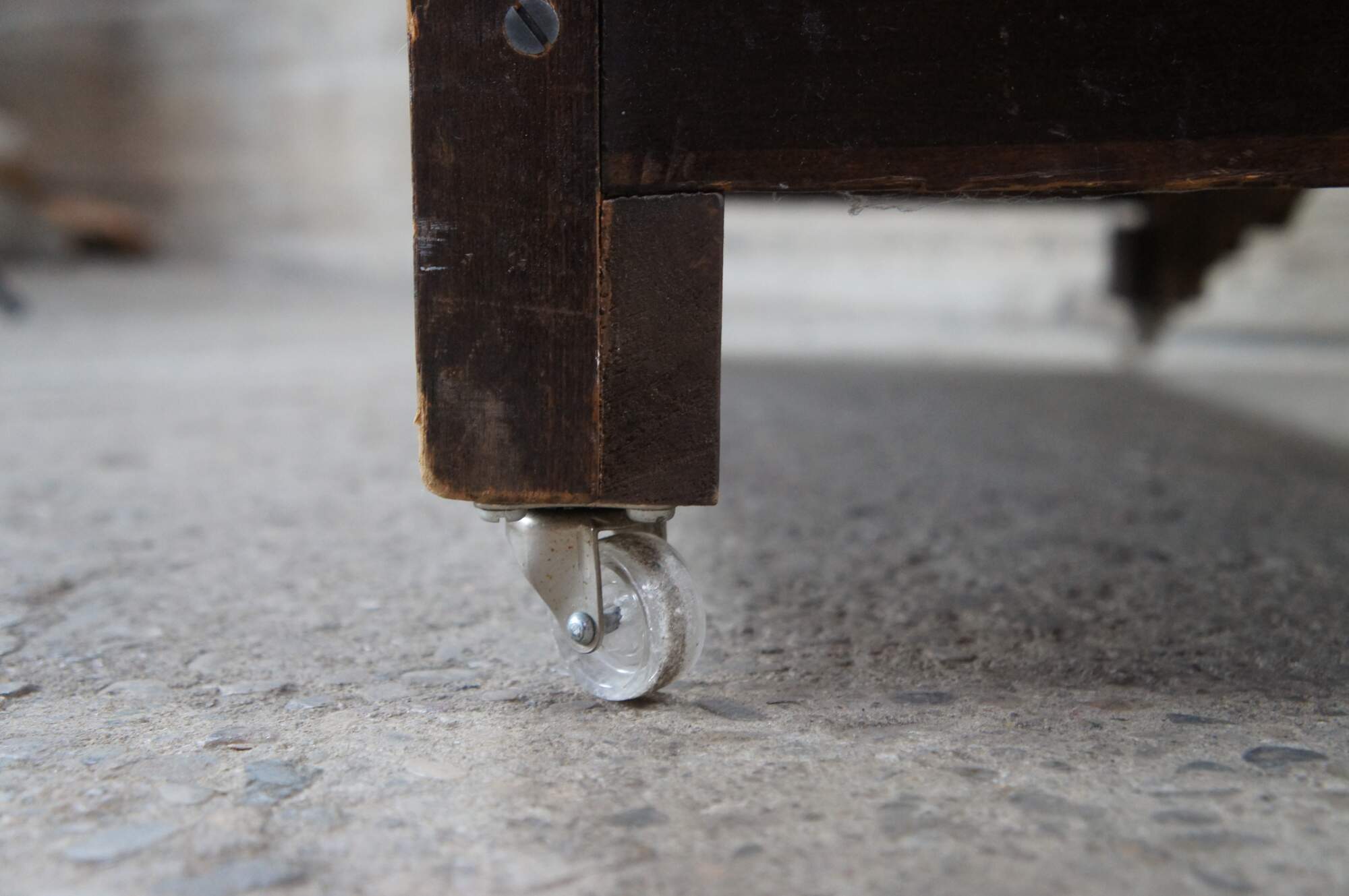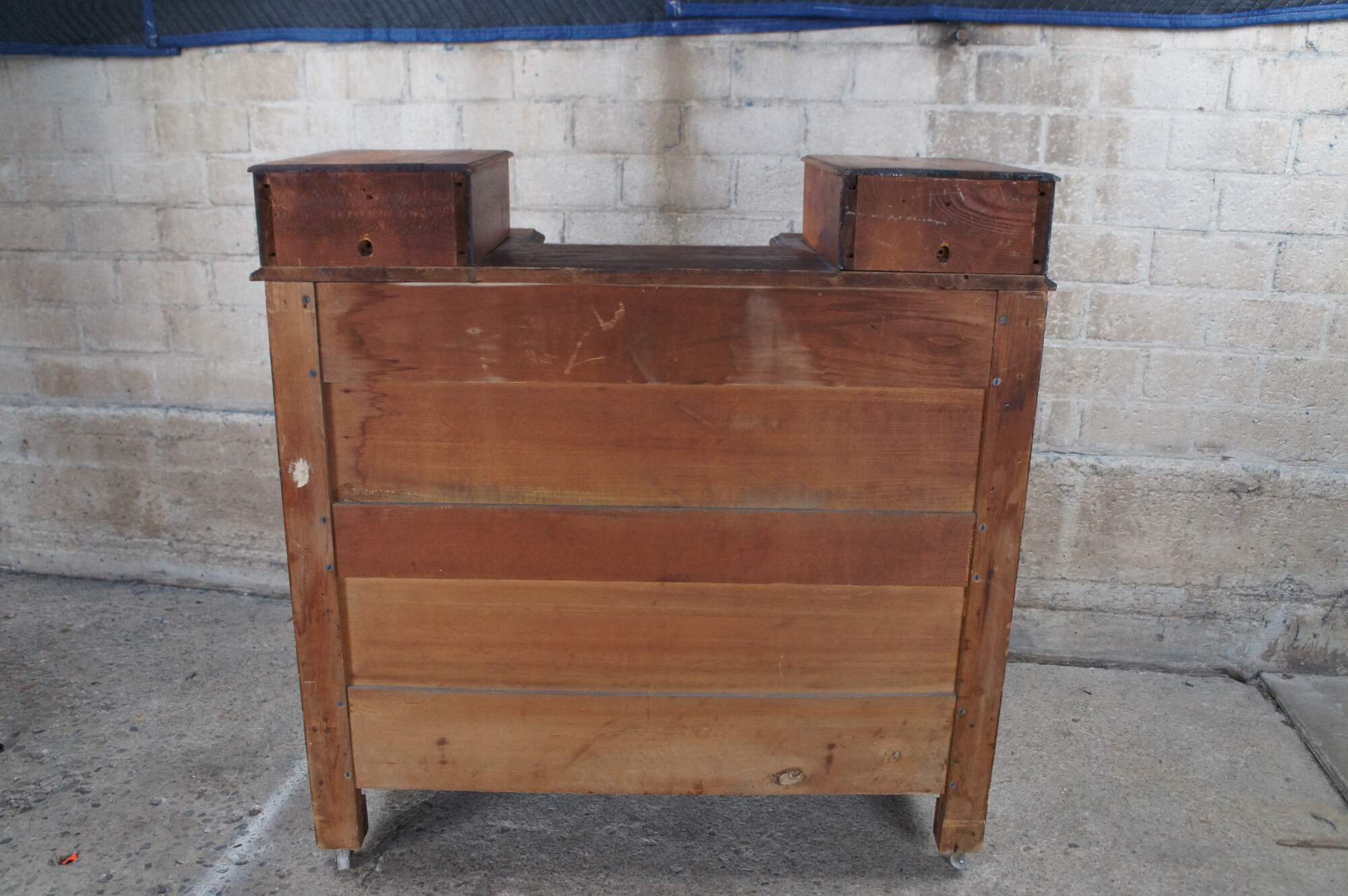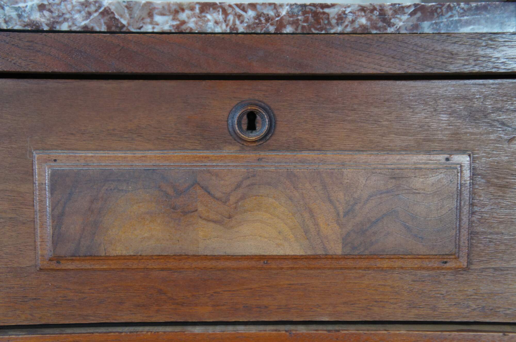 Circa 1880s Victorian dresser. Made from walnut with two glovebox drawers flanking a marble insert and three larger lower hand dovetailed drawers with paneled trim, glass knob pulls, wooden key hole escutcheons, over castors.