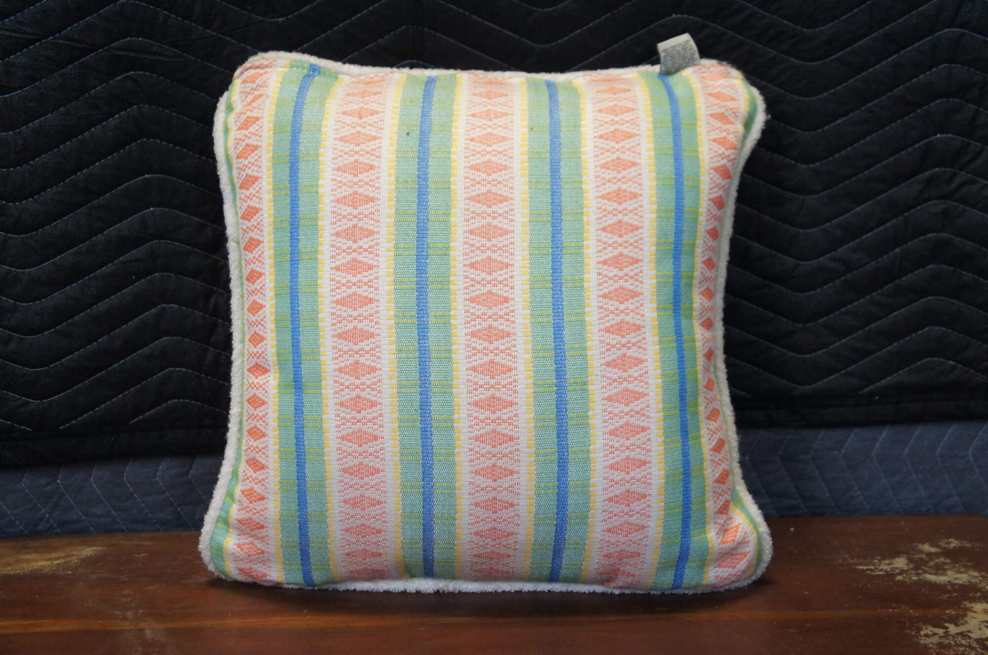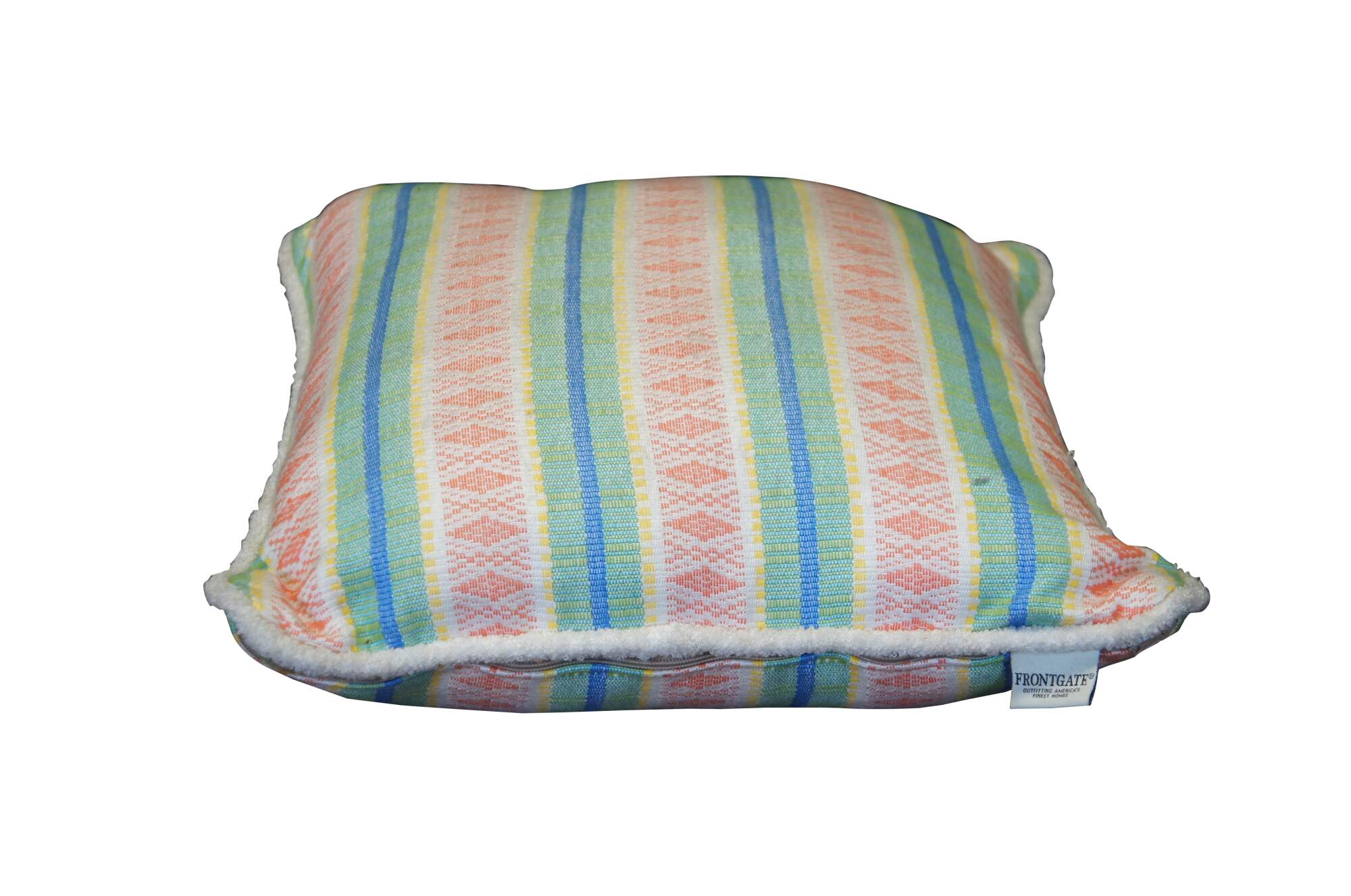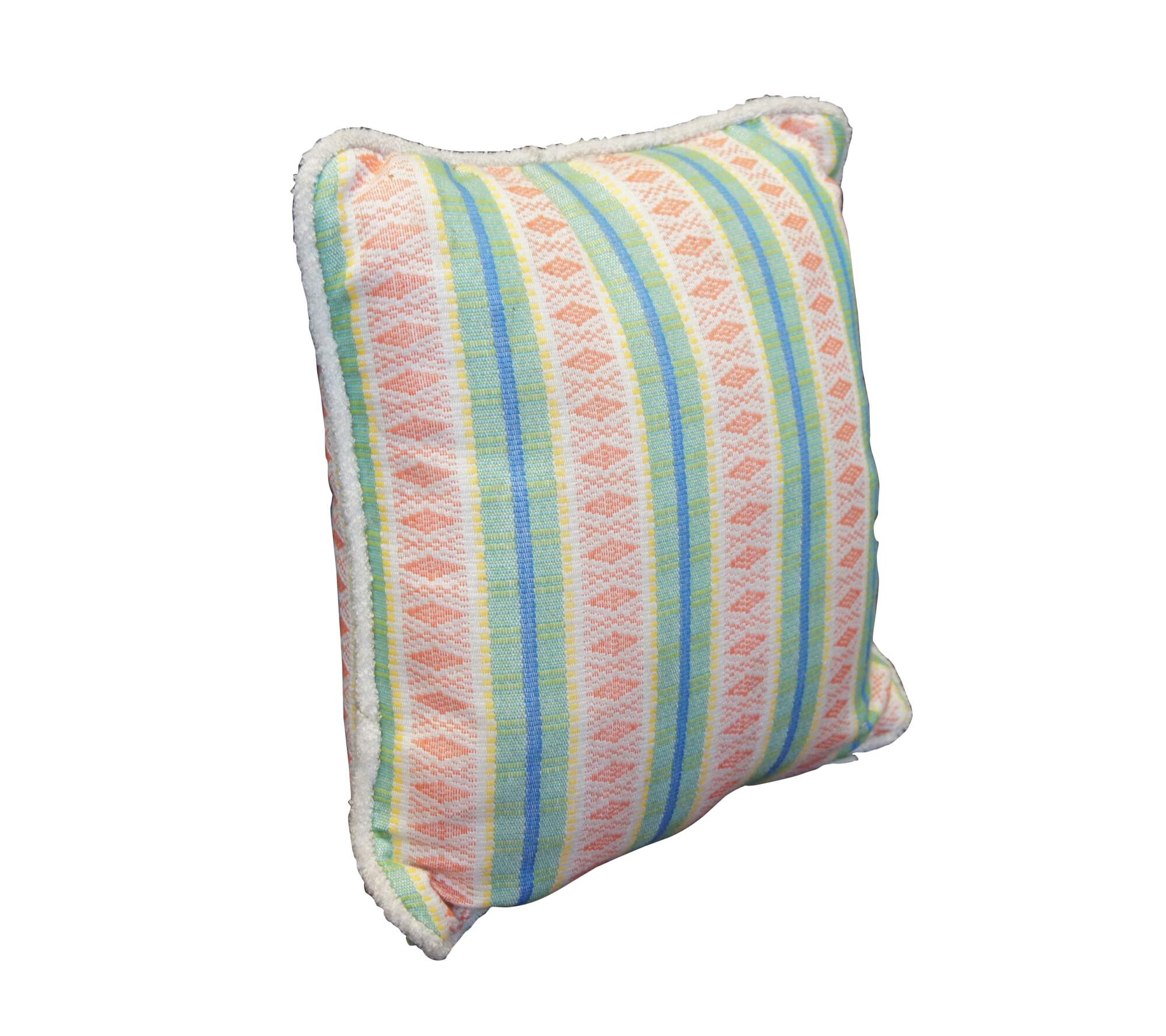 The Diamond Trail Tropical Outdoor Pillow is sure to spruce up any patio or deck with its tribal-inspired striped pattern and twisted terry cording. Boldly colored with diamond designs, the lavish, textured pillow will delight throughout the seasons.