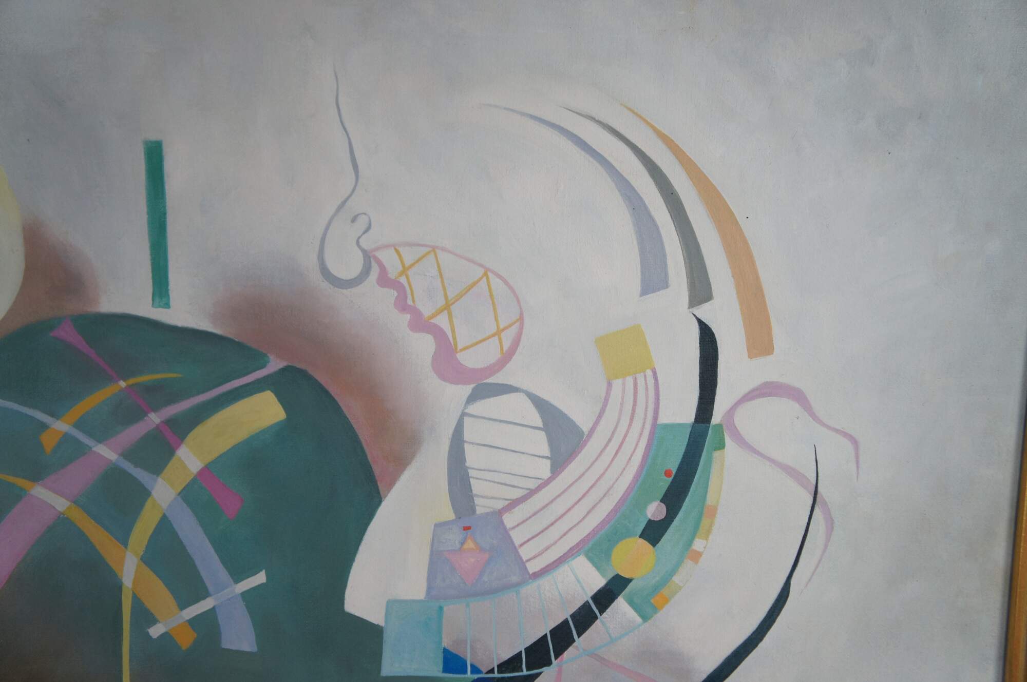 A large hand painted reproduction of Wassily Kandinsky's "Dominant Curve". The original Biomorphic abstraction was painted in 1936. The oil painting is on canvas and framed in gold.