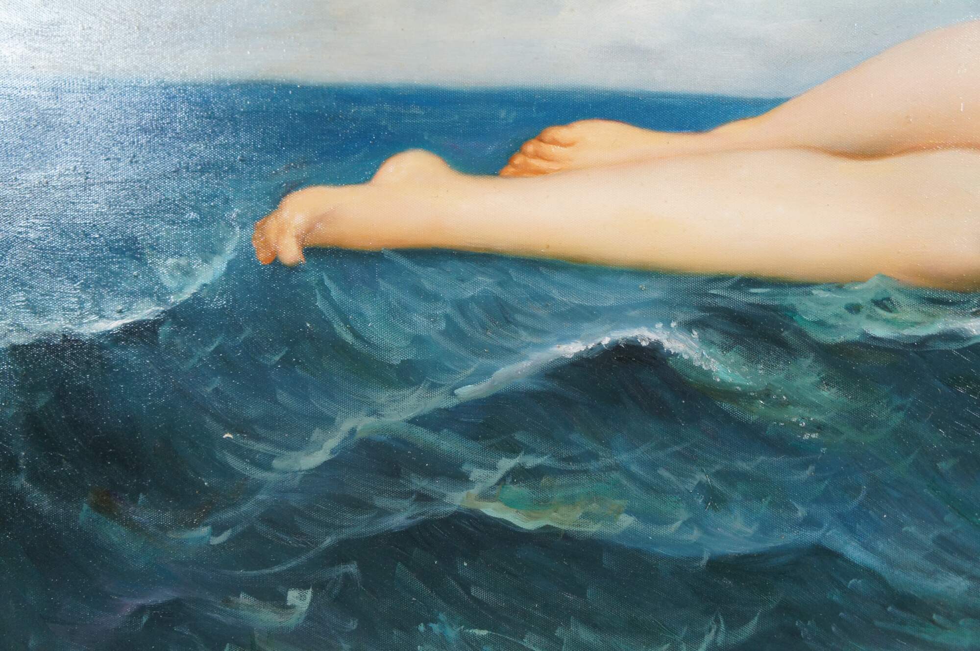 Cabanel took as his subject a famous episode from classical mythology when Venus is born of sea-foam and carried ashore. This theme, very popular in the 19th century, provided some artists with the opportunity to introduce eroticism without offending public morality, under the pretext of representing a classical subject. For Cabanel, the mythological theme is indeed a pretext for the portrayal of a nude figure, which, though idealised, is nonetheless depicted in a lascivious pose.