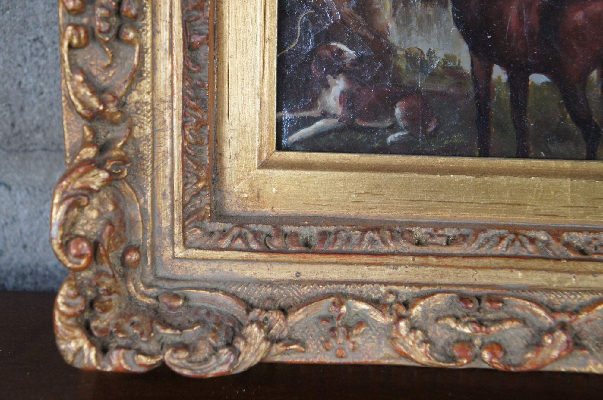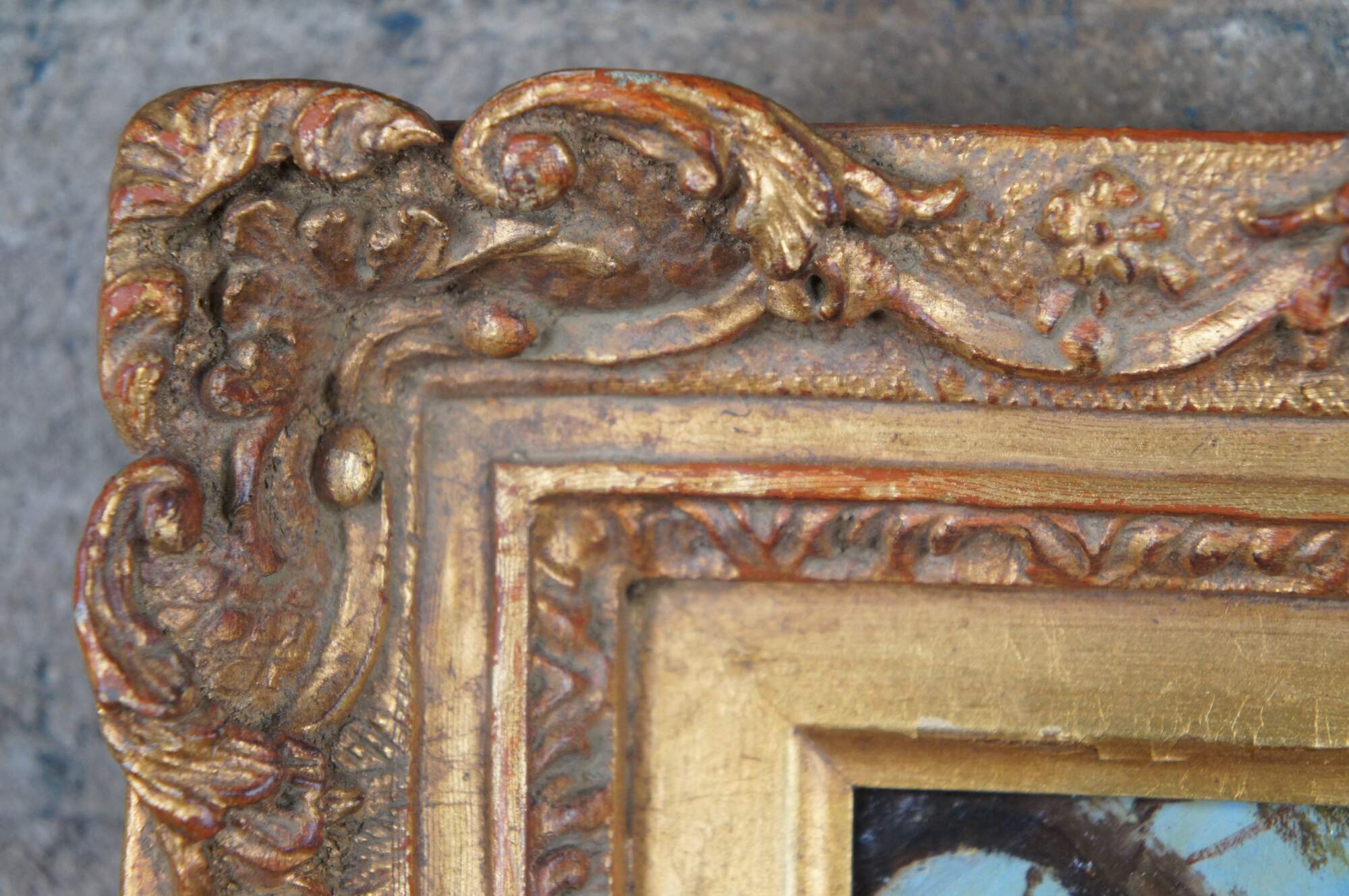 The original painting was completed in 1827. This example is 20th century signed lower right. The oil painting is on canvas with a craquelcure to give character and affect sof age. The painting is framed in gold with an ornate design.