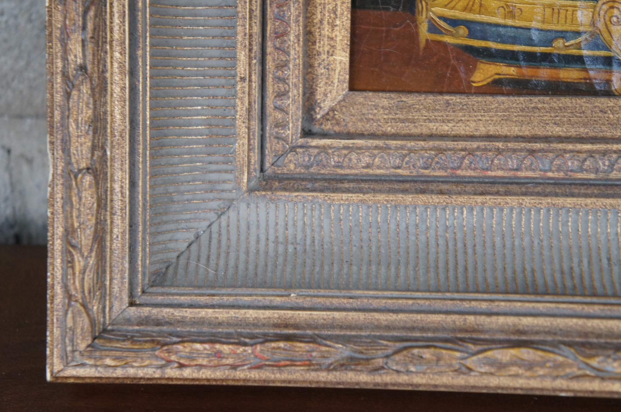 Very Good; Gently Used, craquelure to the canvas. some edge wear to the frame