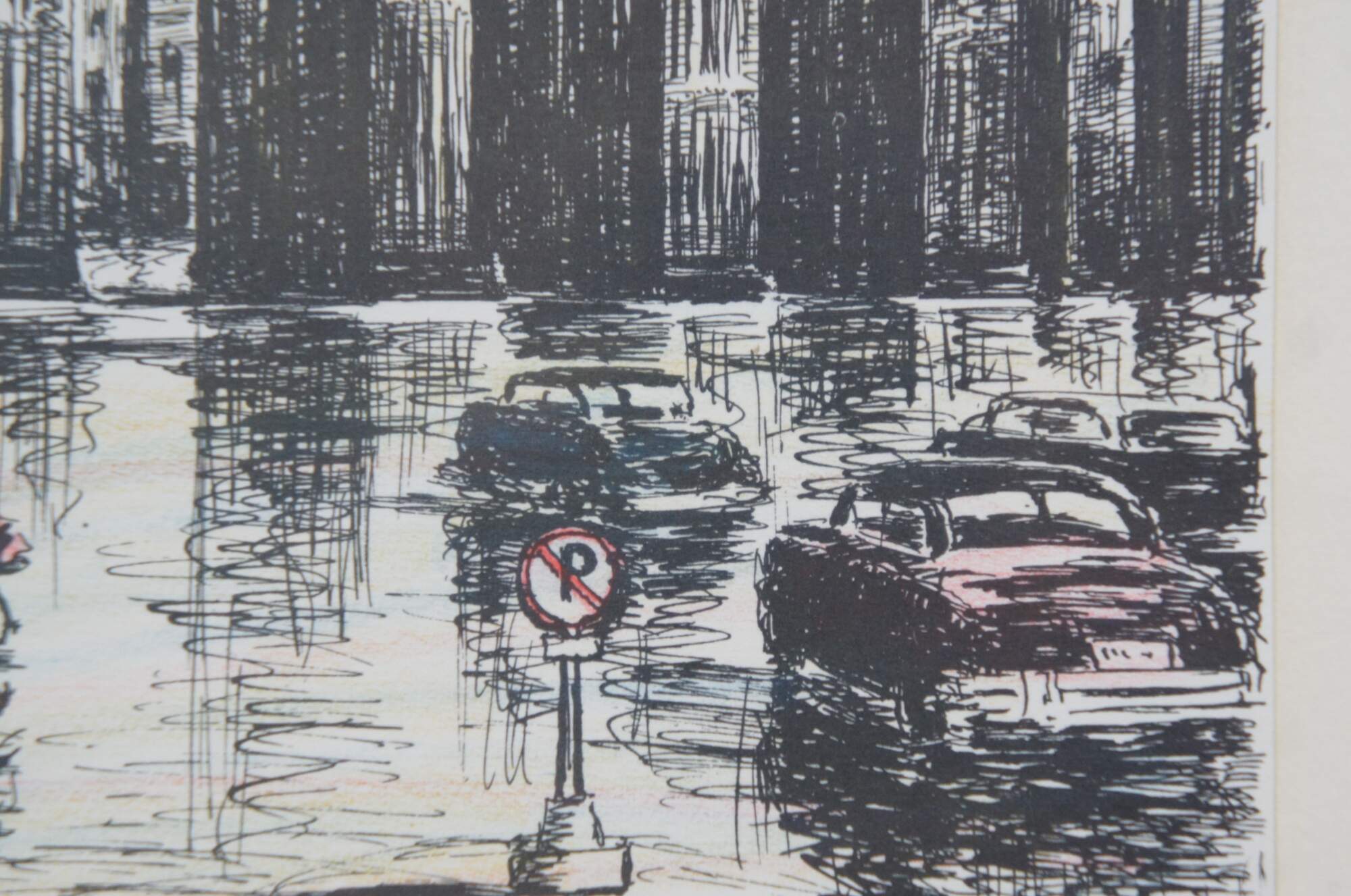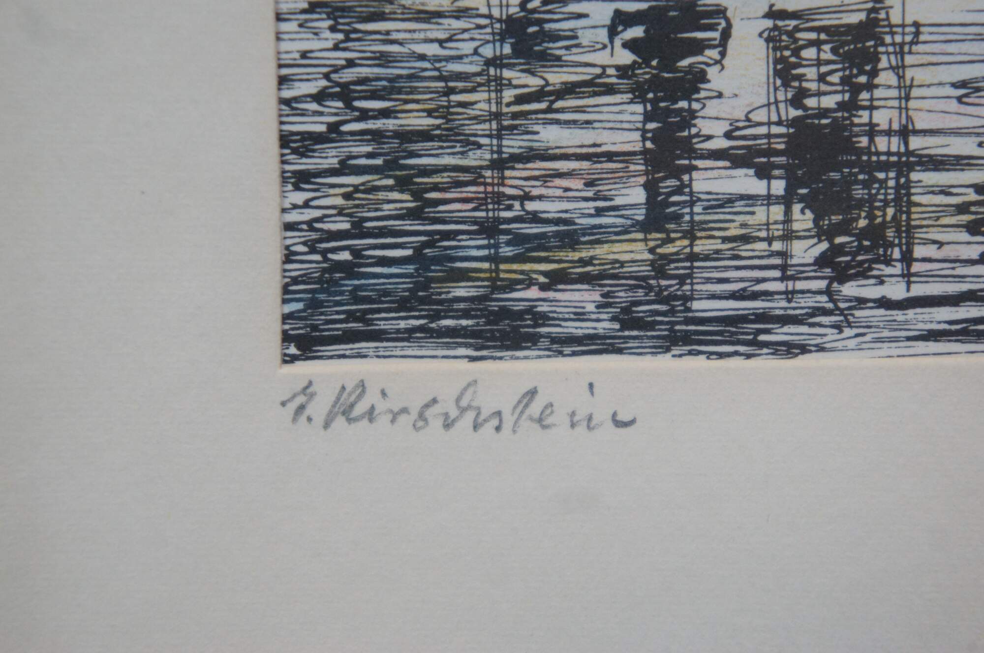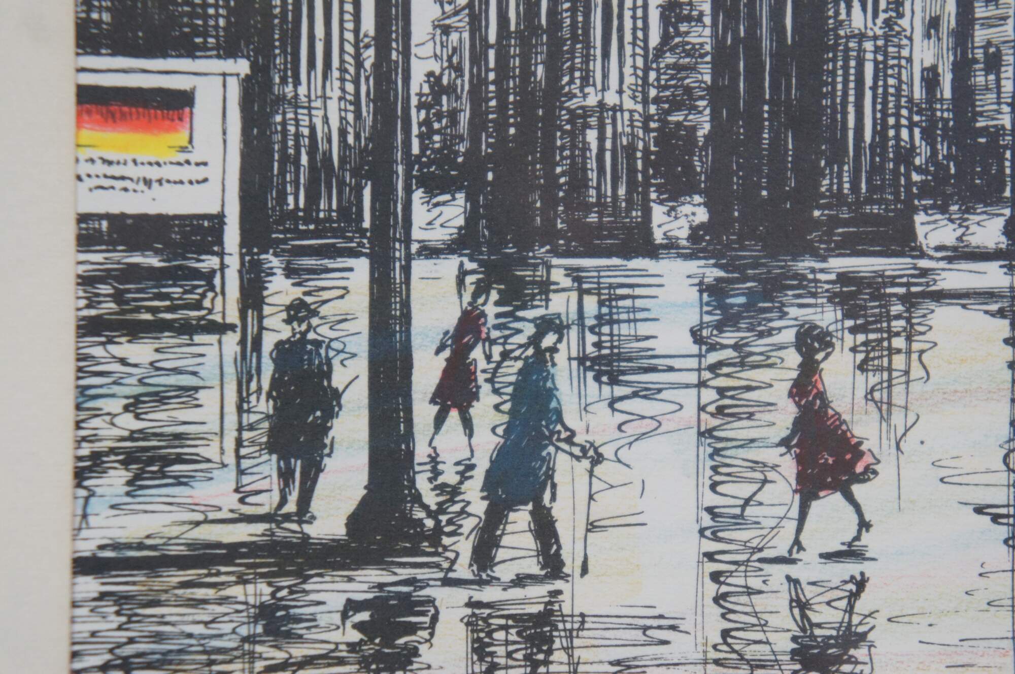 Mid 20th century framed etching of Berlin, Germany's Brandenburg Gate by Erhard Kirchstein (1920-1972). Pencil signed on mat. Black and white beveled frame; white mat.
