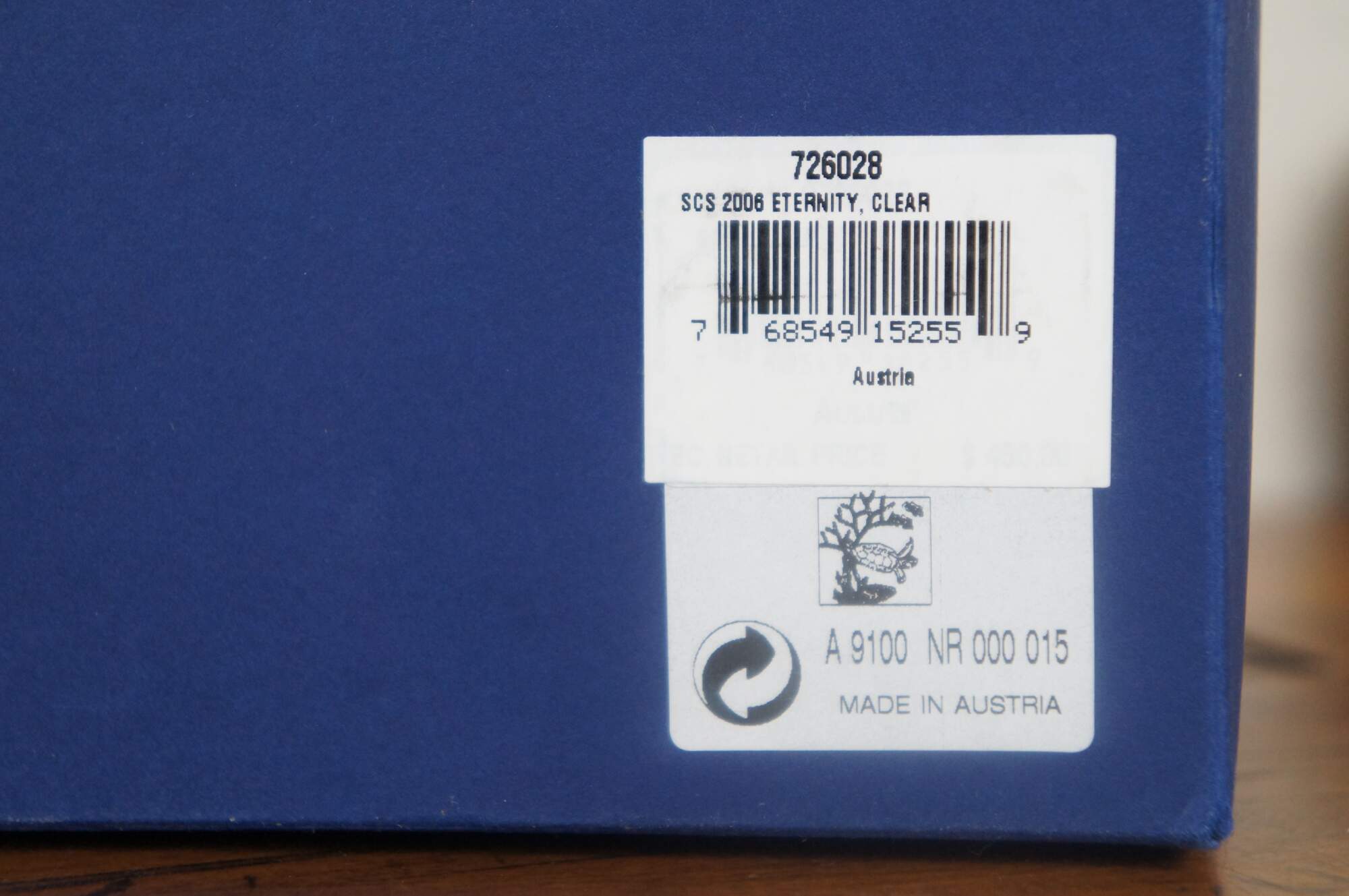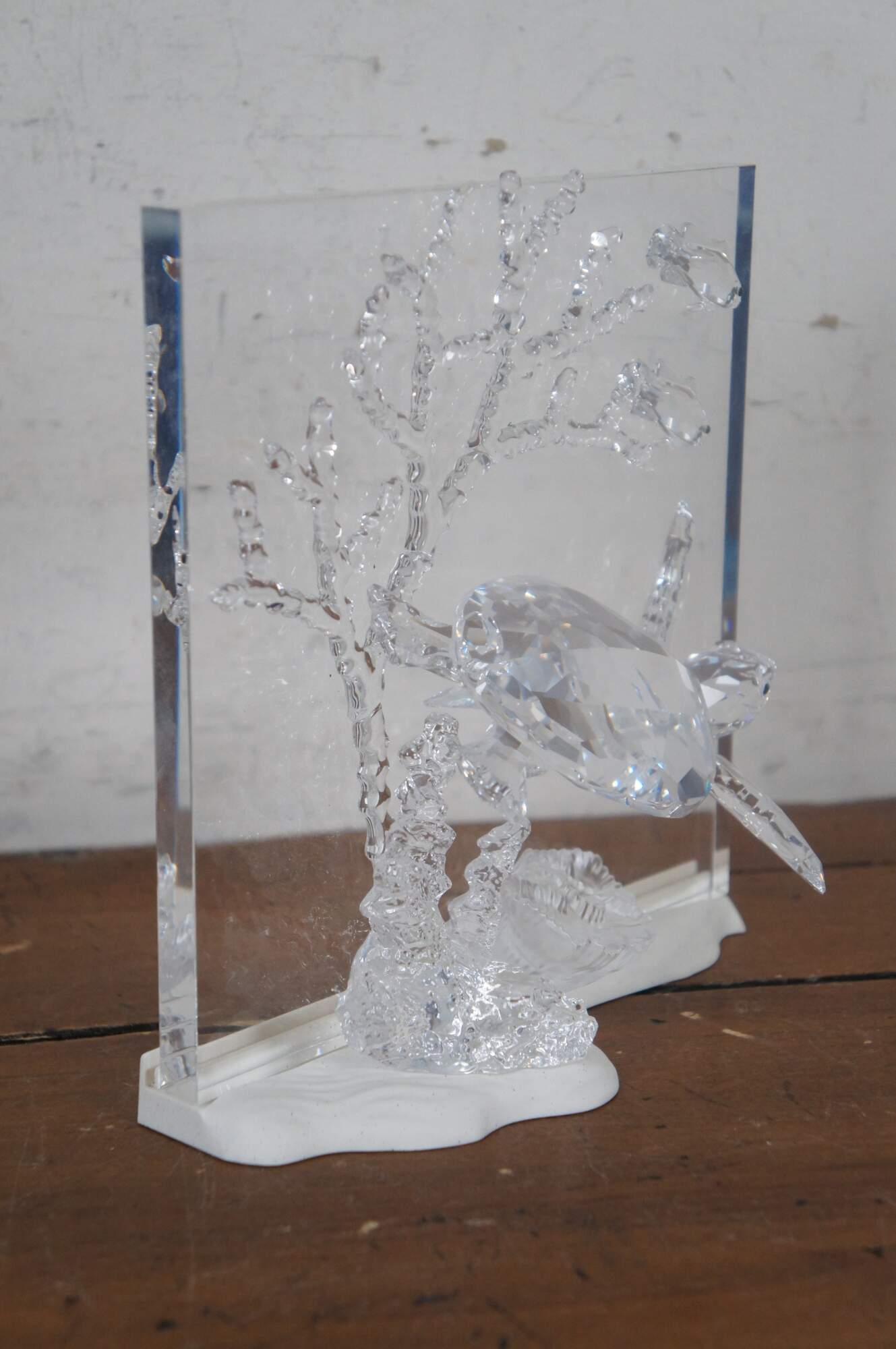 Swarovski Collectors Society 2006, the second piece of the Trilogy Wonders of the Sea, Eternity. Clear crystal figurine depicting a sea turtle, fish and coral, mounted on a crystal block, and including sand shaped base / stand, mirror, and ocean backdrop for multiple display possibilities. Includes Certificate of Authenticity and original packaging. Made in Austria.