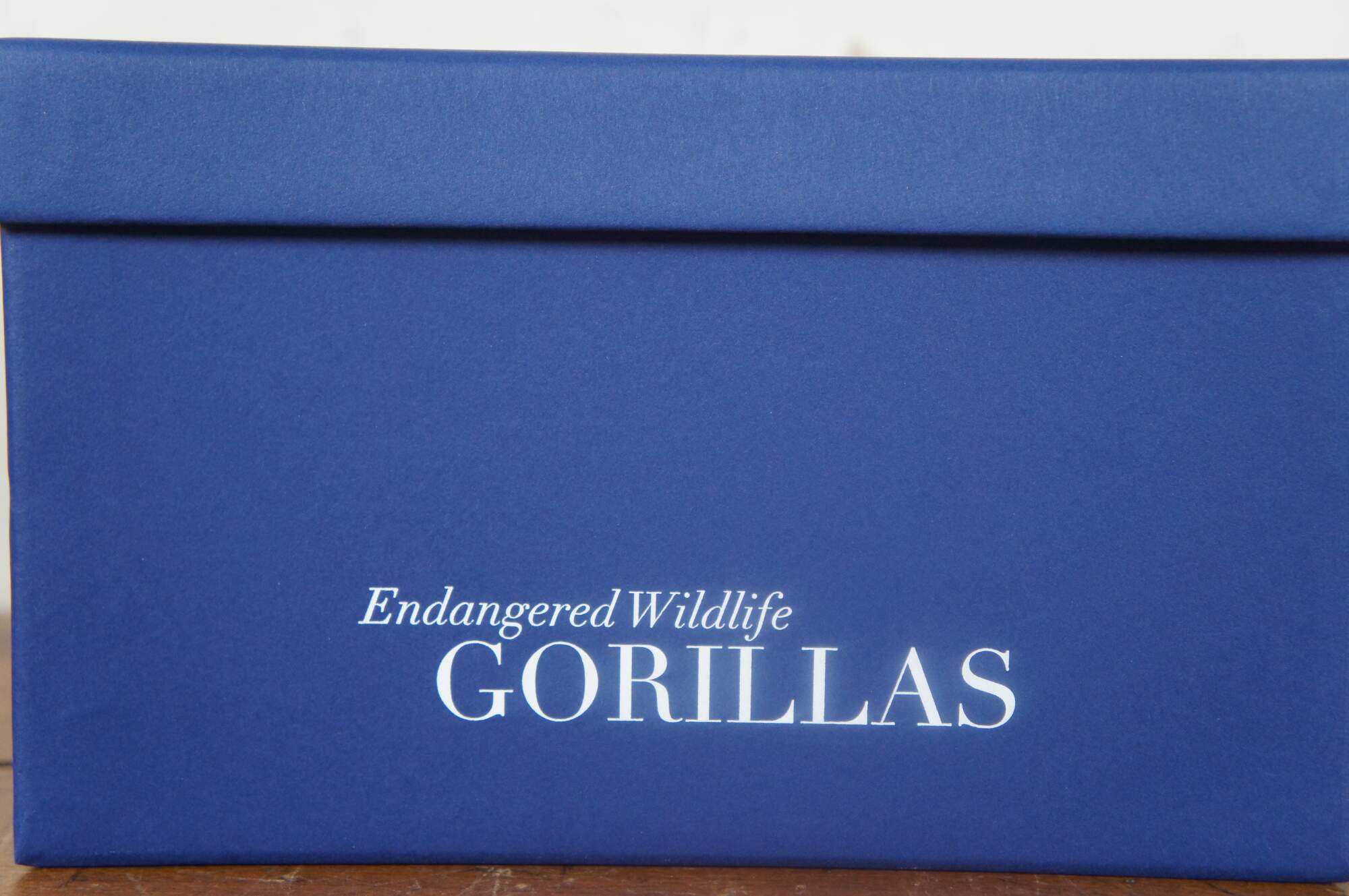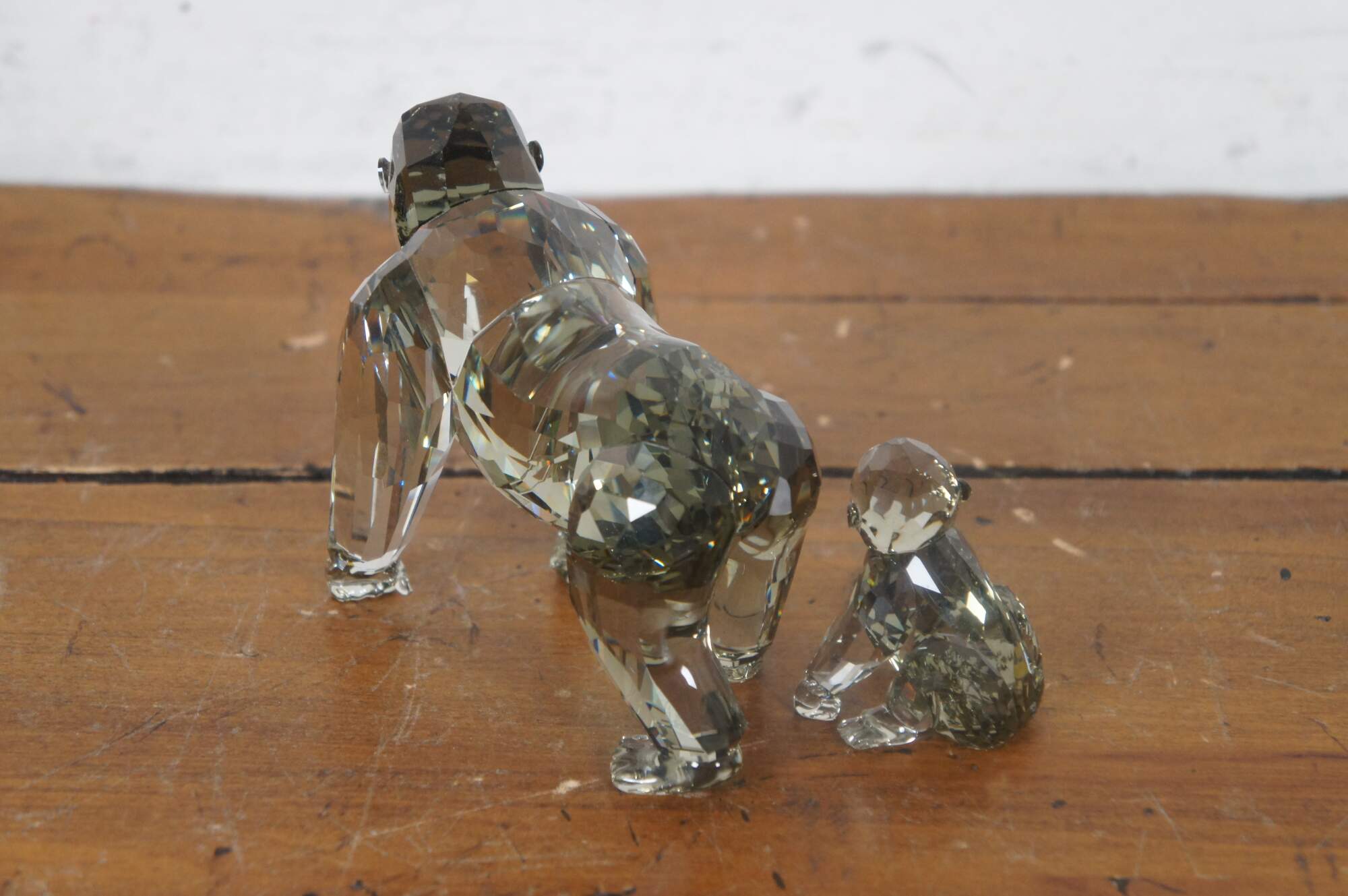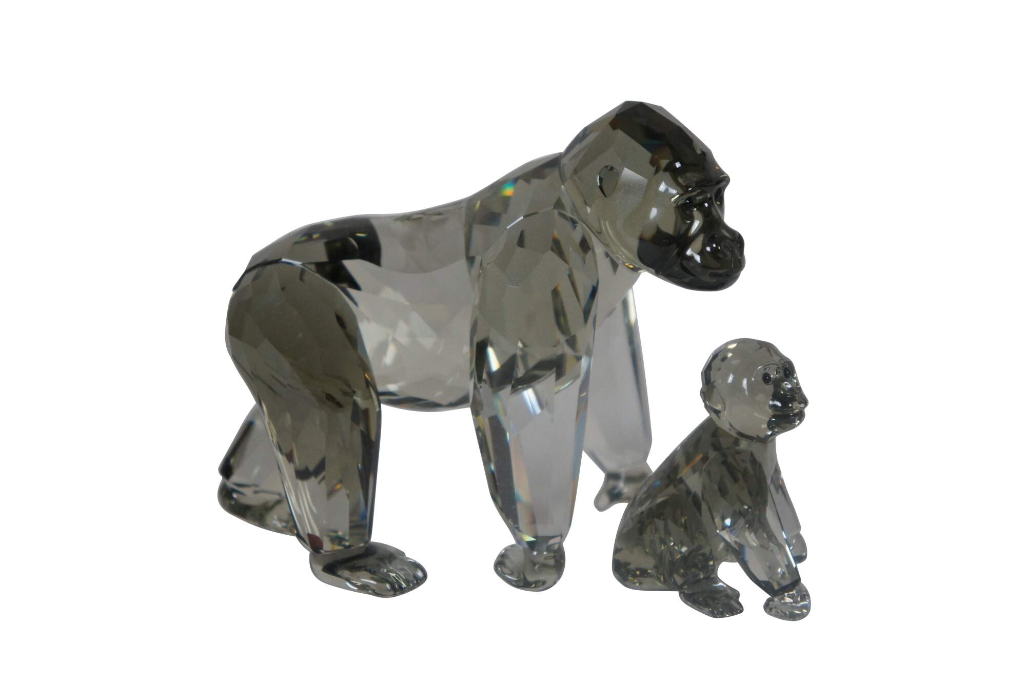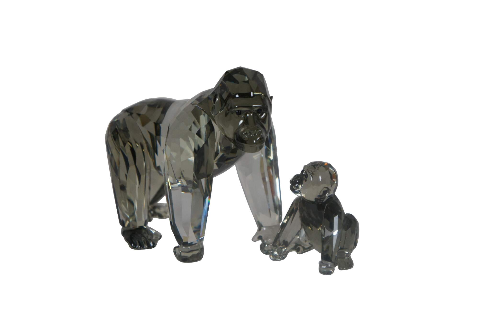 Swarovski Collectors Society 2009 Annual Edition Endangered Wildlife series, Gorillas. Gray crystal figurine pair in the shape of an adult / mother gorilla and a baby. Includes Certificate of Authenticity and original packaging. Made in Austria.