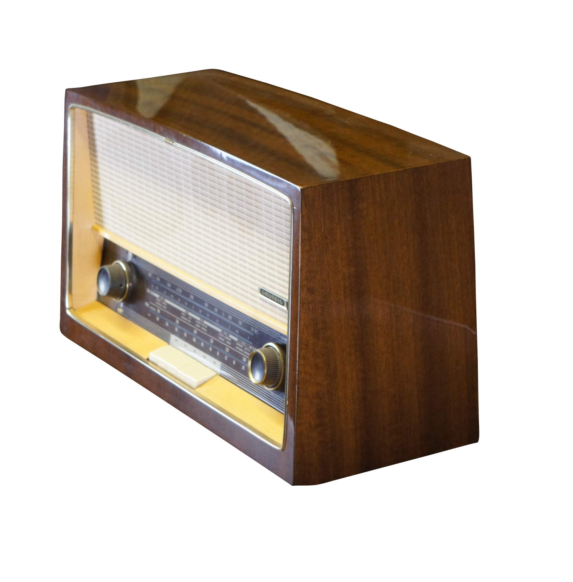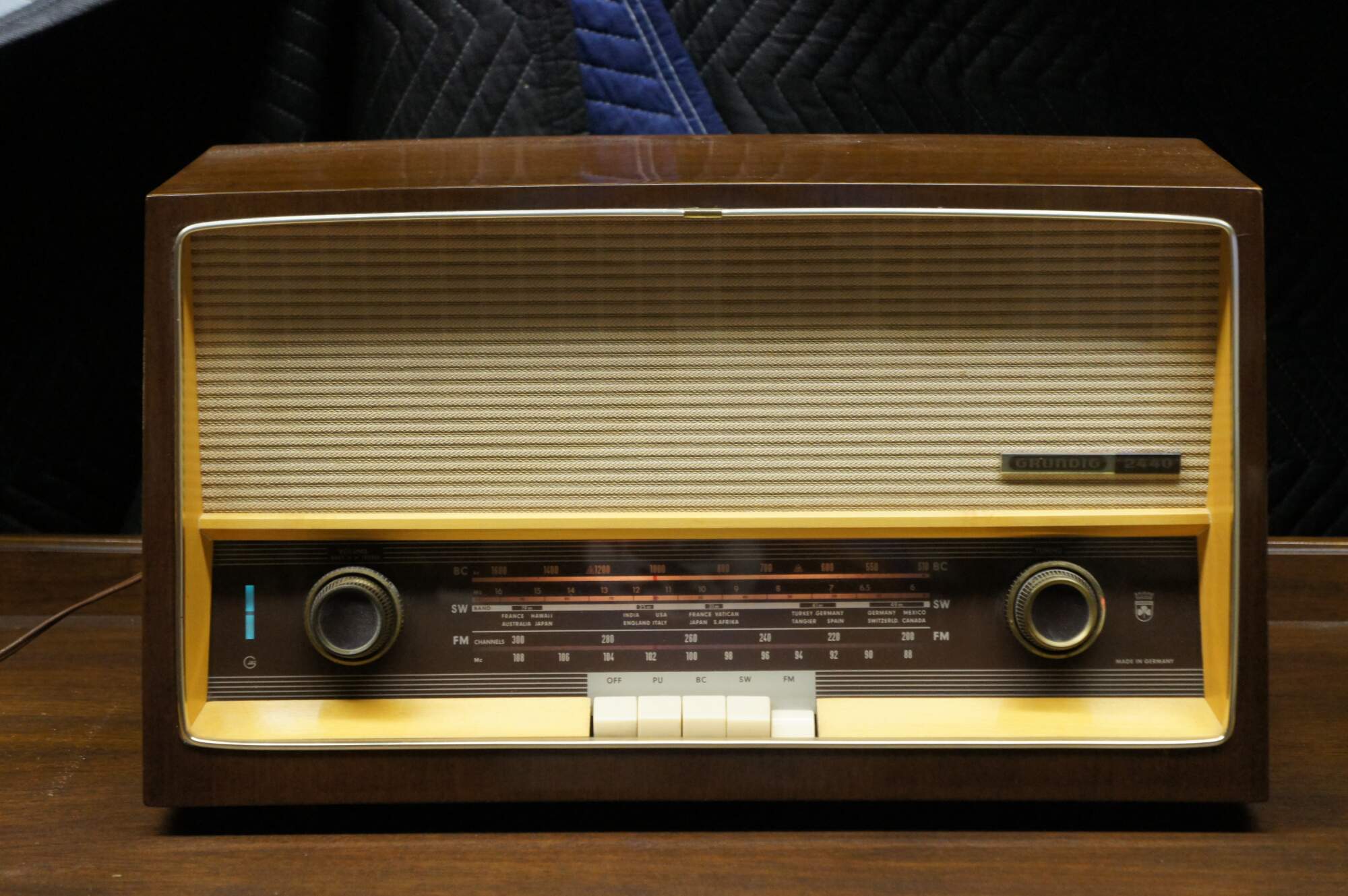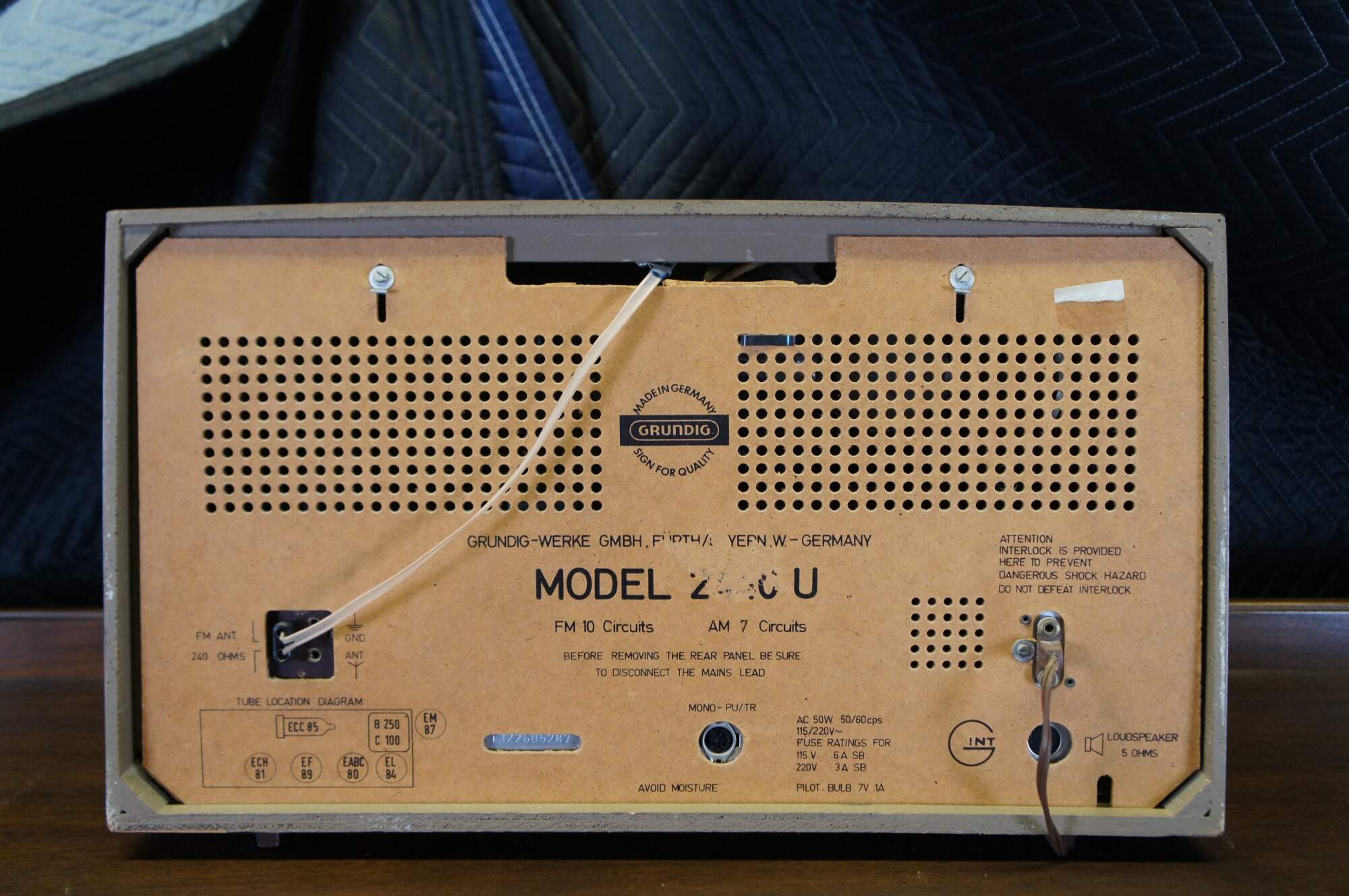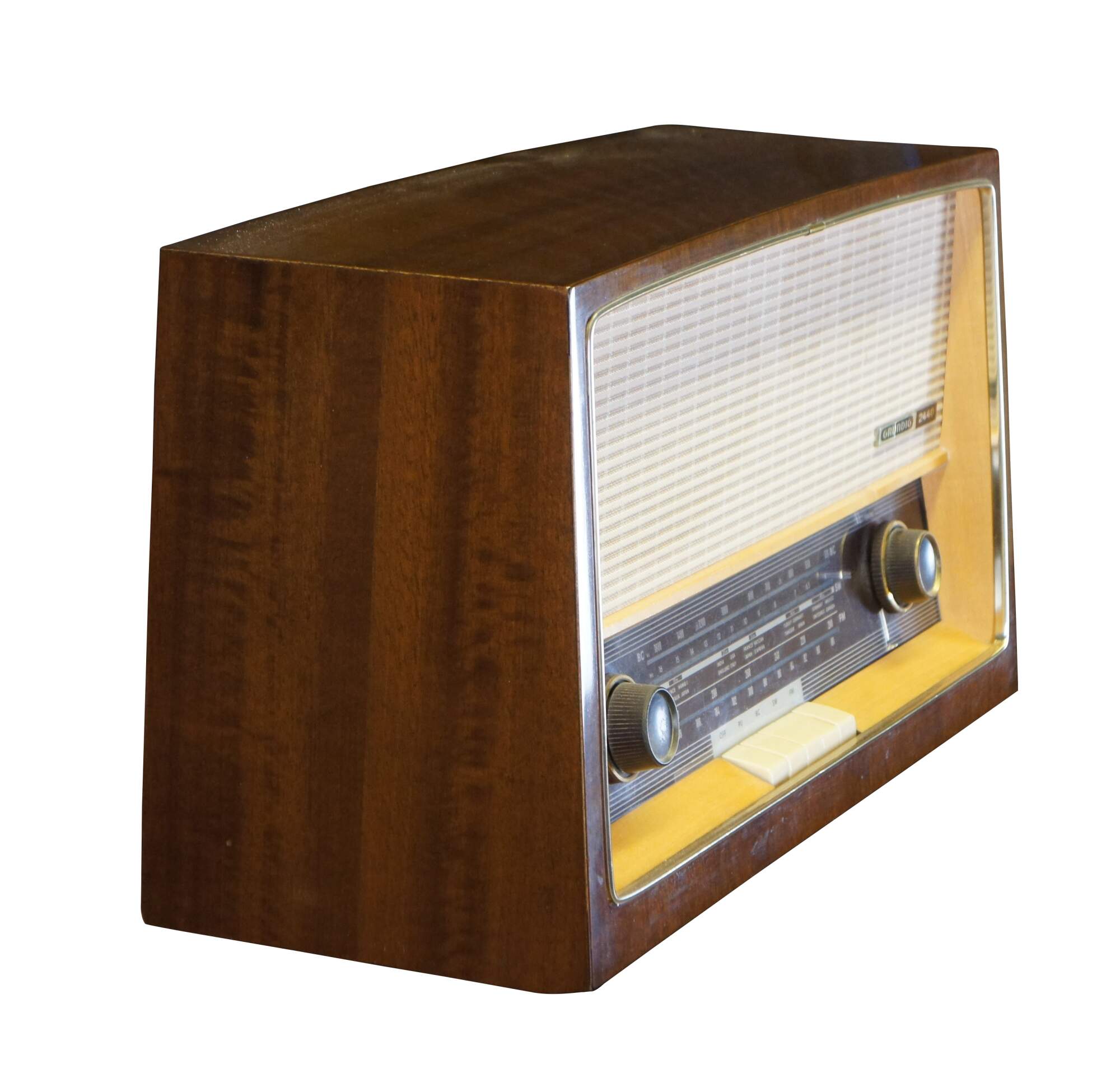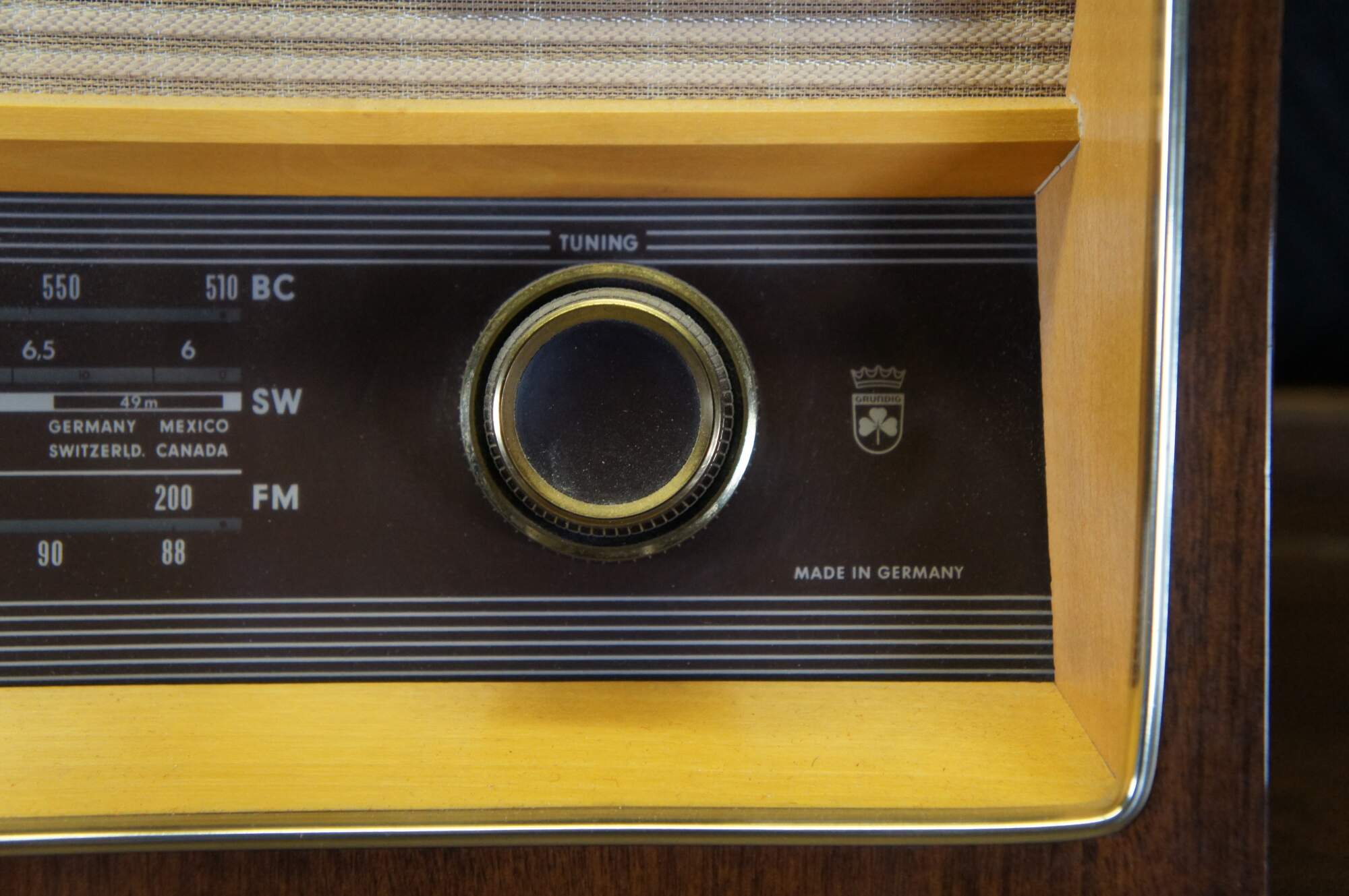 Mid century modern circa 1960s Grundig Werke model 2440 walnut bakelite tube radio, made in Germany. Serial #1322605287
