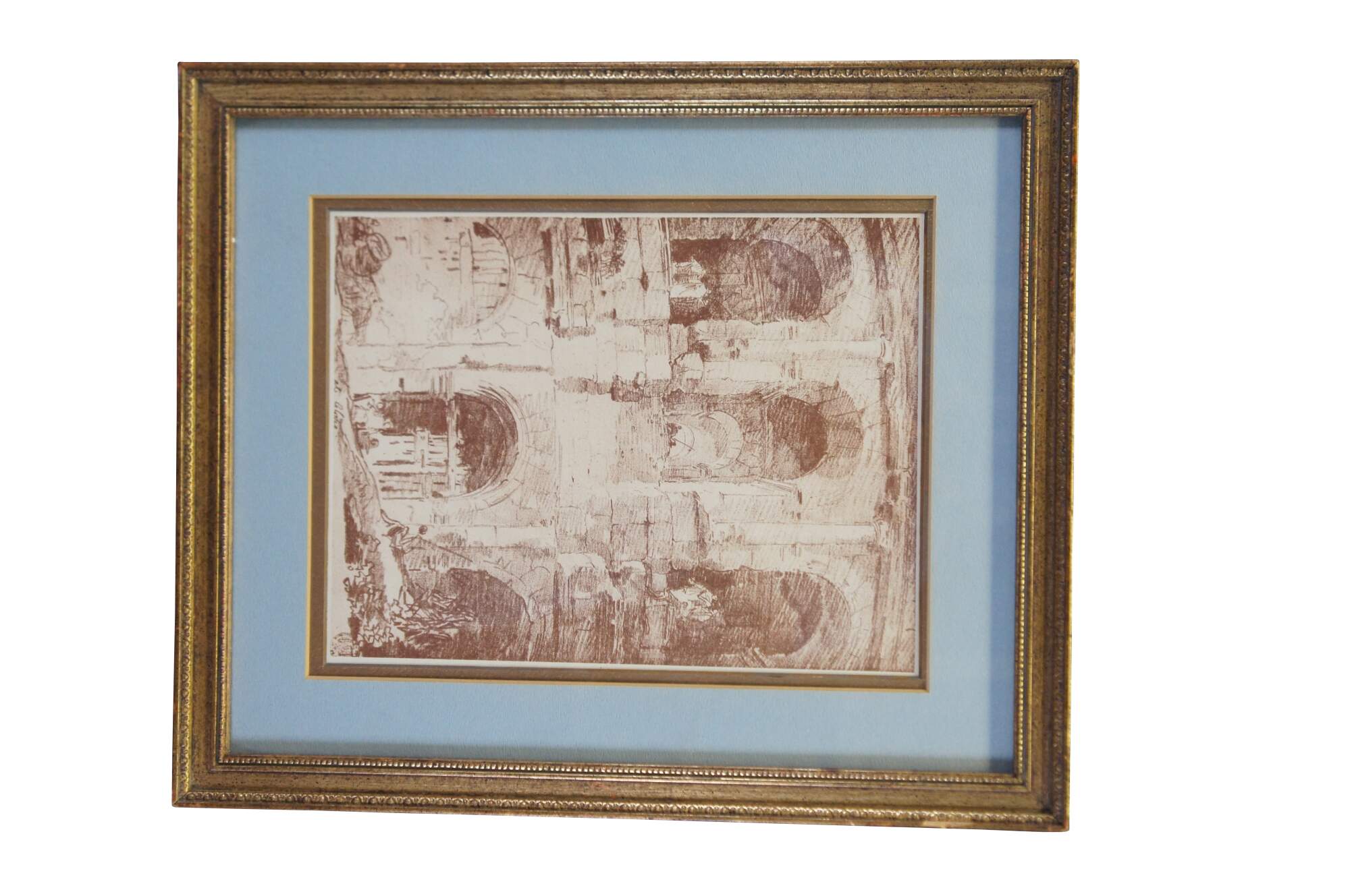 Set of three vintage Jean-Honore Fragonard framed prints featuring architectural views of the Staircase In The Gardens Of The Villa Deste, Tivoli, Italy.