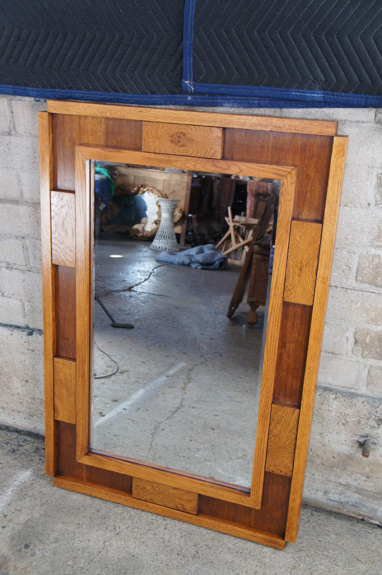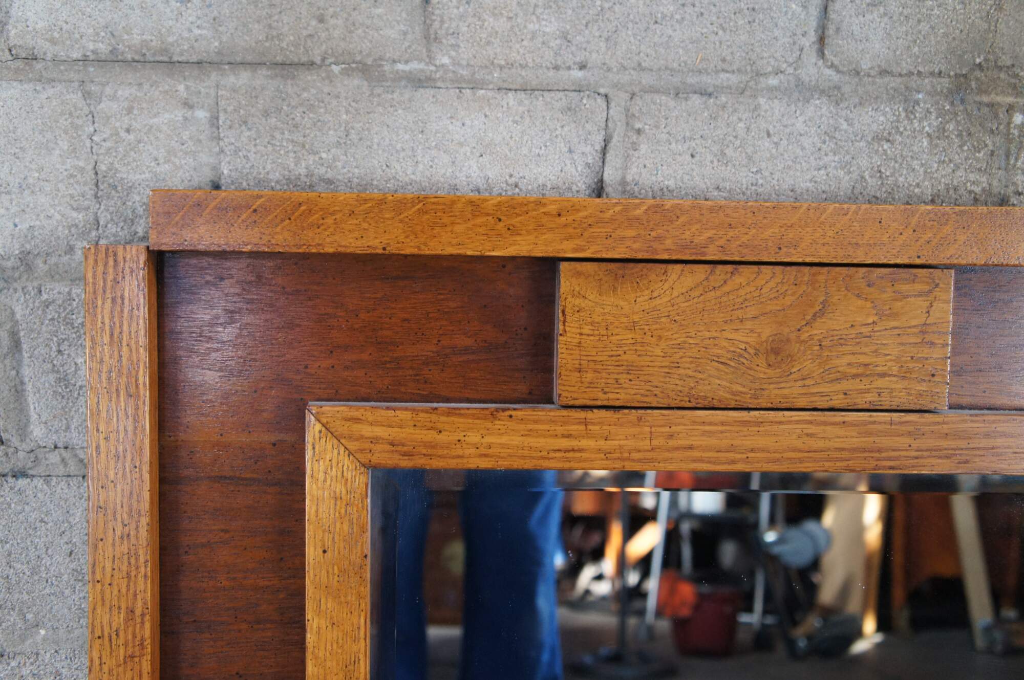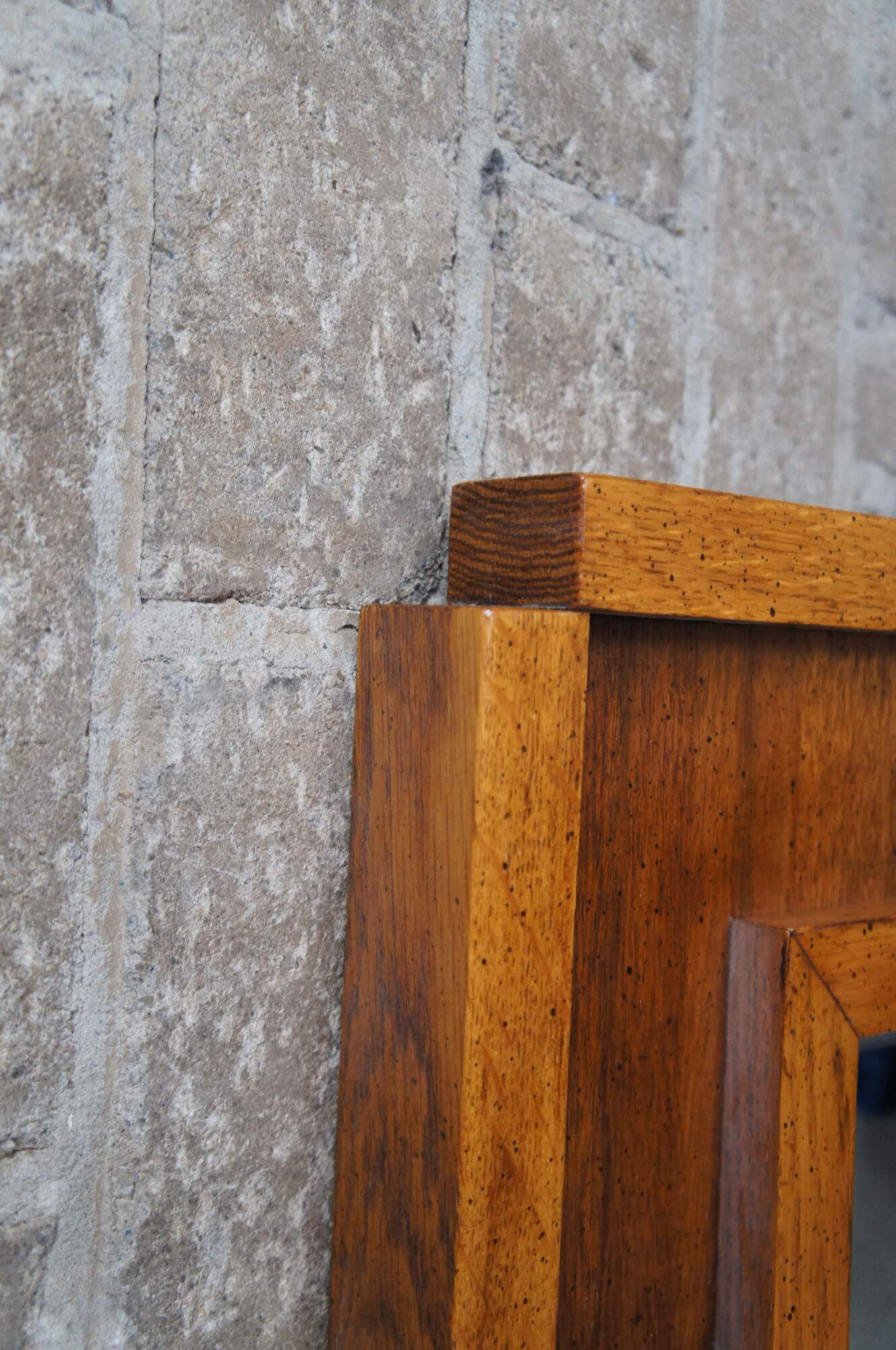 Mid Century Modern Brutalist Wall mirror, circa 1960s. Perfect for use over a mantel, along a wall or in a bathroom as a vanity. Features a thick oak paneled frame.