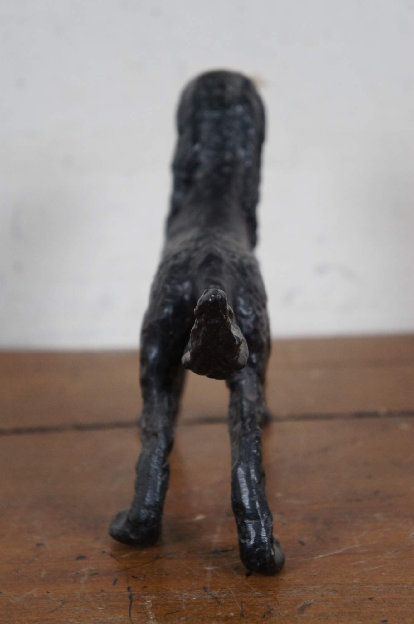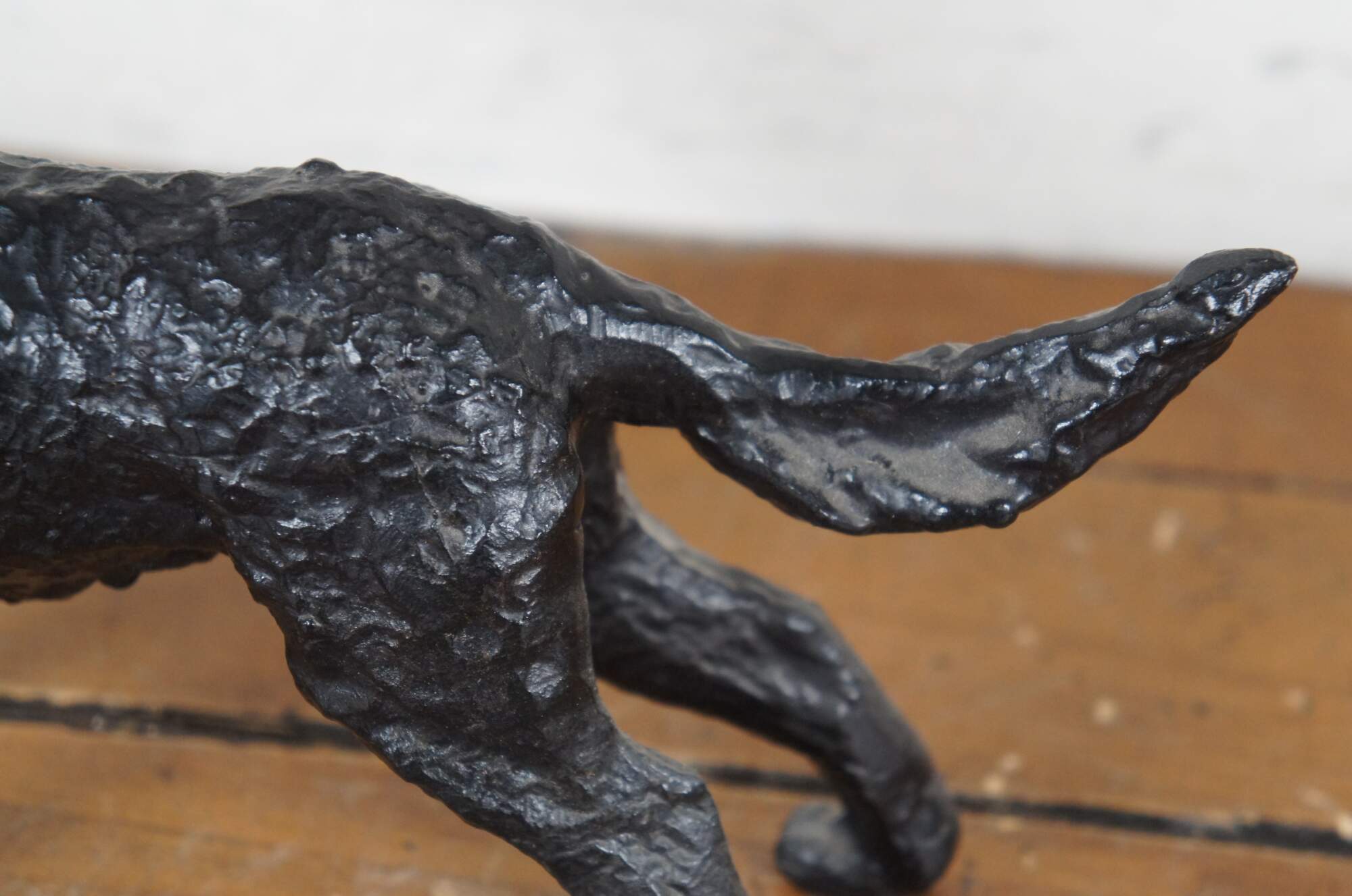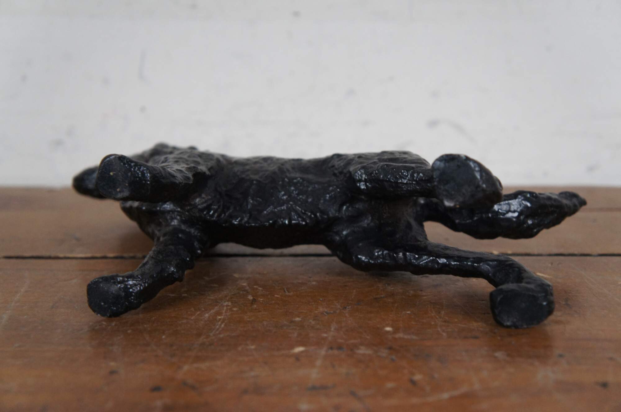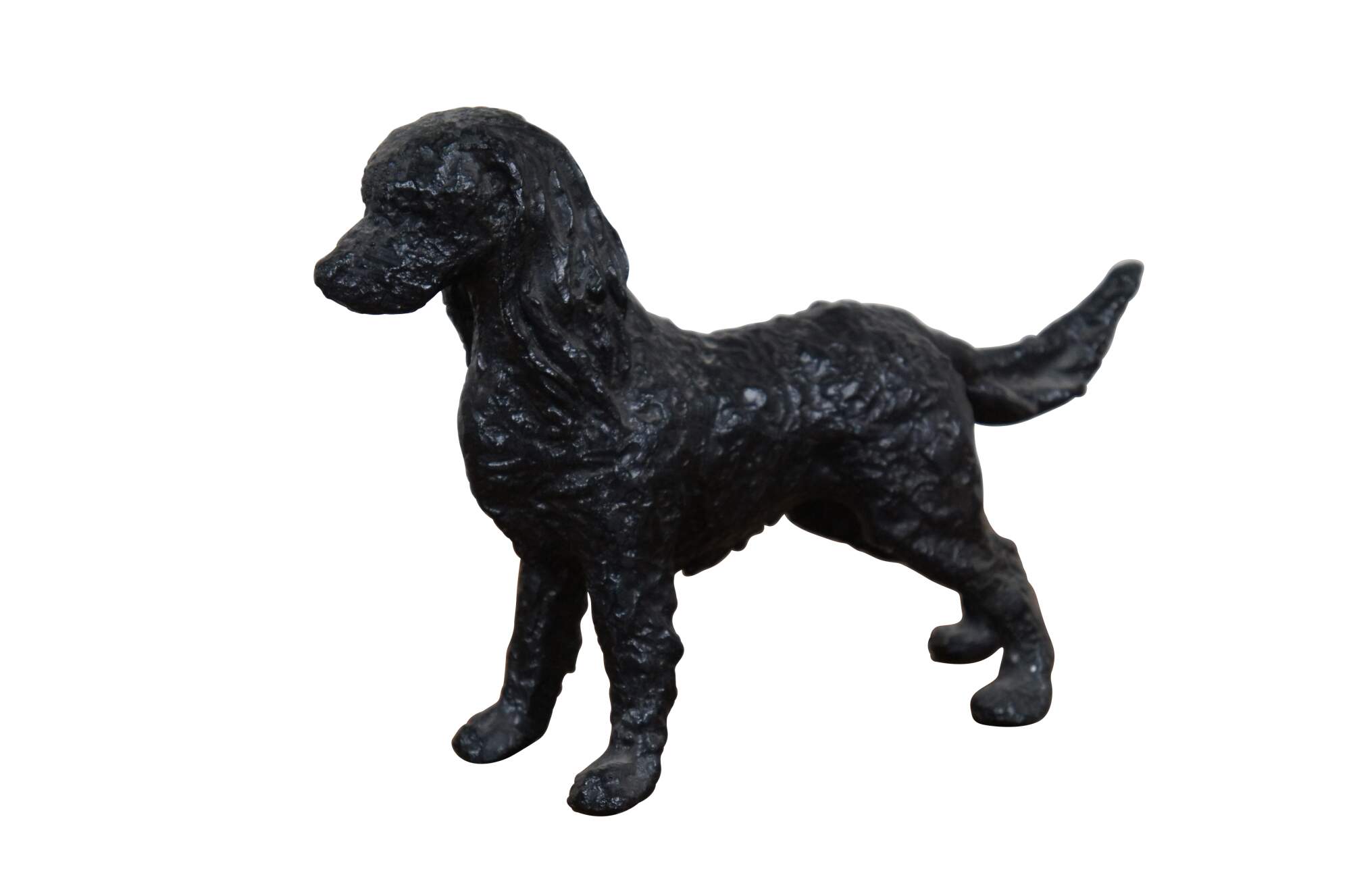 Vintage cast hollow metal dog figurine / sculpture in the shape of a variety of spaniel / setter / retriever. Colored to resemble iron or darkened bronze.