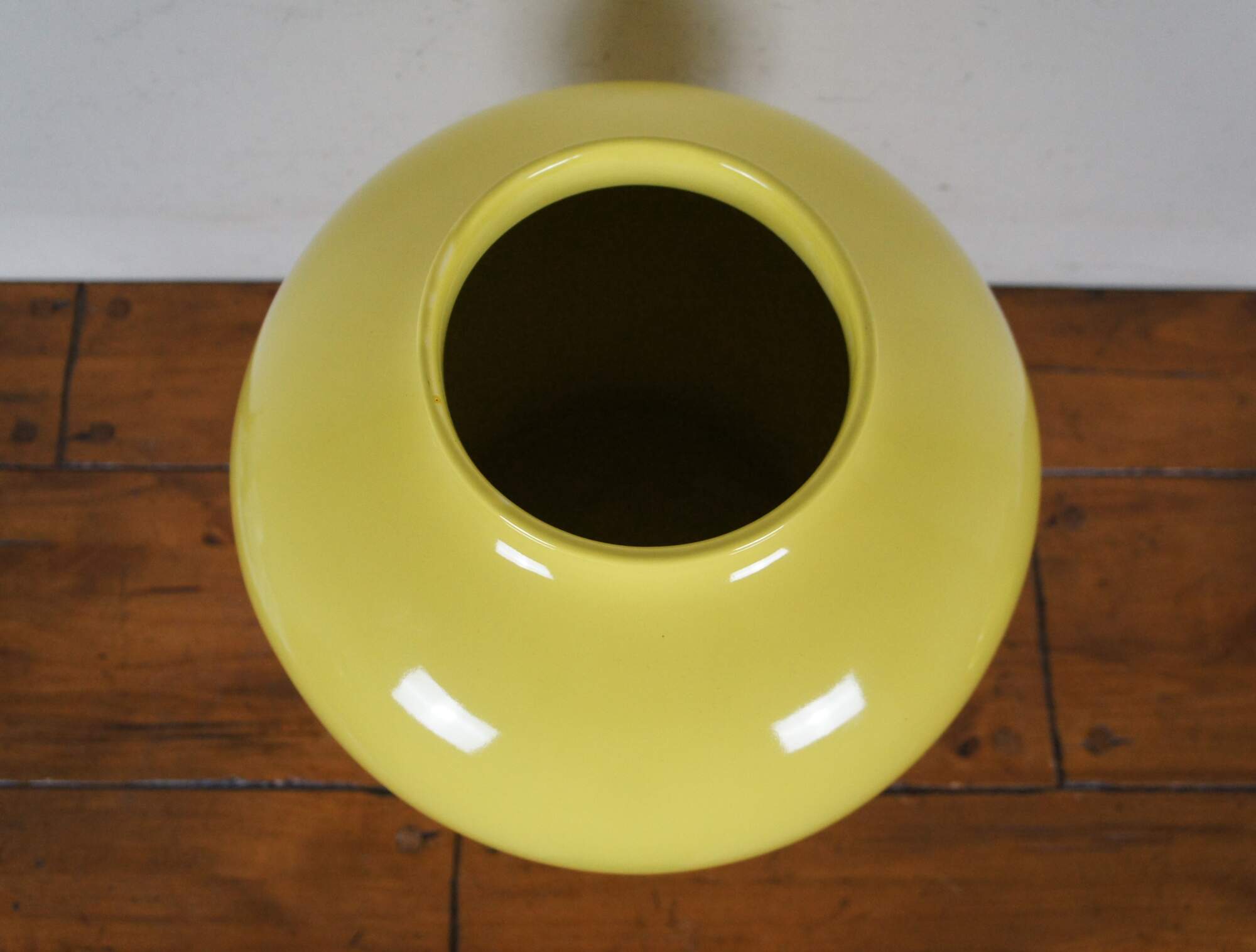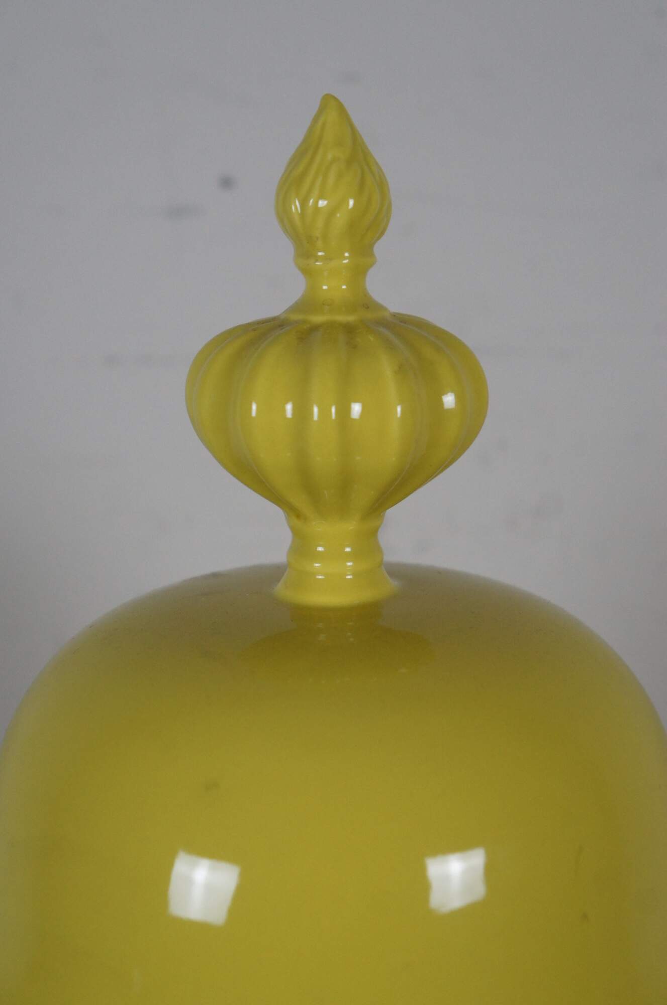 Global Views Colonial Williamsburg lidded Ginger Jar, in Yellow. Made from ceramic inspired by the fluted urn-shaped finials that crown a green japanned bedstead in the Governor’s Palace in Colonial Williamsburg’s Historic Area.