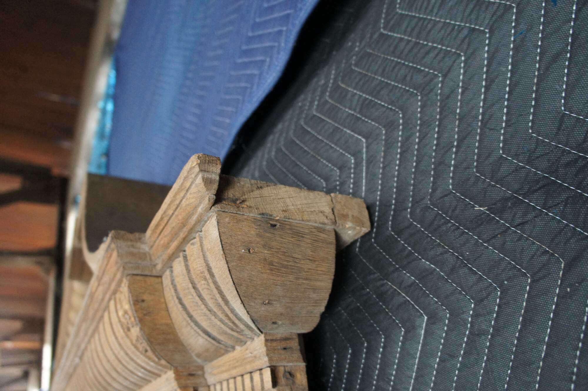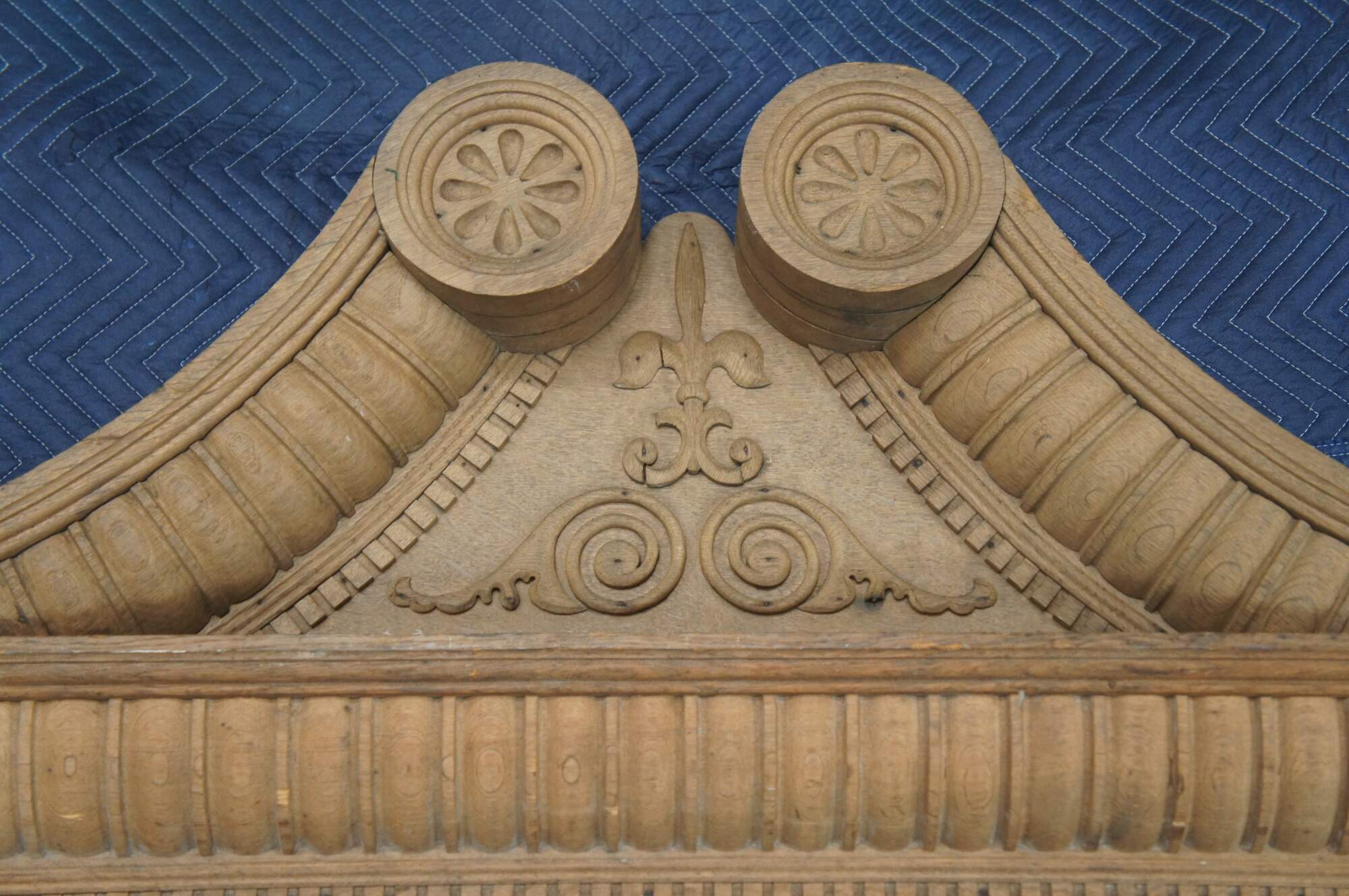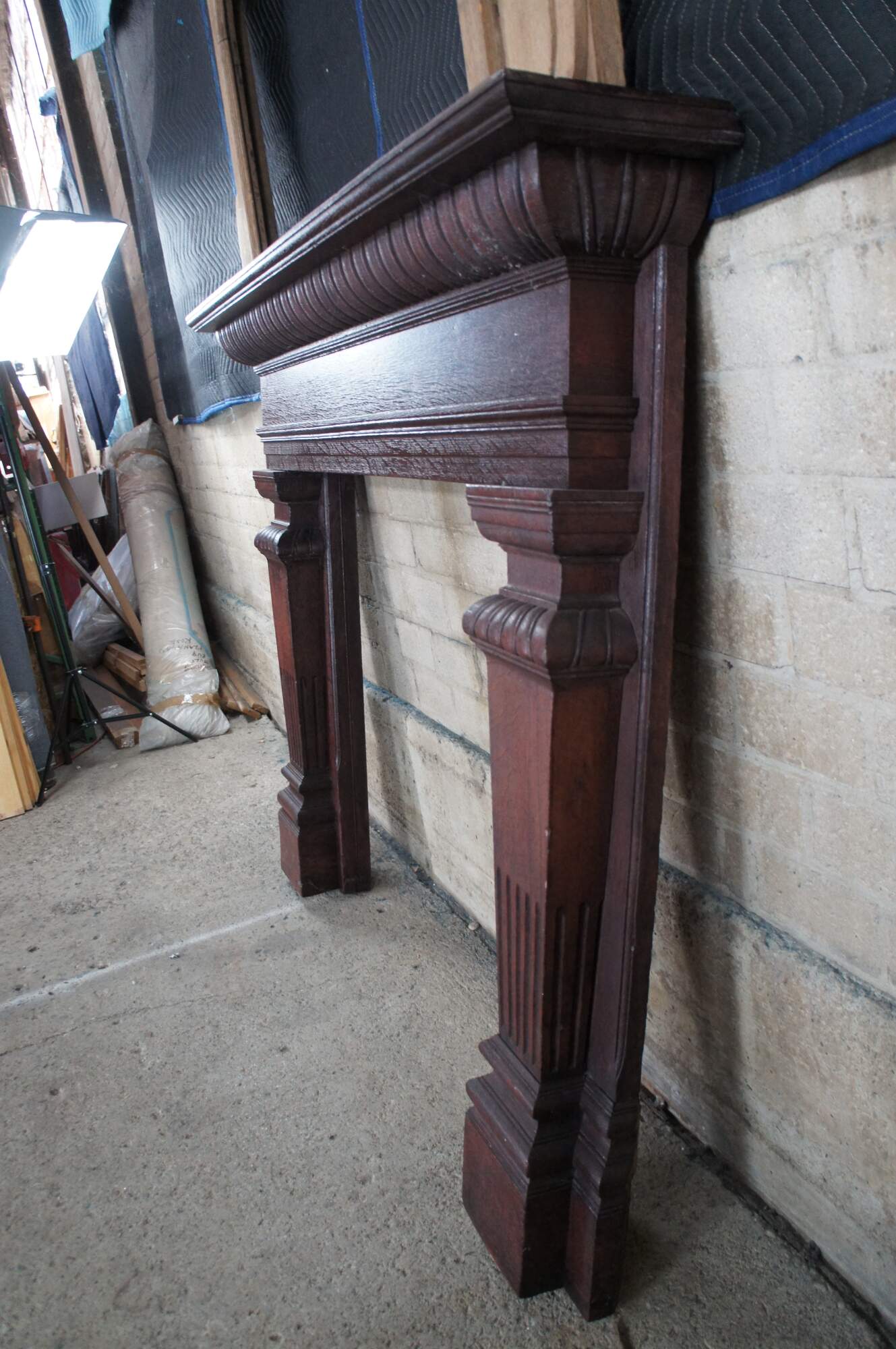 Good Antique Condition; Overmantel and crown are unfinished. Some splits and missing trim. Edgewear