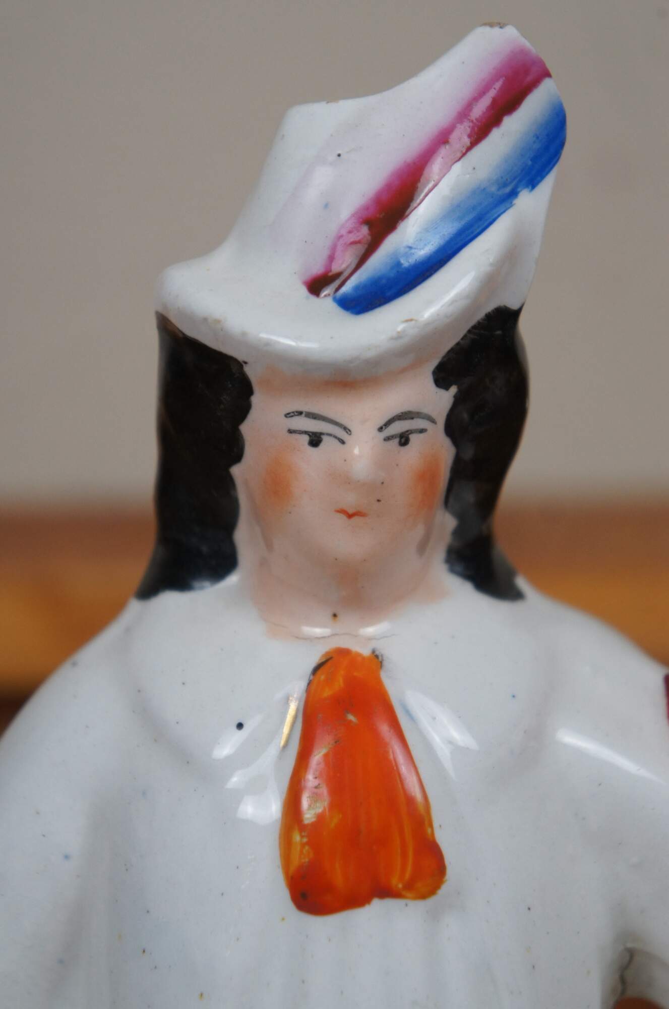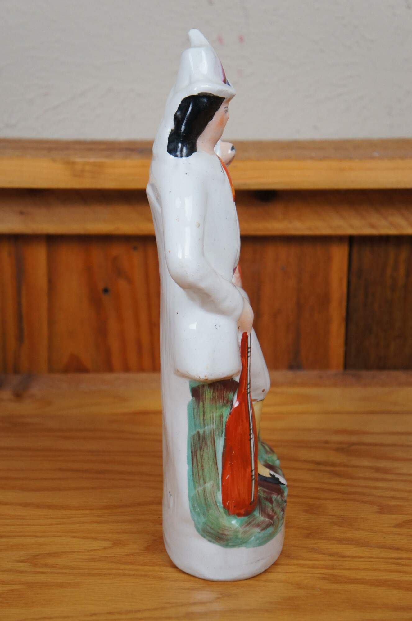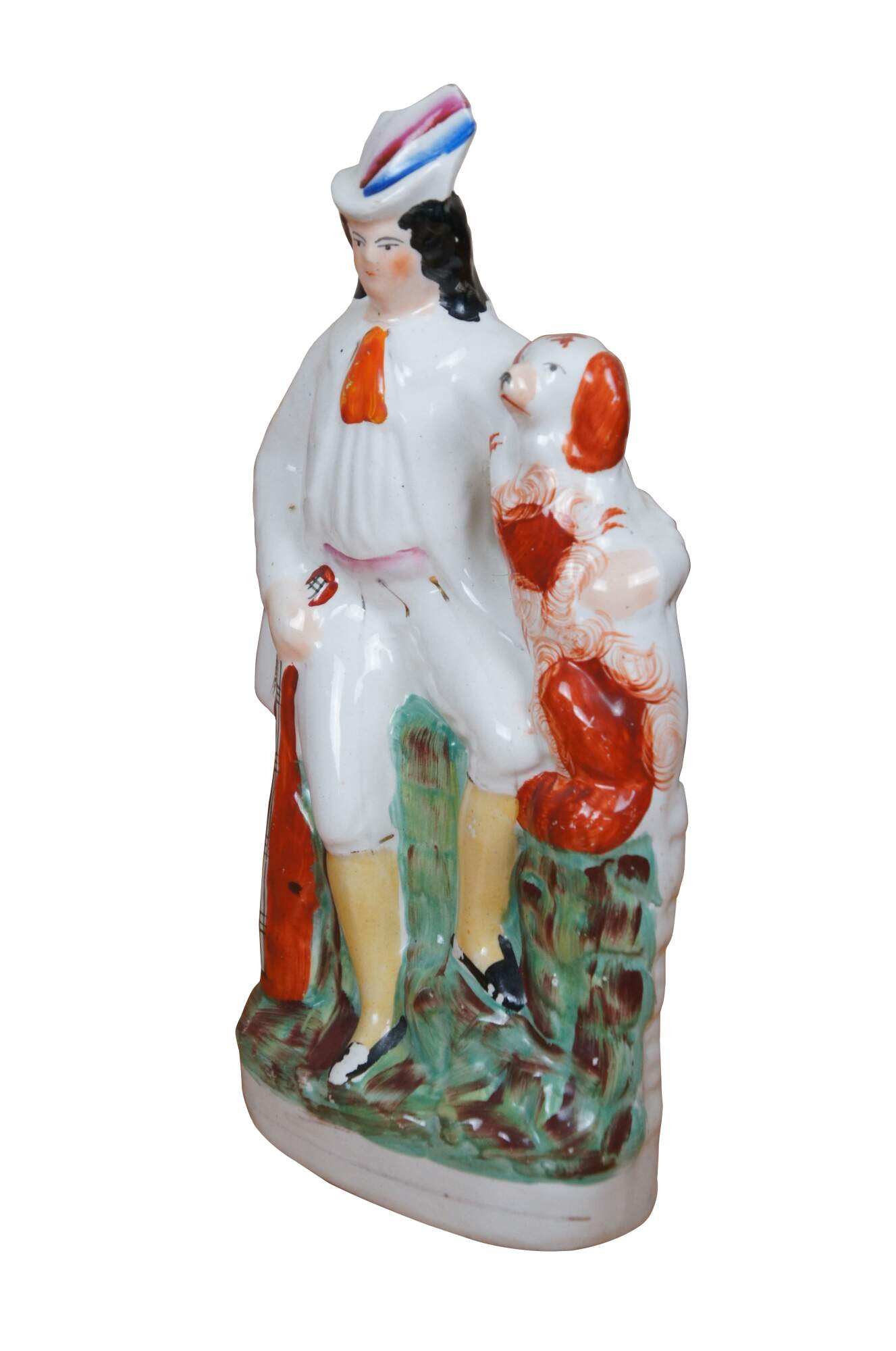 Antique Staffordshire Troubadour Man & King Charles Spaniel Figurine 13"