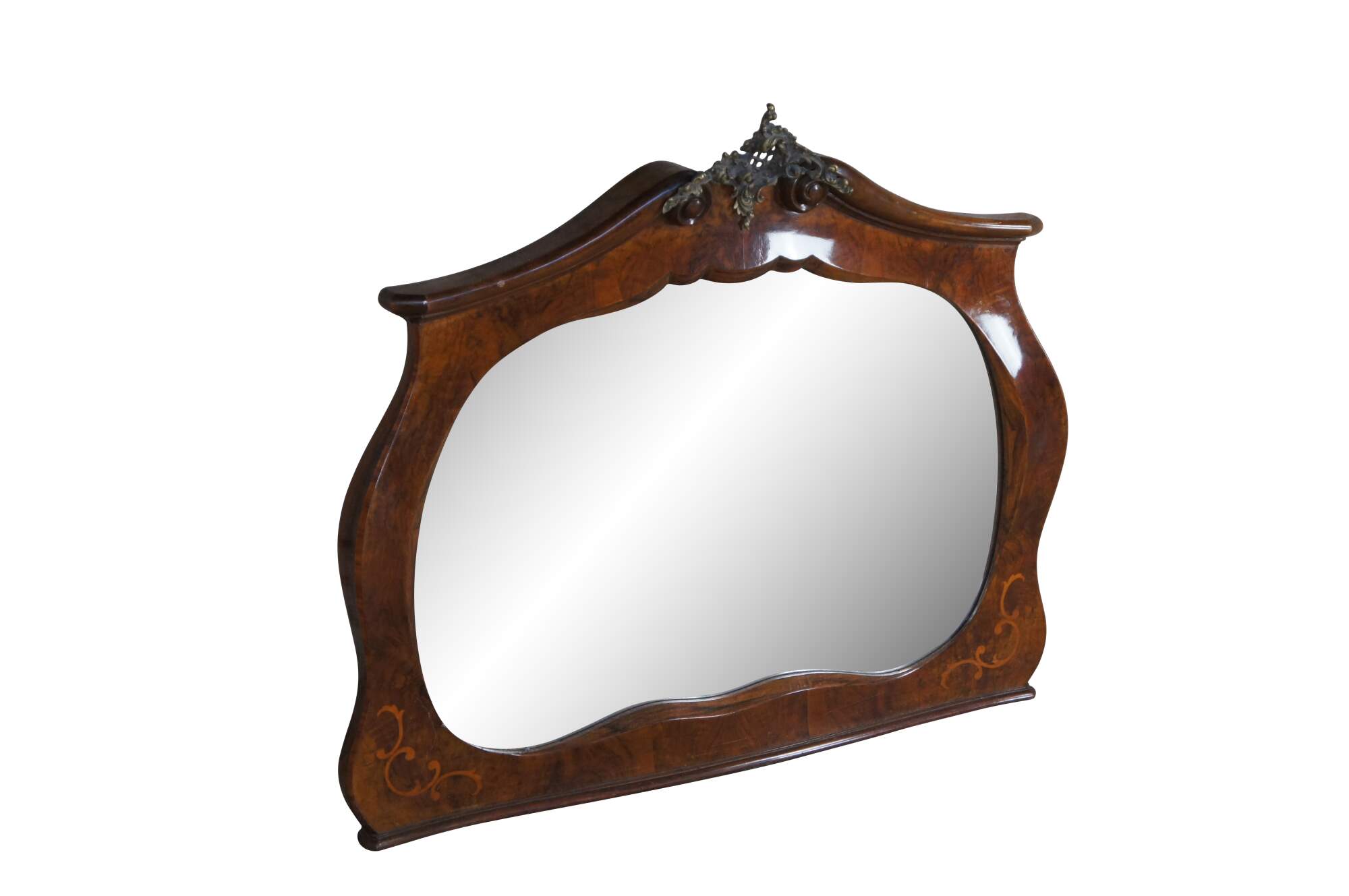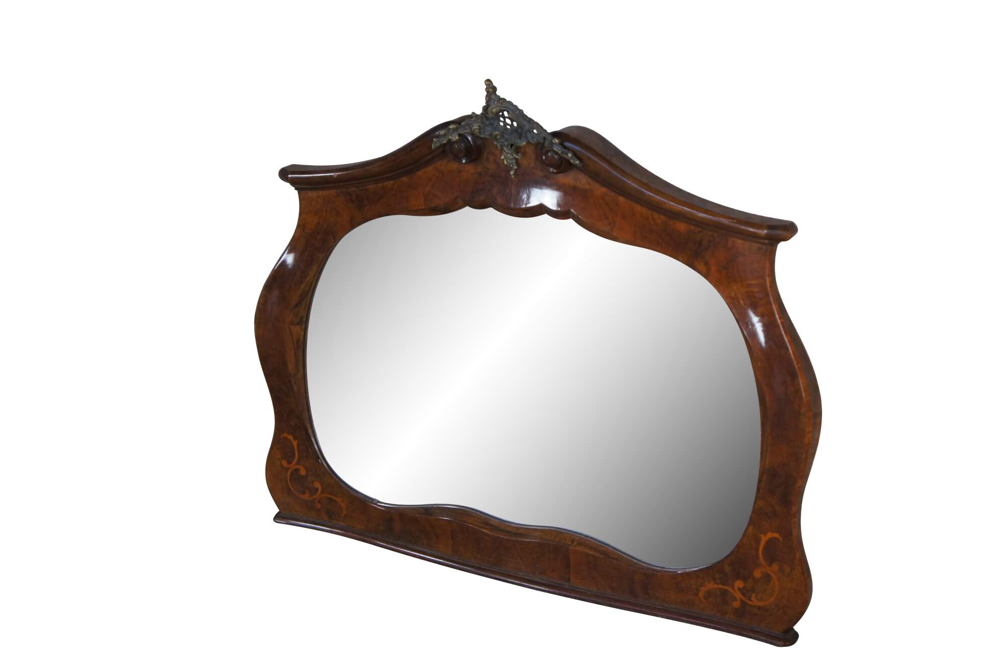 Antique Italian Rococo Circassian Walnut Marquetry Bombe Dresser Mirror