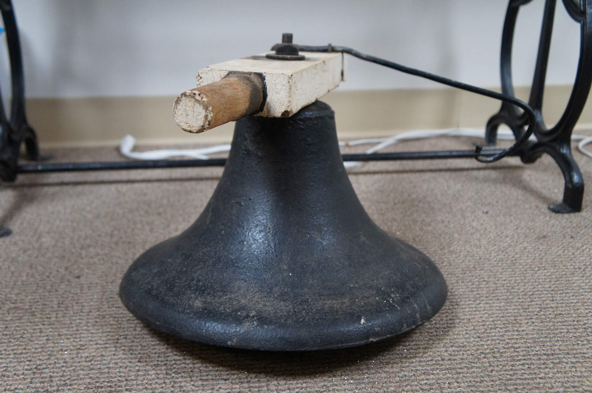 A large and heavy antique cast iron swinging farm / church / school / factory / dinner bell and yoke, attributed to CS Bell Co, marked Crystal Metal No 2.