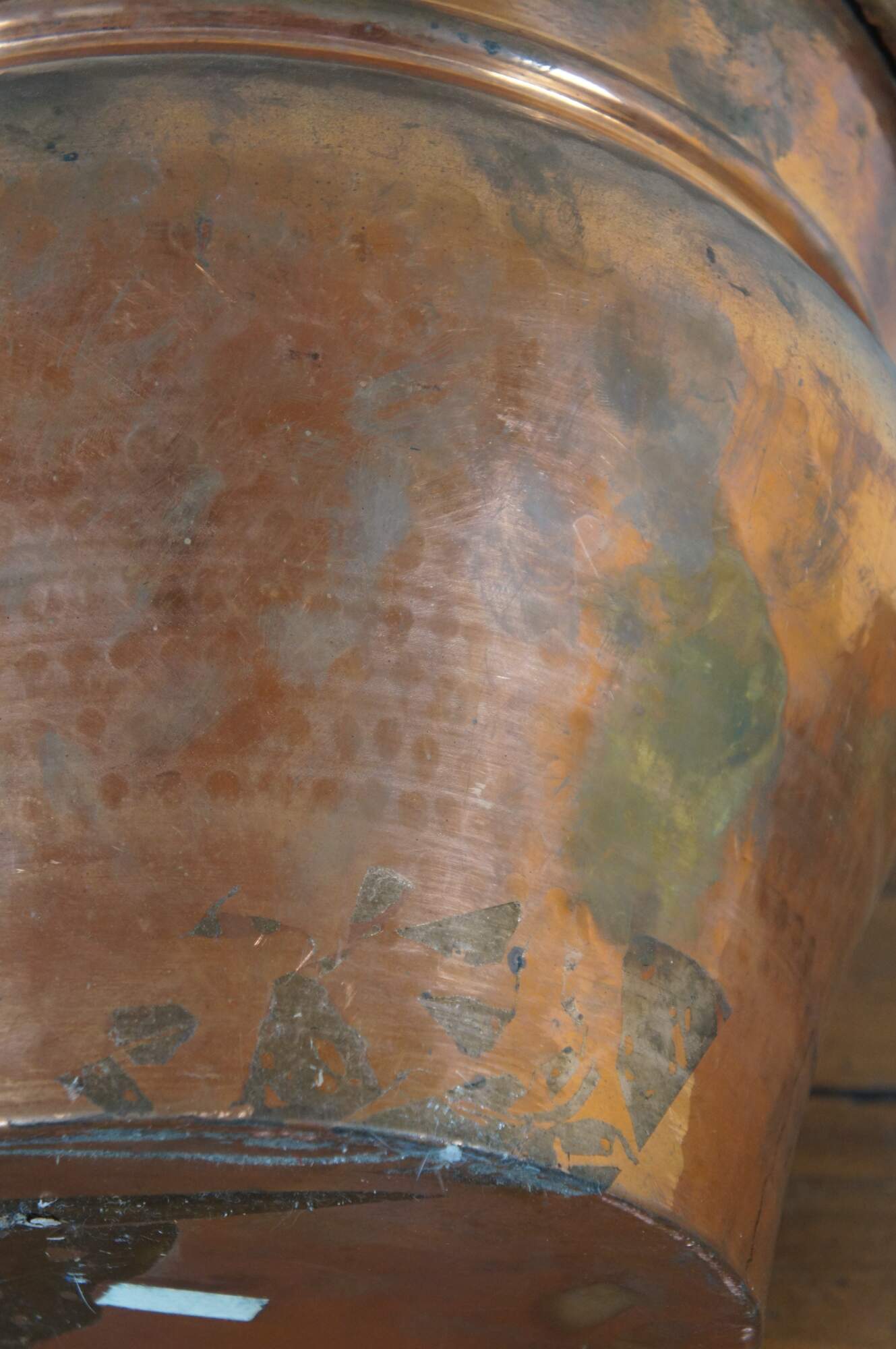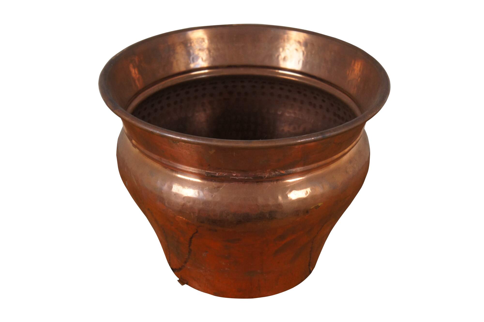 Vintage 20th century hammered copper planter / jardiniere / cachepot / spittoon - round bulb shape with tapered base and flared mouth.