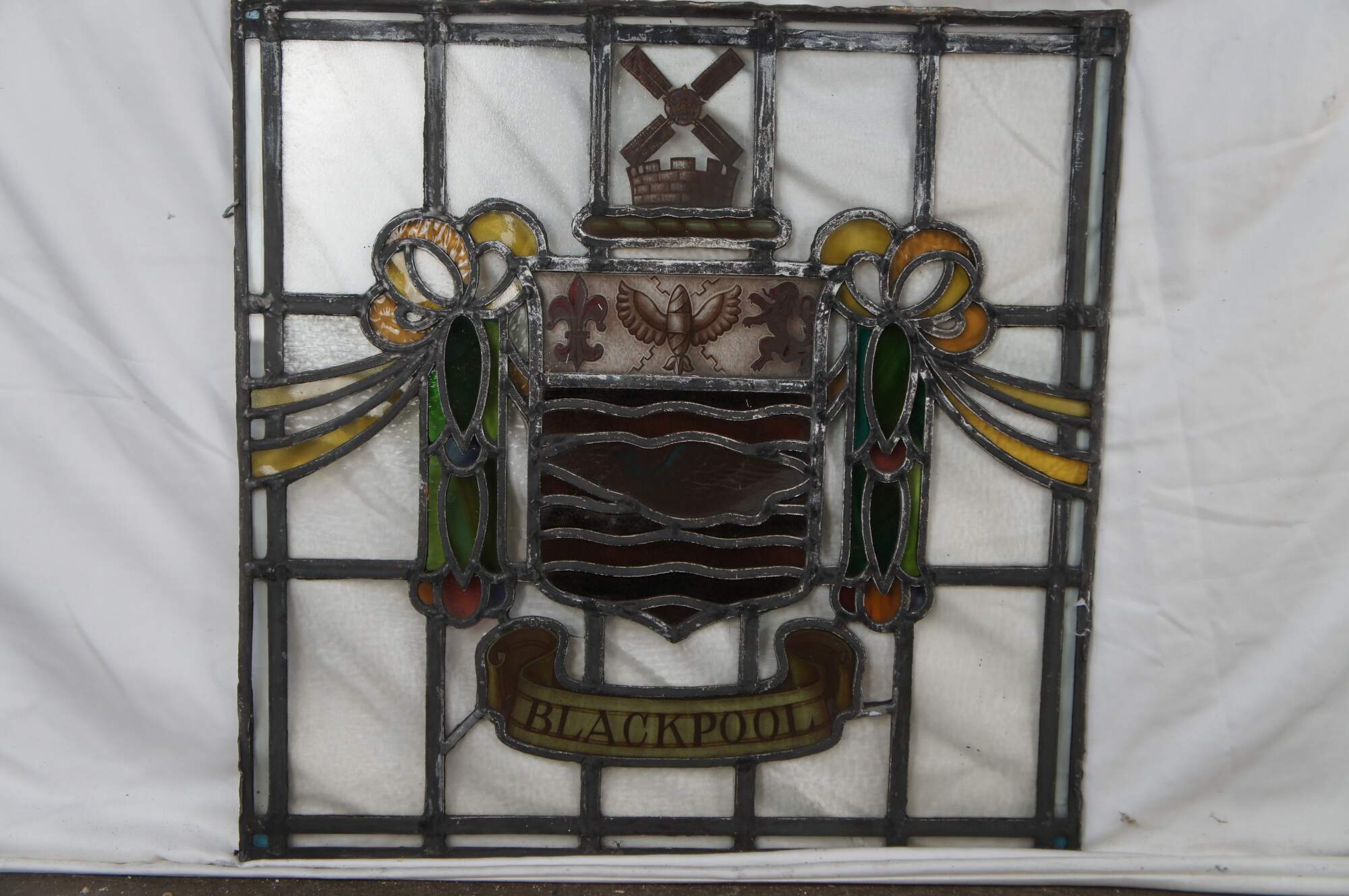 The crest has tower to suggest grandeur and solidity, above which is a pair of windmill sails, symbol of the Fylde area of Lancashire.Arms (crest) of Blackpool
