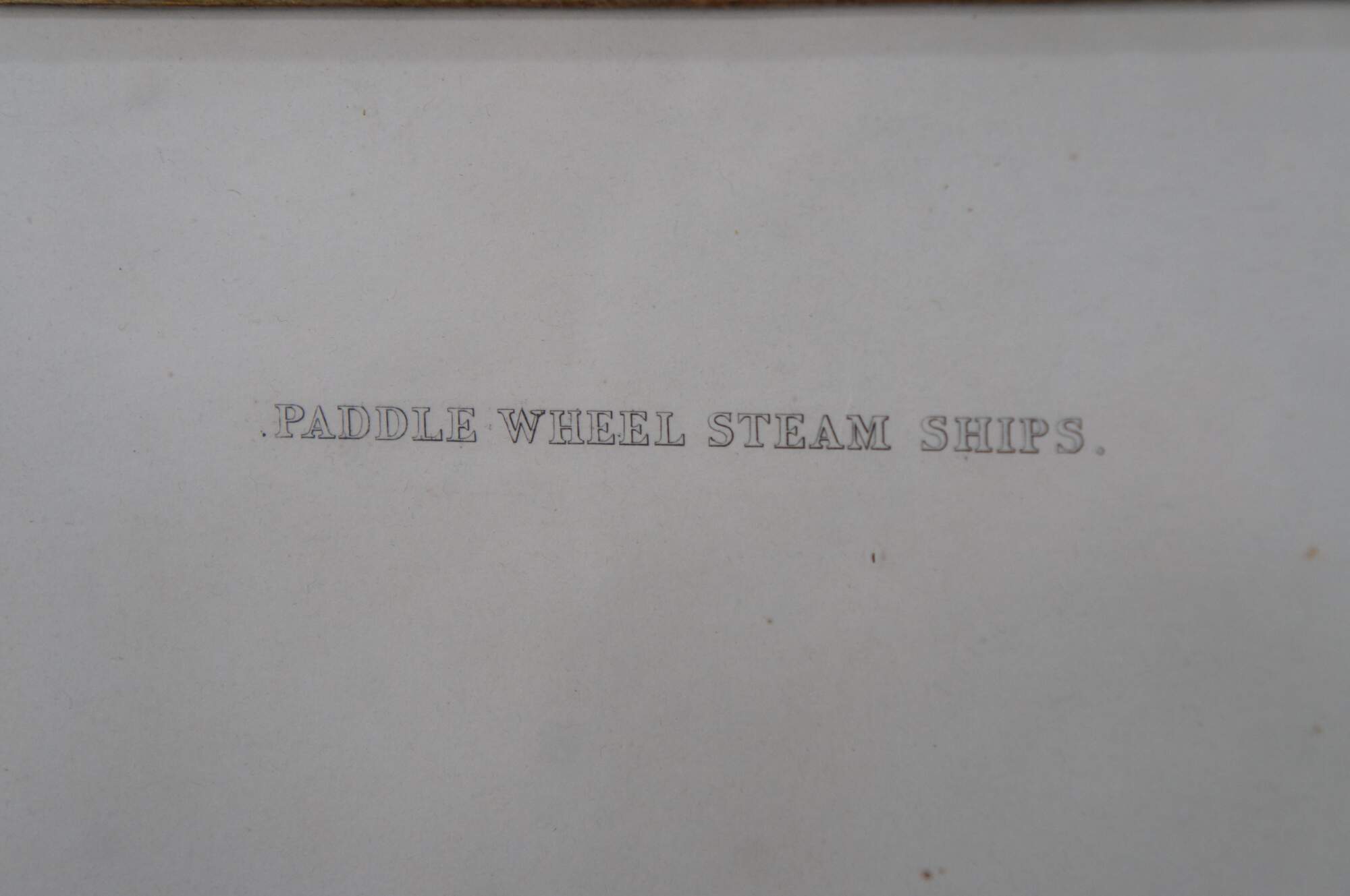 John Scott Russell, Paddle Wheel Steam Ships – Irish Trader. A nautical maritime engraving on paper showcasing the blue print of a Freight Trader. Exquistely framed with alternating burlwood. The Engraving is from 1864, plate 67 from John Scott Russell’s monumental work The Modern System of Naval Architecture, 3 volumes, London.