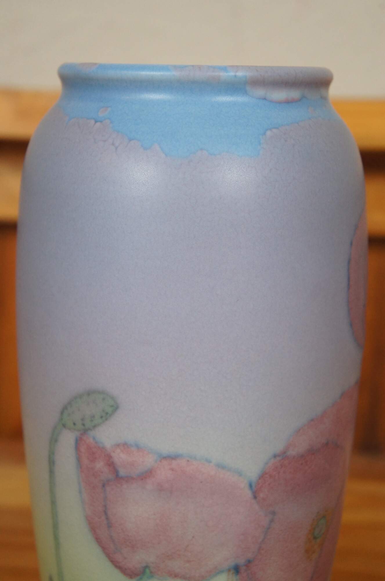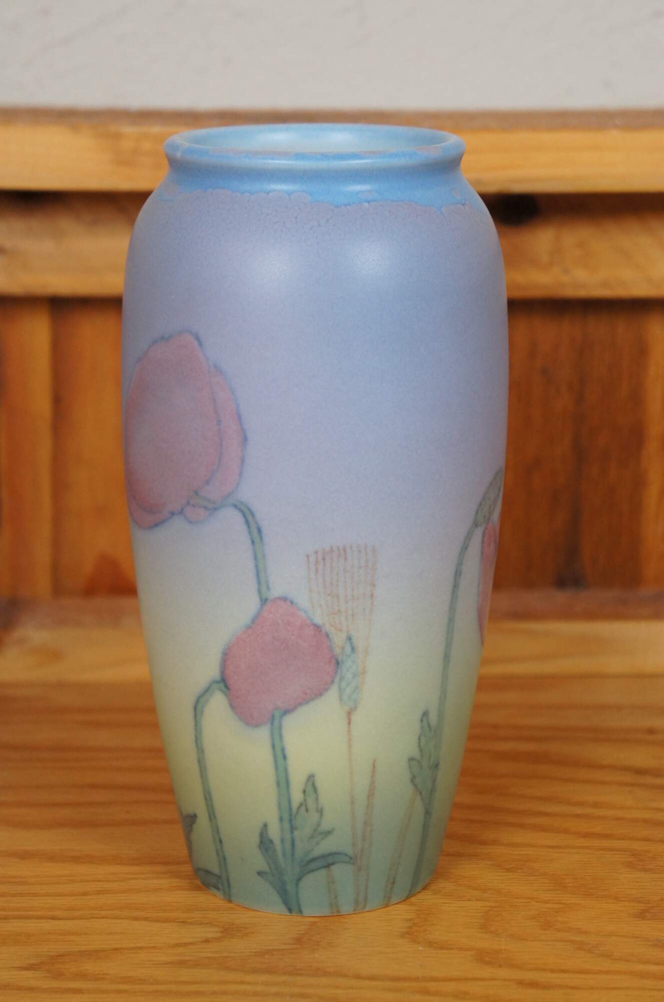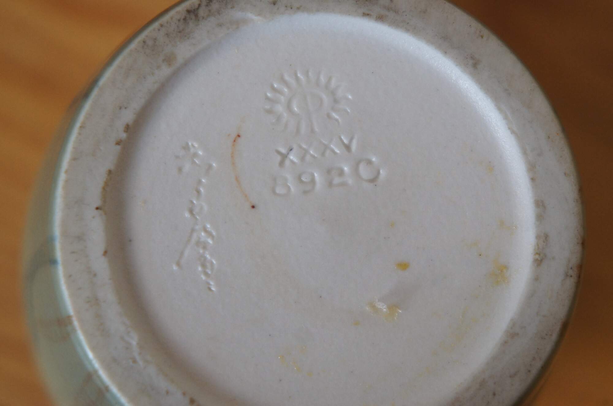 Antique Rookwood Kataro Shirayamadani mantel urn / bud / flower vase featuring art deco floral design in Vellum. 892 shape code, Size C, signed in Japanese by artist. Marked XXXV