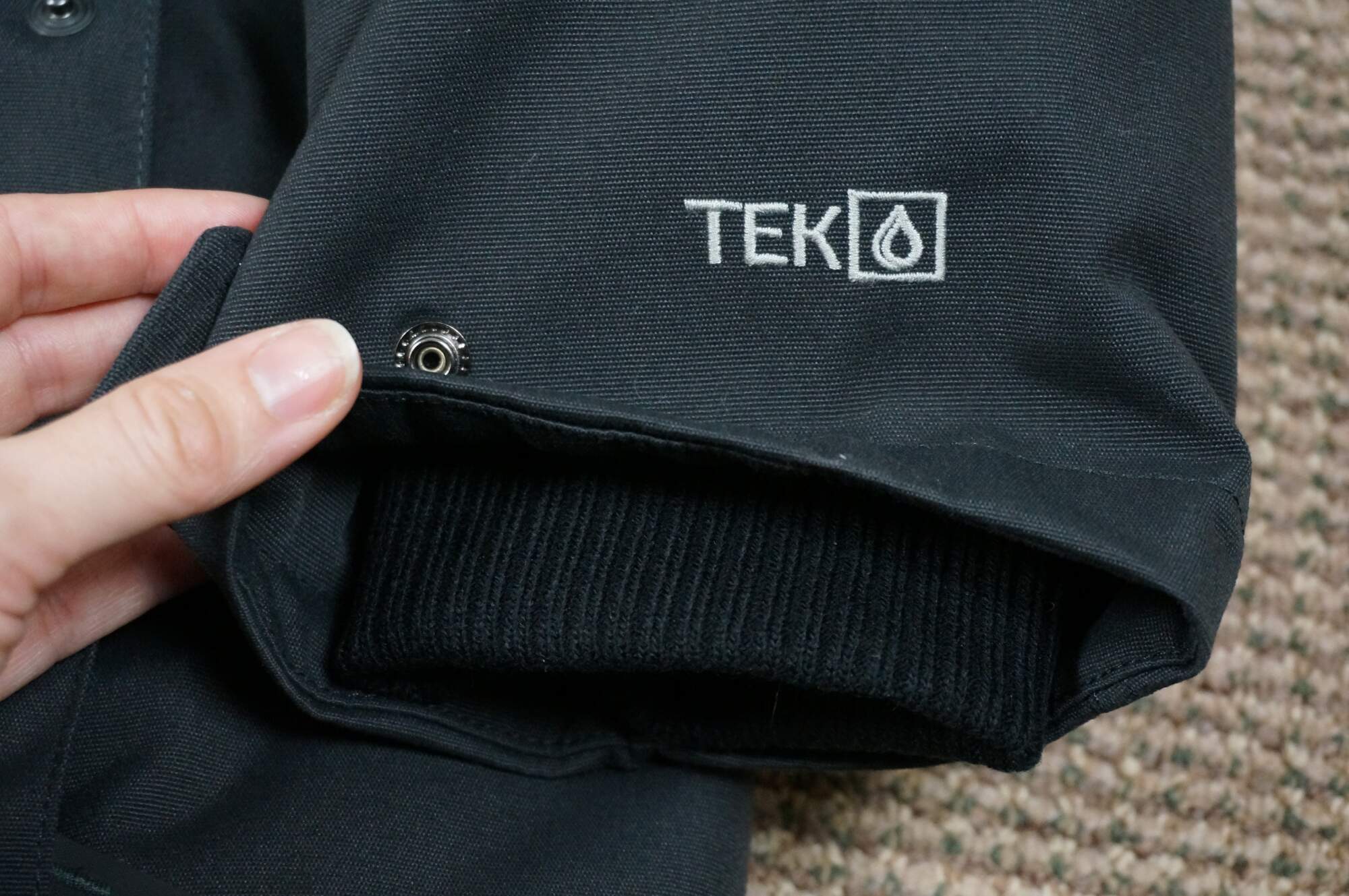 Oversized zipper with rubber grip pull cord is easy to grab with gloves on.