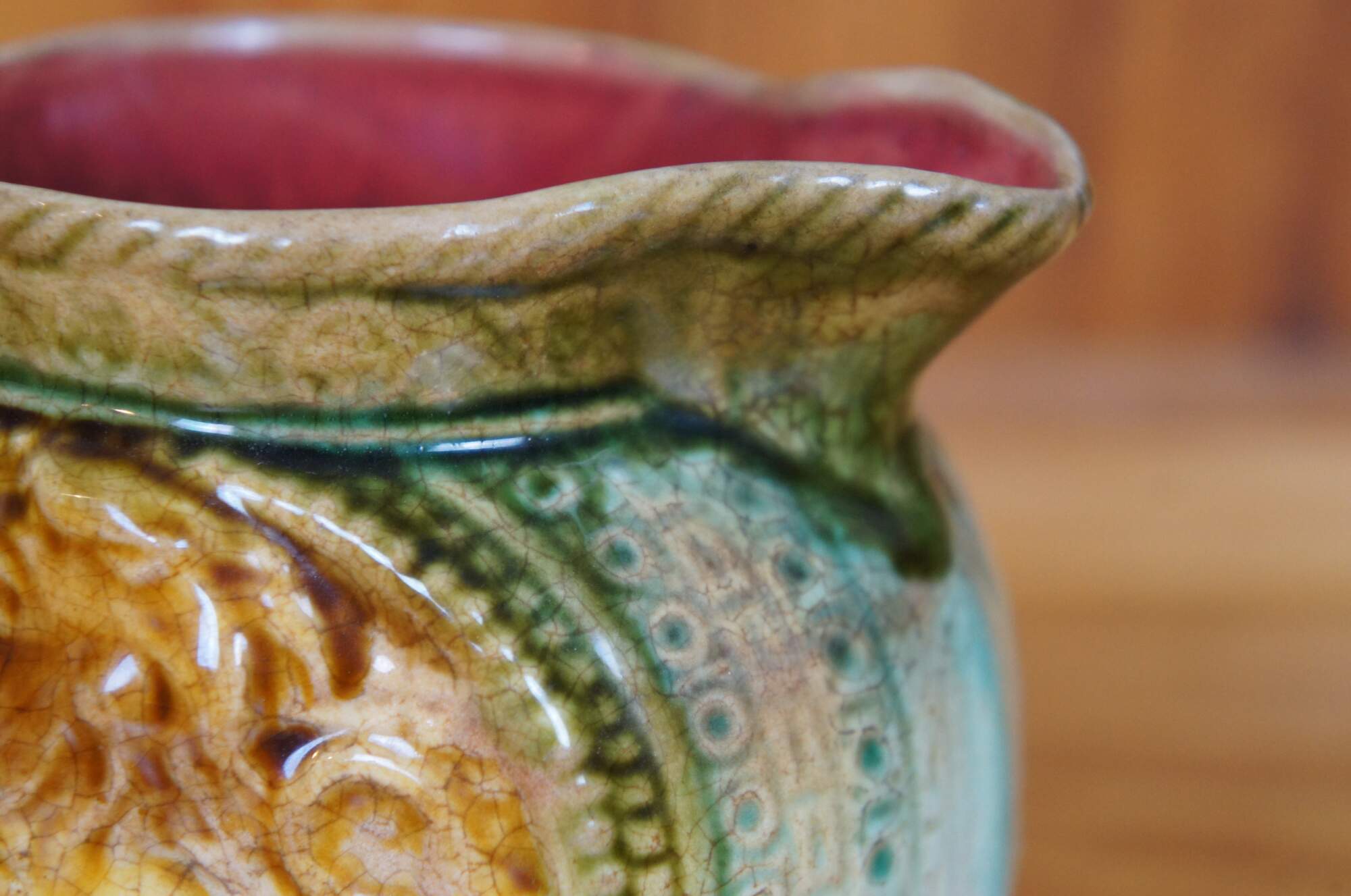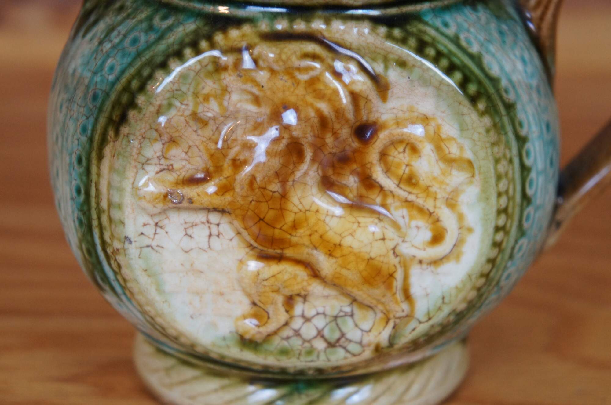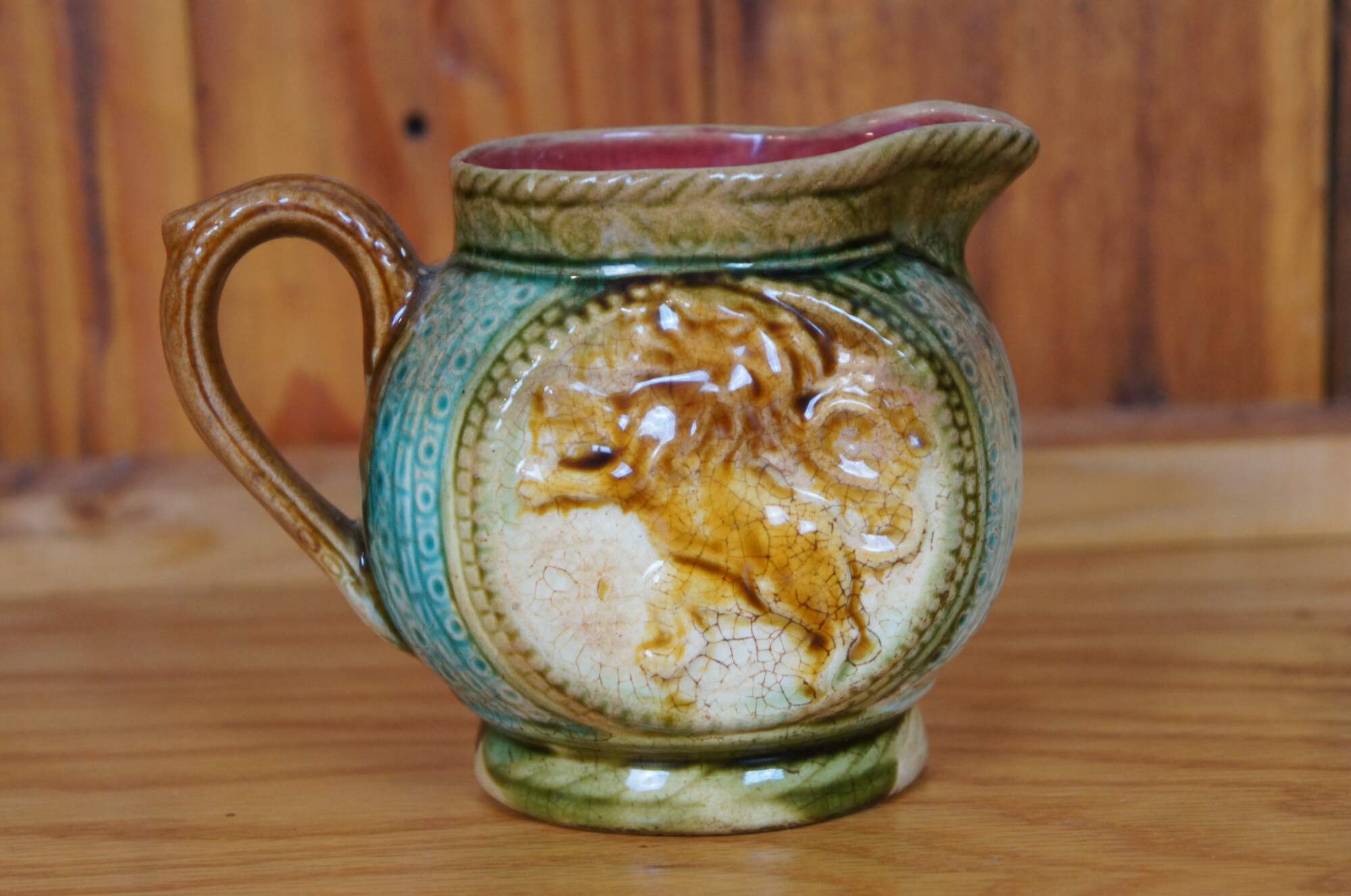 Portieux Vallerysthal Frie Onnaing (La Faïencerie d'Onnaing) Majolica Barbotine Lion Pitcher
