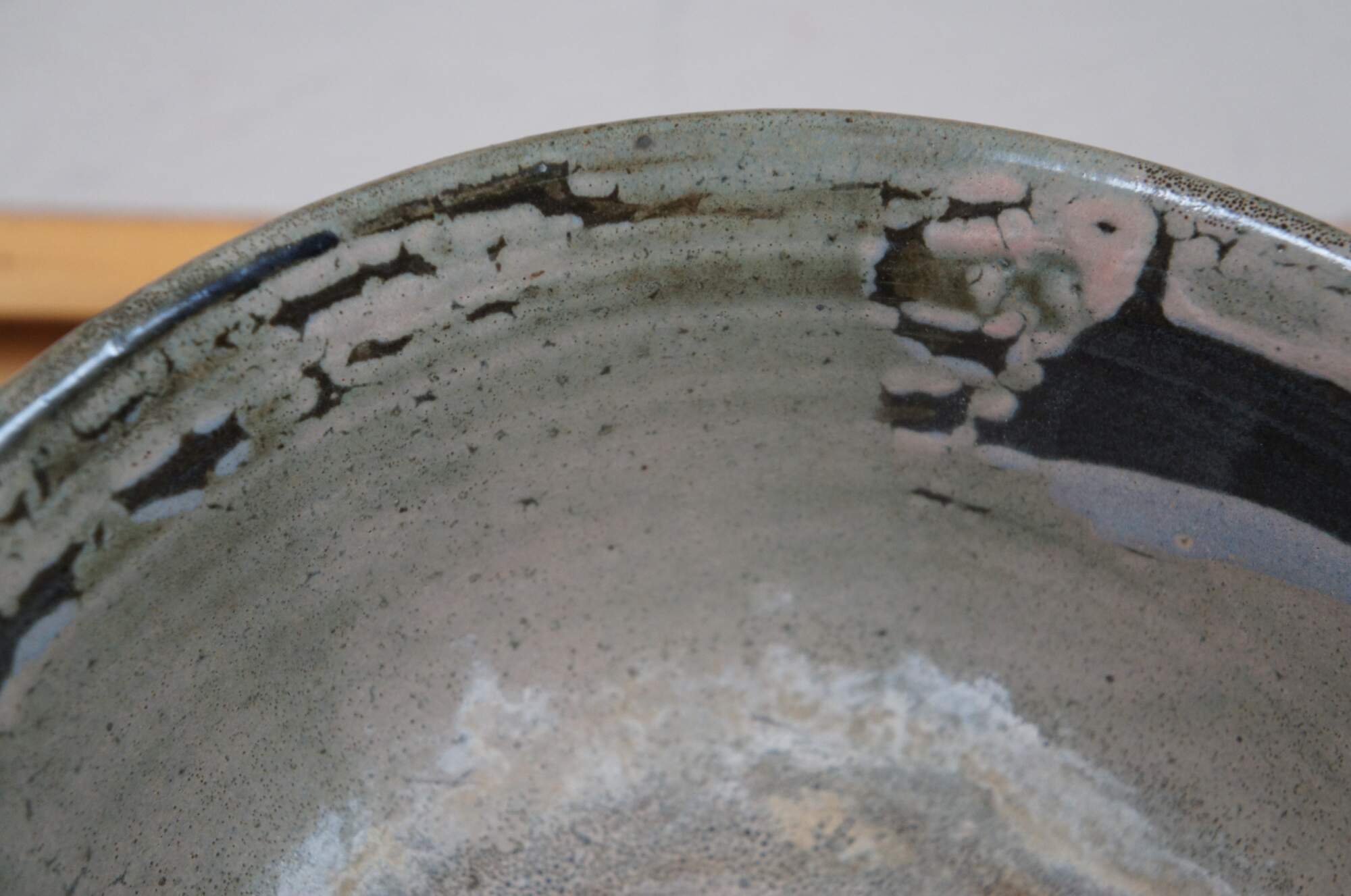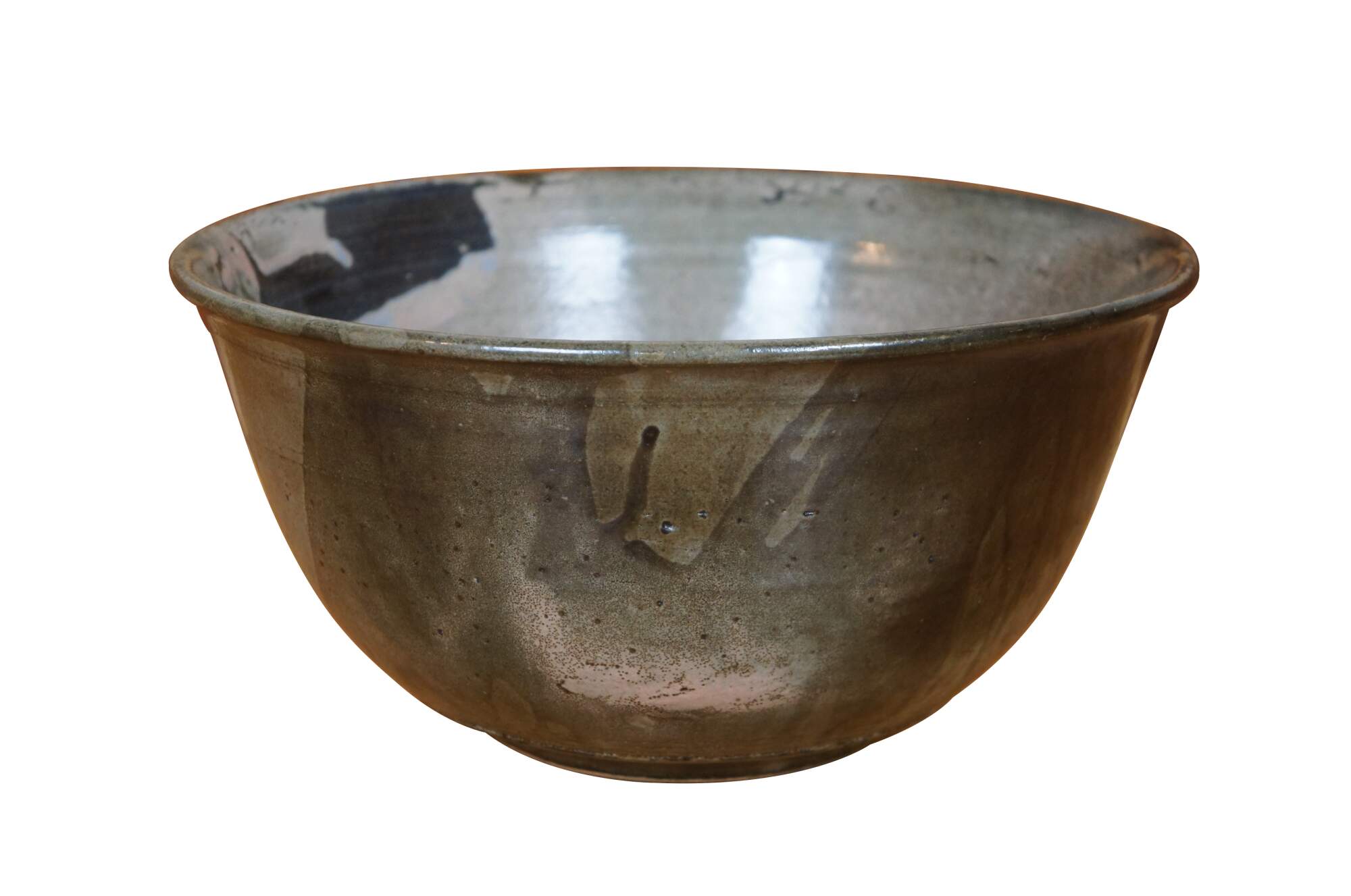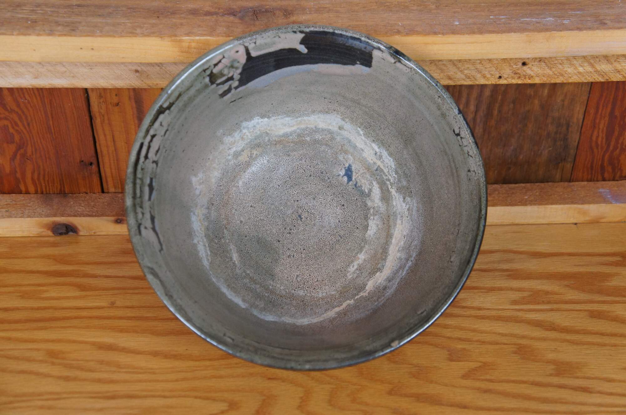 Rare large Danish Inger Rokkjaer Raku fired earthenware / stoneware bowl. Circa 1960s-1980s.
