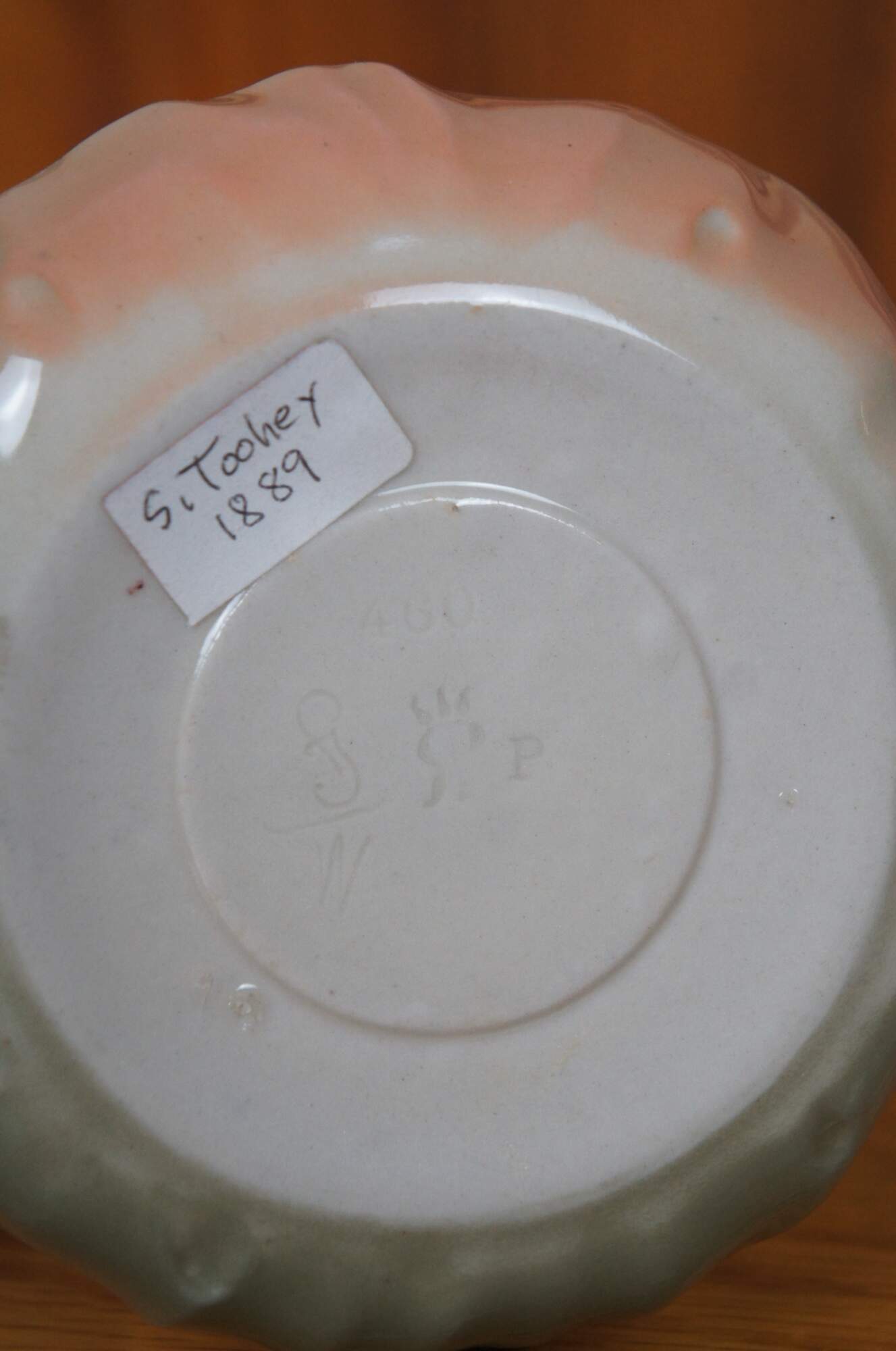 Sarah Alice Toohey "Sallie" was born in Cincinnati, Ohio in 1872. She created a wide range of works during her tenure at Rookwood Pottery from 1887 until 1931, although in the latter years she took over management of the glaze department and did little decorating. She died on November 5, 1941 in Cincinnati, Ohio and is buried in the Irish St. Joseph Cemetery. Collector interest in her pieces is considered to be above average.