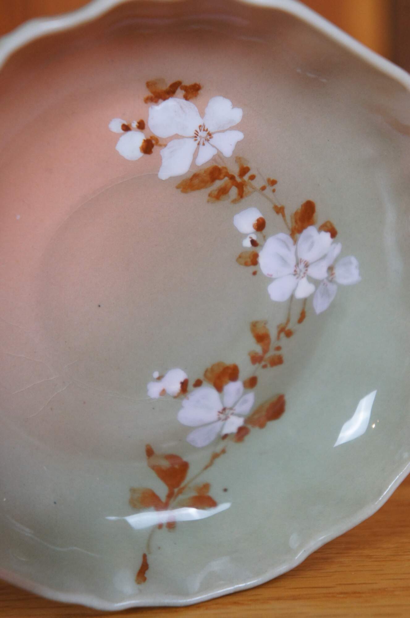 Good Overall - Gentle wear/crazing, firing flaw / some missing glaze to flower on pitcher.