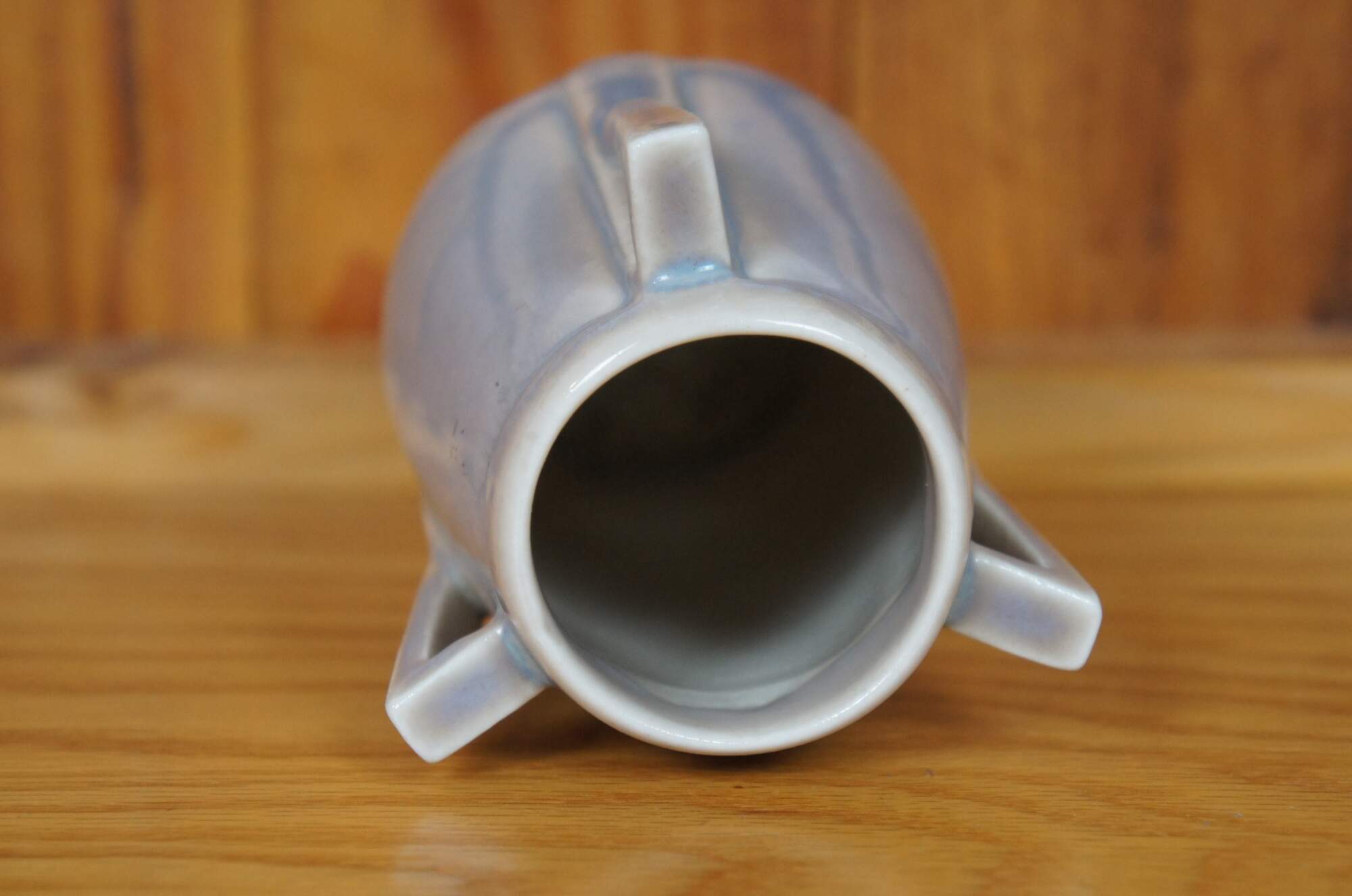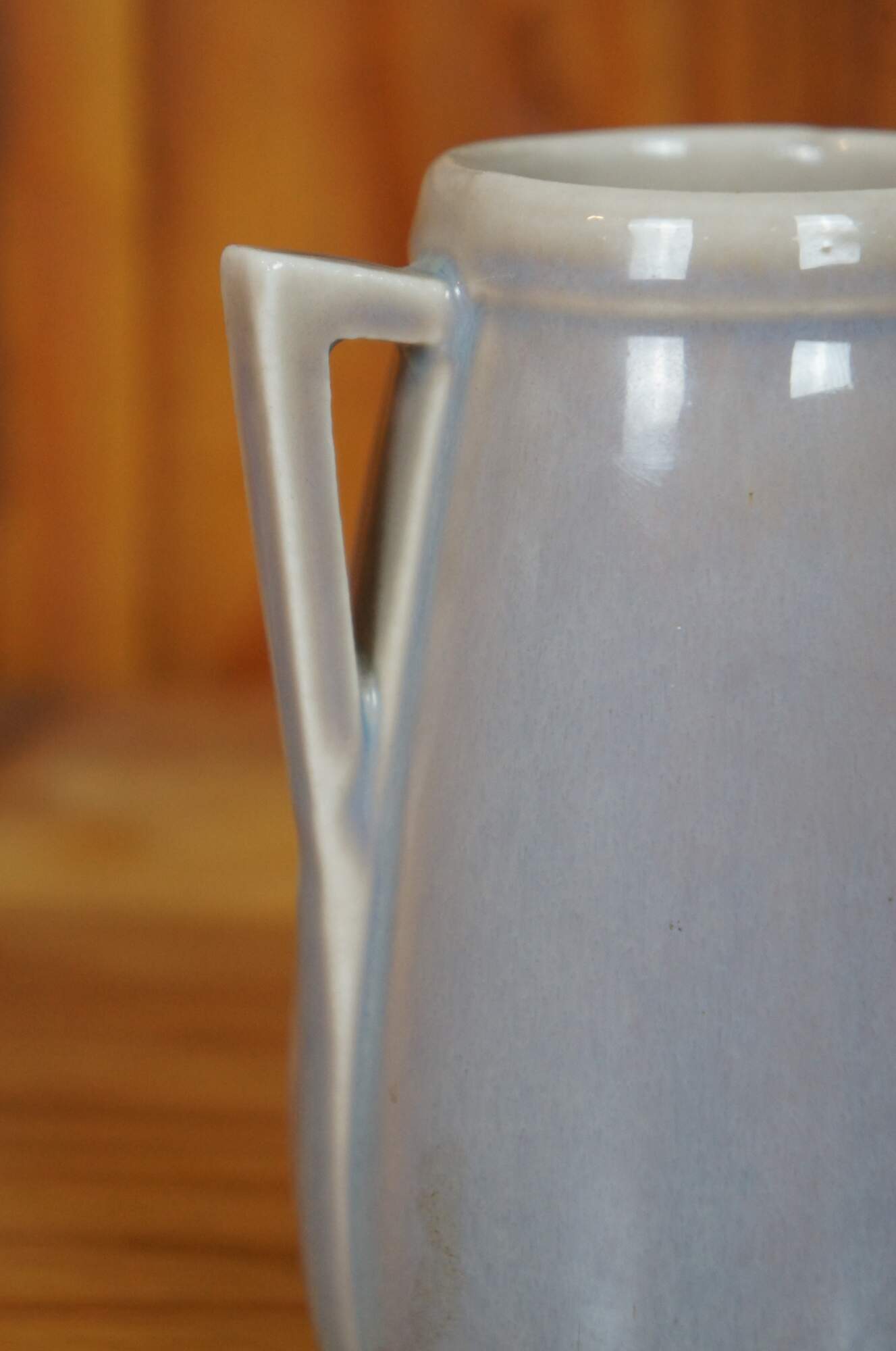 Antique Rookwood bud vase featuring Art Deco styling with three handles, finished in a soft lavender glaze