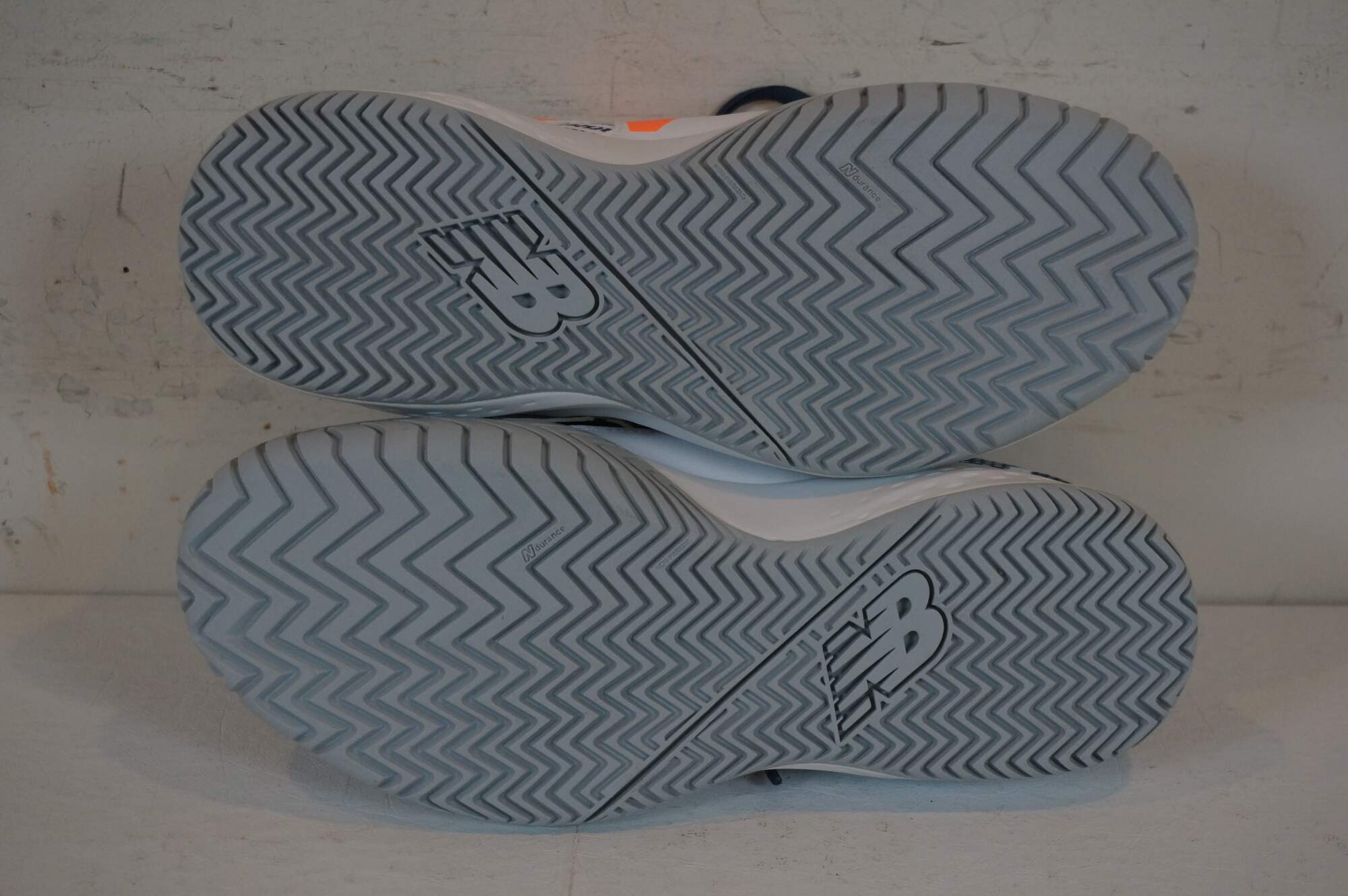 New Balance Mens Tennis - Hard Court shoes / trainers. Size 8 1/2, D Medium width. White, navy blue, orange. Gray N-durance sole.
