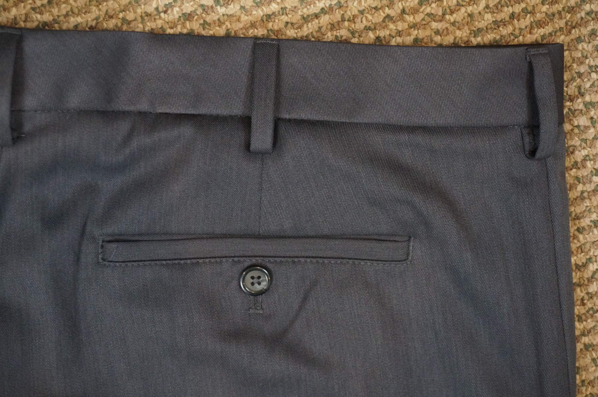 Two pairs of Van Huesen Ultimate Traveler men's pants. Ash Navy / Taupe HTR. Straight Fit - Sits Lower on the Waist - Straight Through the Leg - Straight to the Ankle - Flat Front. Premium No Iron with Soil Release, Wicking, UPF 50 Sun Protection, Flex Waistband, Permanent Crease and Machine Washable. 100% Polyester. Made in Kenya.