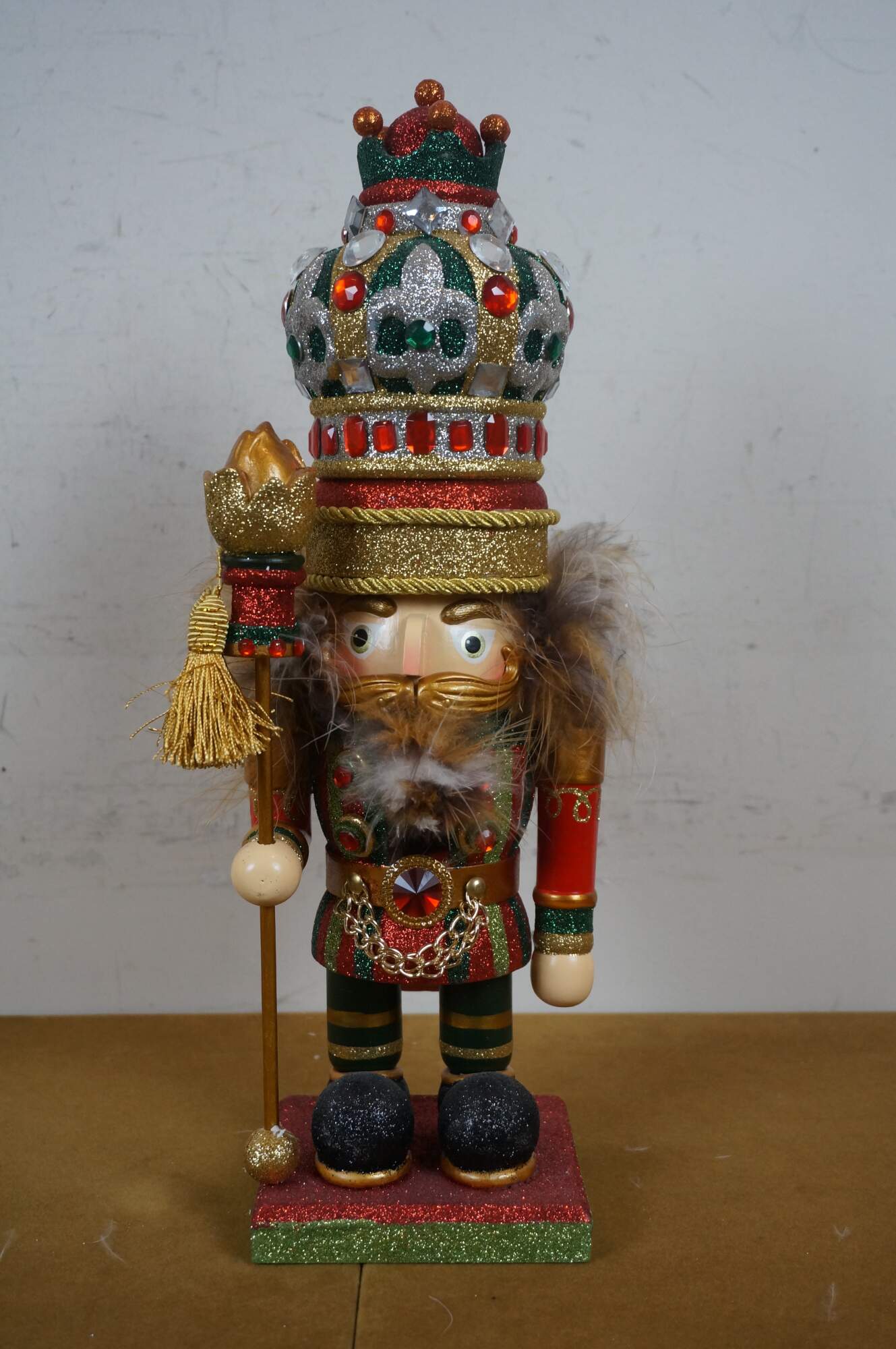 Lot of 8 late 20th century Kurt S. Adler Inc Hollywood Collections holiday / Christmas nutcracker figurines designed by Holly Adler. One pedestal display also included. Two paired design sets. Includes original boxes. Some include original tags.