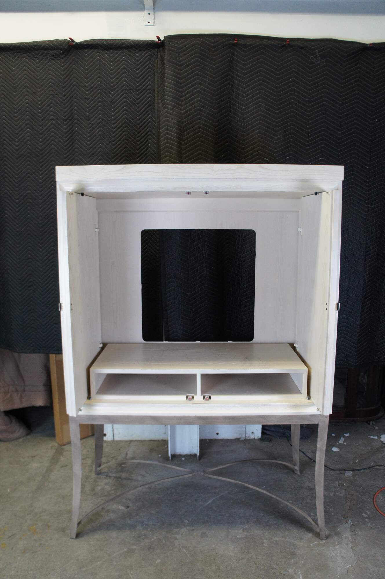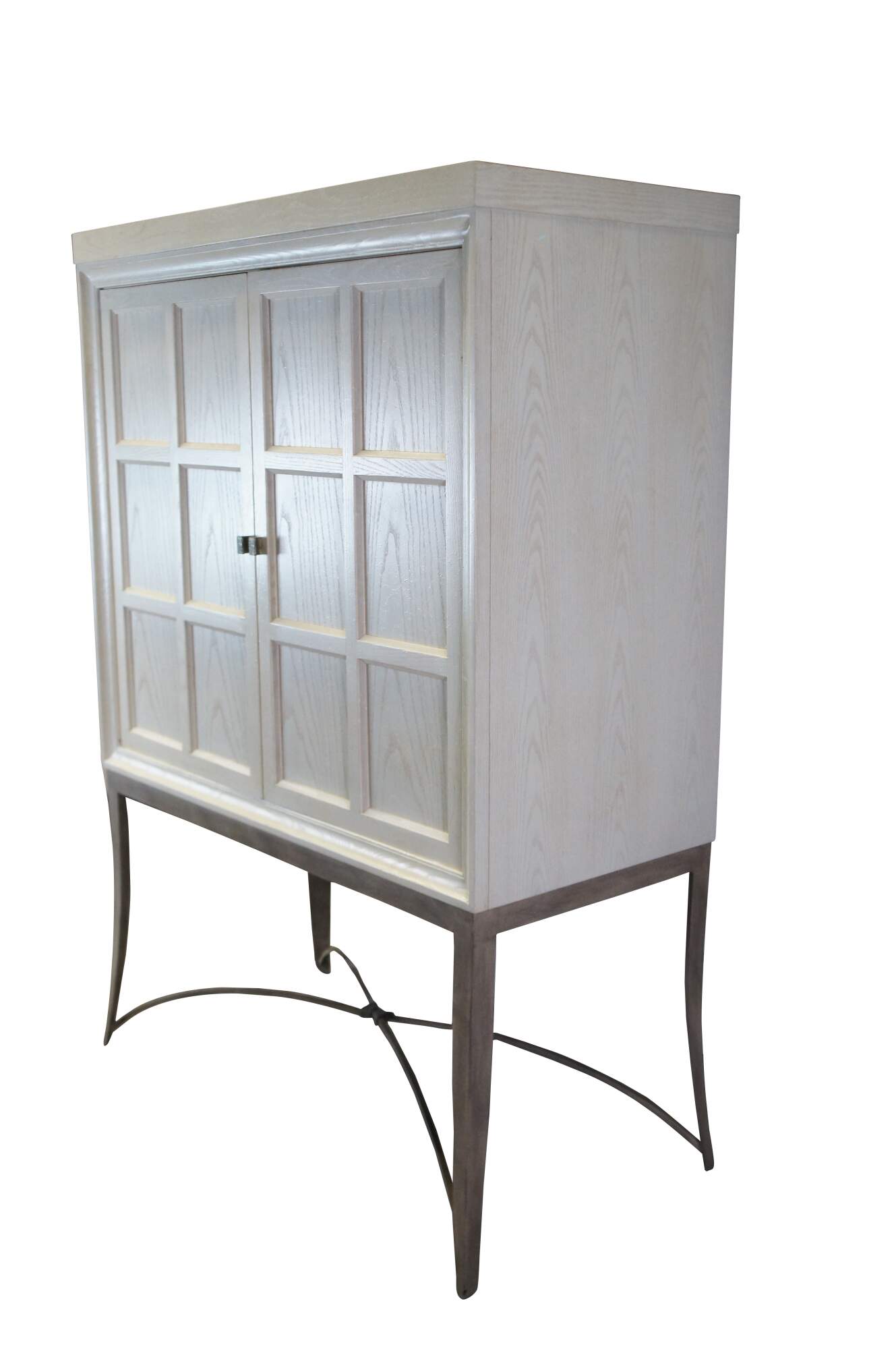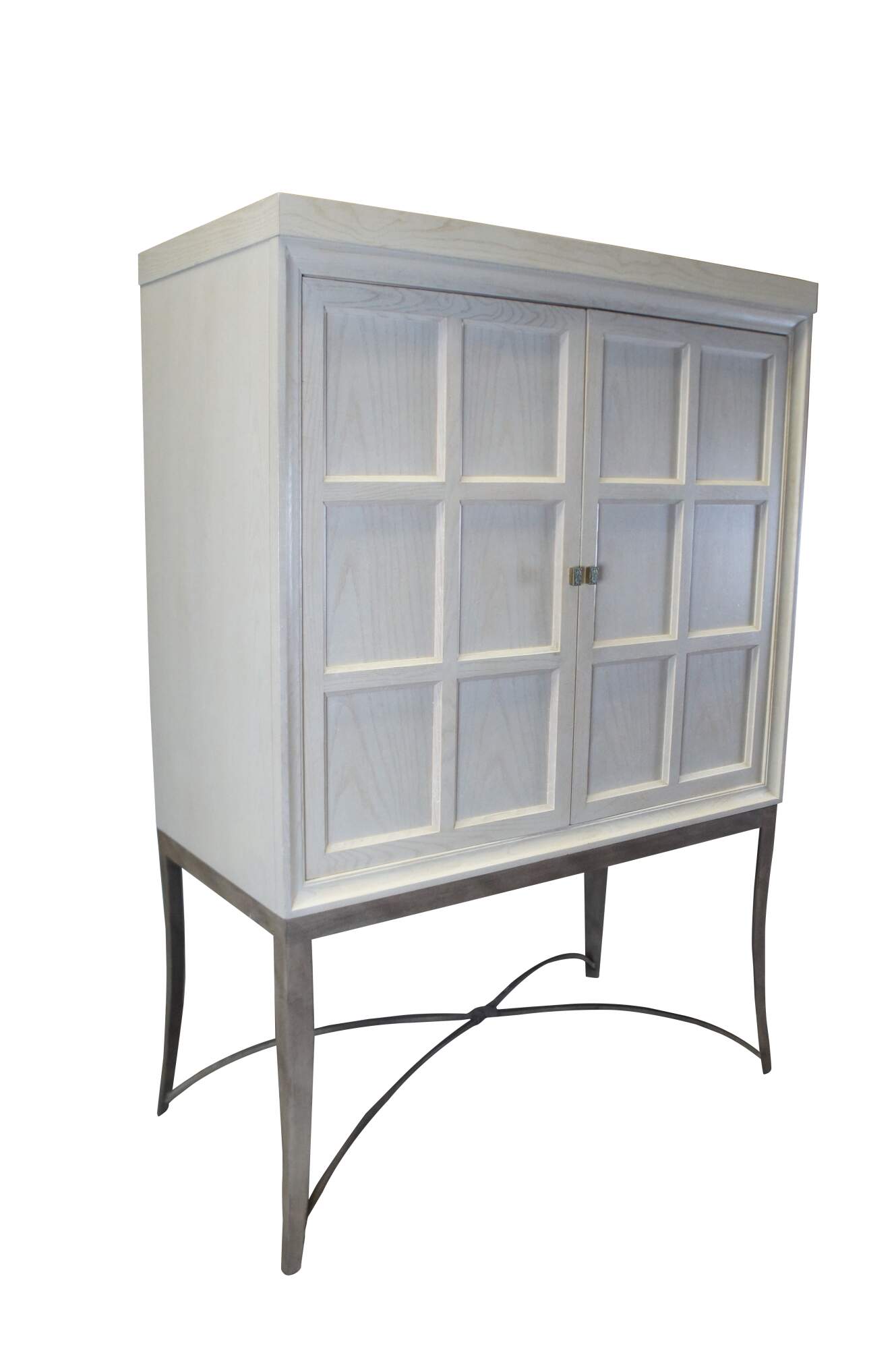 Vintage Drexel Heritage Cabochon TV console / entertainement center / bar or liquor cabinet featuring post modern style with paneled doors and iron base. 868-960. Very heavy.