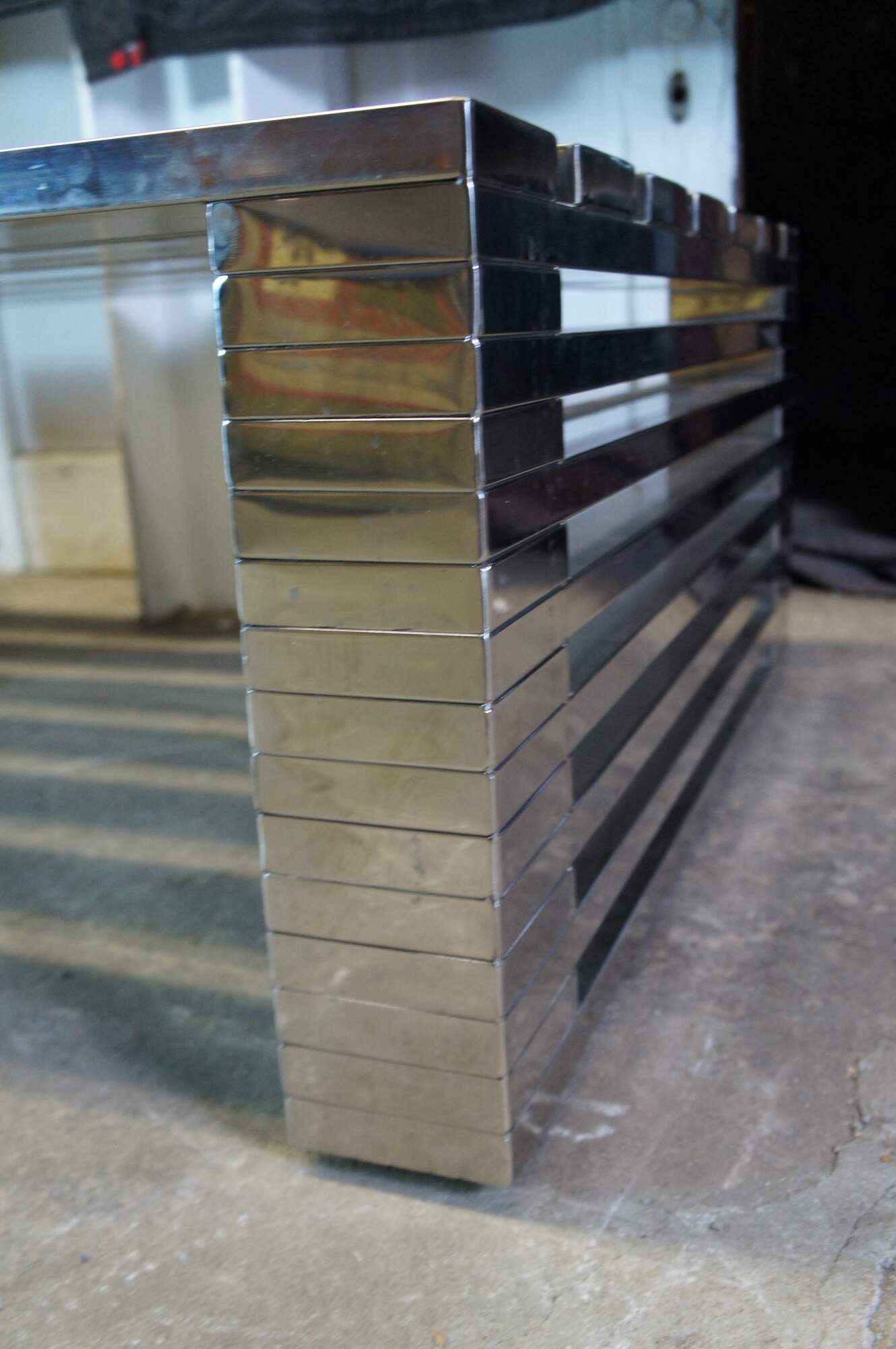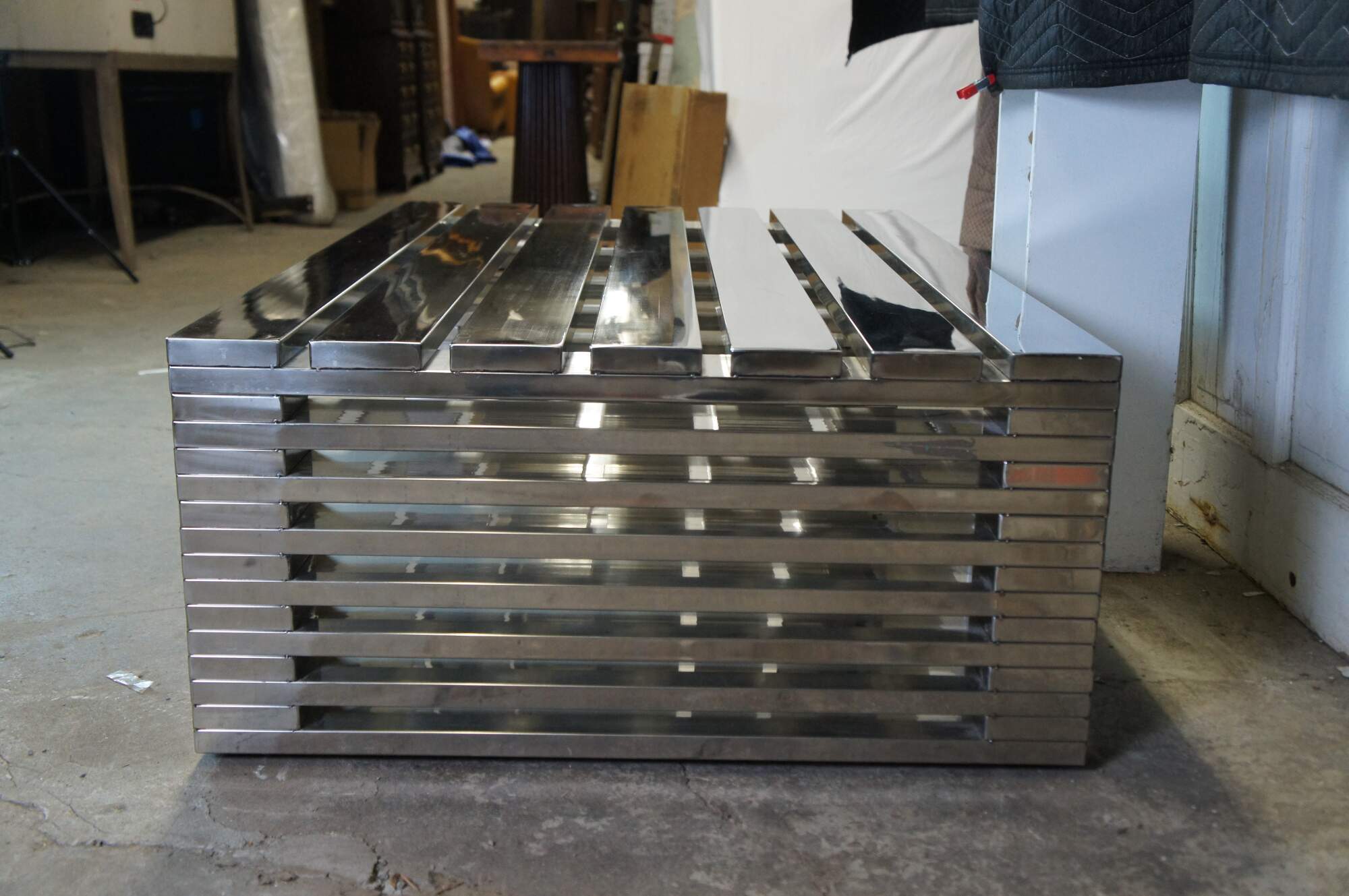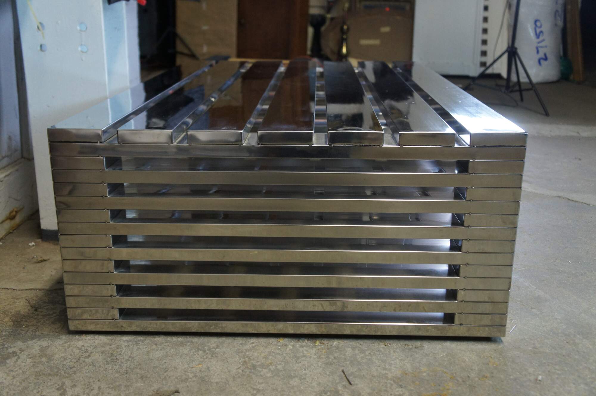Vintage Timothy Oulton Zazenne coffee or cocktail table. Made of chrome / steel featuring rectangular form and mid century modern styling. Very heavy.