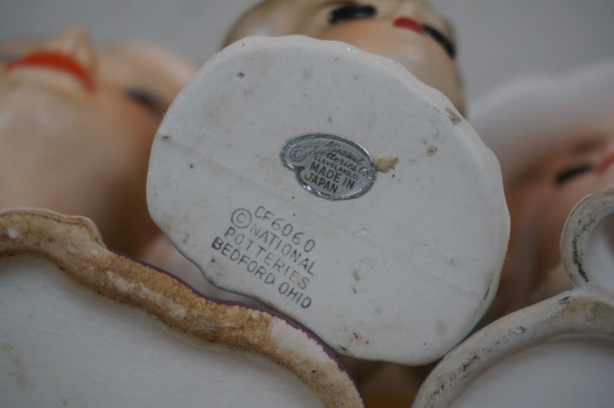 "The National Potteries Corporation, or Napco, was founded in Bedford, Ohio, by Irwin Garber and David Rein in 1938. Although Ohio was a center for art pottery in the middle of the 20th century, being the home of Rookwood, Roseville, and Weller, Napco only produced its own products, most vases for flowers, for a handful of years. After World War II, Napco grew rapidly by importing collectible ceramic novelty items from Japan’s ceramics manufacturing centers of Nagoya and Seto. During its 1950s peak, Napco was one of several companies that manufactured or imported kitschy home décor. Others, like Lefton, Inarco, Acme, Enesco, and Arnart, also delivered on requests for more ceramic dogs, cats, clowns, mermaids, Victorian ladies, anthropomorphic salt-and-pepper shakers, and head vases. However, more so than those companies, Napco launched one successful series after another. Some of these included “Angels of the Month,” “Sweethearts of All Nations,” “Calendar Cuties,” “Umbrella Flower Girls,” “Flowers of the Month,” “knee-huggers,” “Bloomer Girls,” and “Miss Cutie Pie.” These included head vases modeled after similar ones designed Betty Harrington for Ceramic Arts Studio and Betty Lou Nichols Ceramics. Due to this tough new competition from Napco, as well as from such importers as Ucagco and Enesco, Ceramic Arts Studio folded in 1955, while Nichols closed her shop in 1962. Although we know what Napco produced during the 1950s and ’60s, identifying Napco pieces from those decades can be tricky. The confusion is due to the fact that very few Napco pieces from this era were copyrighted, which meant that competitors such as Lefton often sold the exact same figurine as Napco and others—once the identifying paper label falls off, there is no way to tell the difference. In addition to kitsch, Napco delivered on various other fronts, introducing milk glass, porcelain, bone china, and Lusterware products like coffee cups, teapots, cookie jars, ashtrays, trivets, and wall pockets. In 1960, Irwin Garber left the firm to establish International Art Ware Corporation (Inarco), which also imported glass and ceramics from Japan, including head vases that bore a striking resemblance to Garber’s wife, Roselle. Napco continued business into the 1970s, importing a hit series of miniature bone china. Still, the company’s mid-century whimsy was out of place in that era’s earthier, more bohemian homes. In 1985, Inarco purchased Napco, and the headquarters were moved from Ohio to Florida a year later. The company eventually shuttered, leaving behind a smorgasbord of novelty ceramics highly desired among collectors." (Source: Collectors Weekly / WorthPoint)
