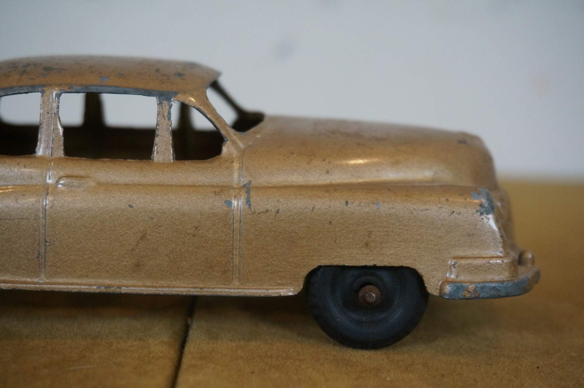 Vintage 1950's Structo gold pressed steel number 20 Cadillac / two door sedan / car with solid rubber tires. This is one of the cars that went with the Structo Toy Car Transporter Carrier Hauler.