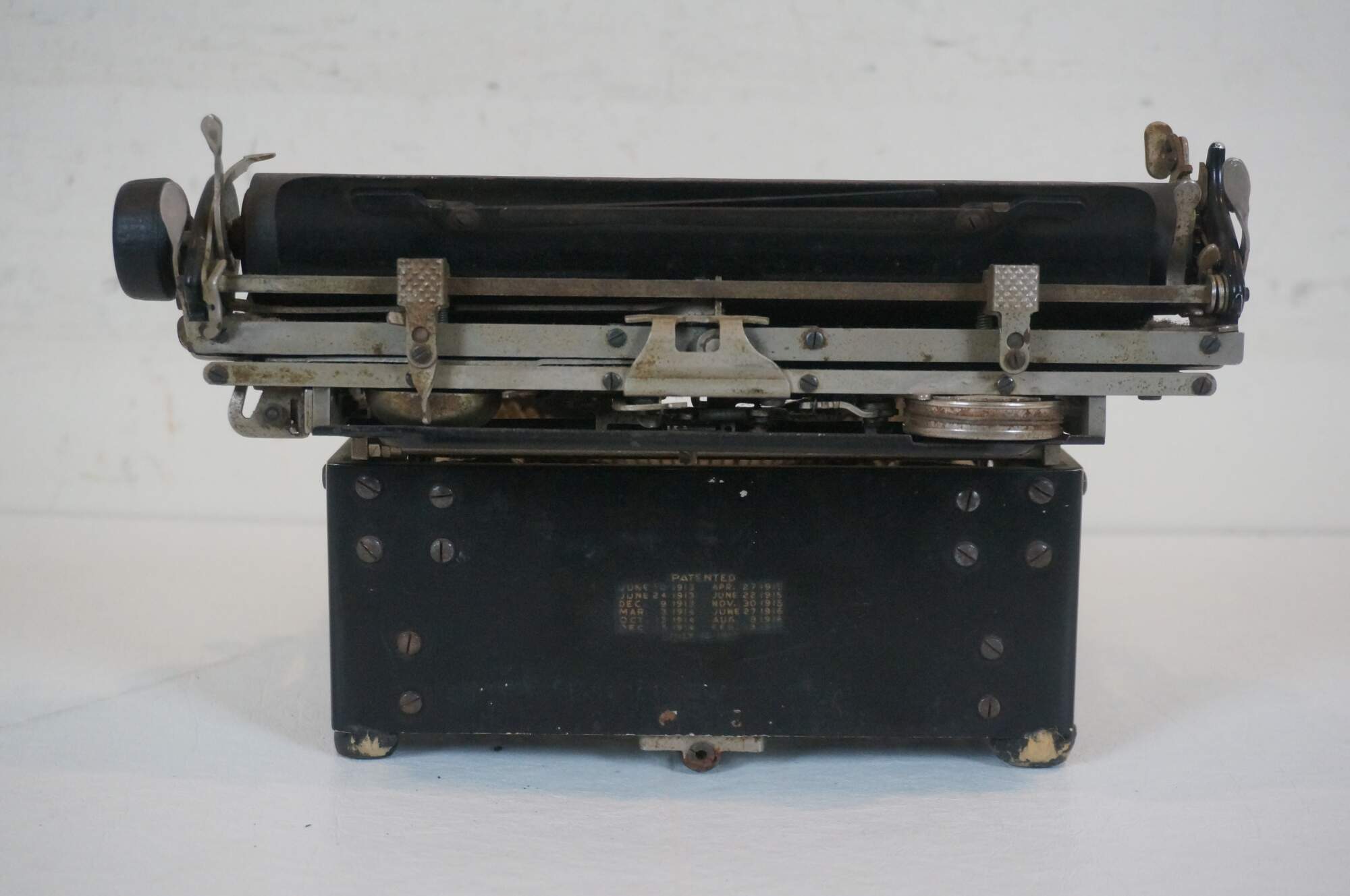 Antique circa 1919 Model 3 folding manual typewriter by the Corona Typewriter Company, Inc. Enameled black metal frame with round yellowed keys. Carriage folds over keyboard for more convenient storage. No case. Serial number 278309.