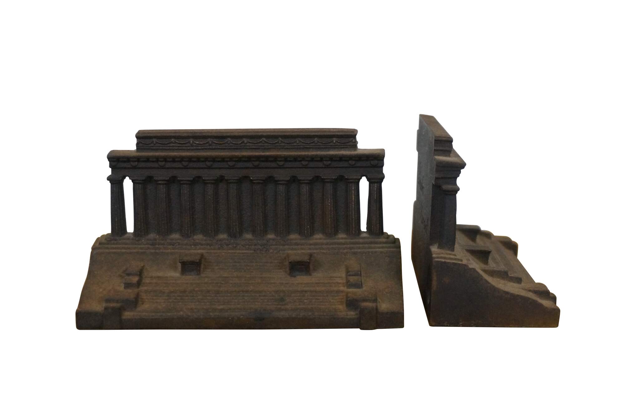 Antique early 20th century Bradley & Hubbard cast iron bronzed bookends in the shape of the Lincoln Memorial, which was dedicated on May 30, 1922.
