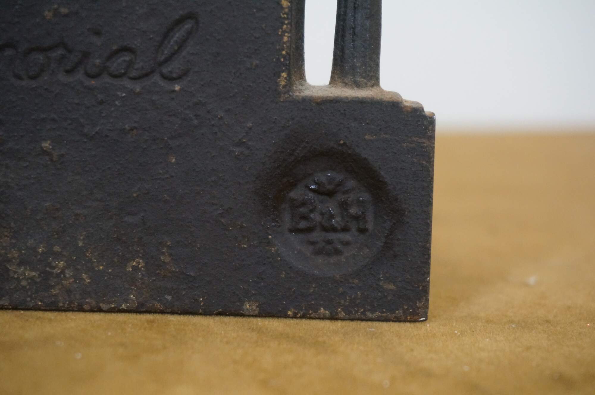 Bradley and Hubbard was no exception, adding the production of flags, hoop skirts, spring measuring tapes and match safes during the war years. The discovery of oil in Pennsylvania in 1859 also had a great impact on the product line of Bradley & Hubbard with the decision to begin production of kerosene burning lamps. By 1871, kerosene virtually replaced whale oil for heating and illumination and new ways of burning it more efficiently were needed. Between 1868 and 1875, Bradley and Hubbard secured 33 patents relating to the design and mechanics of oil burning lamps (in all, the company would eventually patent a total of 238 designs and mechanical devices). The company was again reorganized in 1875, this time as a joint stock company renamed The Bradley and Hubbard Manufacturing Company. rowing rapidly throughout the 1880's, the company added new products such as architectural grilles, railings, fences, window guards, and elevator enclosures. By the 1890's, the Bradley and Hubbard name was synonymous with high quality and artistic merit. Their products were marketed not only in their own showrooms in New York, Boston, Chicago and Philadelphia, but also by a force of salesmen traveling throughout the country and by the large retail firms of Marshall Field & Company, Sears and Roebuck & Company, and Montgomery Ward & Company. The Bradley and Hubbard Manufacturing Company survived the Great Depression, but after 88 years in business, it was sold in 1940 to the Charles Parker Company, also of Meriden. Famous for its Parker sporting shotgun, the company also made household items such as coffee mills, waffle irons, lamps, locks, and door knockers. Upon the acquisition of the Bradley and Hubbard factories, the Parker Company instituted its Bradley and Hubbard Division with the stated intent of carrying on production of some products of the former company such as bathroom accessories, lighting fixtures, architectural bronzes and brass work. Within a year and a half after the purchase, the United States entered into WWII and the Parker Company turned its attention to the war effort. As the war escalated, most metal production was diverted to war related goods, making it unlikely that much, if anything, from the Bradley and Hubbard line was produced, unless for military use. By 1950, all references to a Bradley and Hubbard Division of the Parker Company had been dropped from the company's literature. Finally, in 1976, a spectacular blaze totally destroyed the long abandoned Bradley and Hubbard factory buildings. Any records of the old Bradley and Hubbard Manufacturing Company that were still in the building at the time were either burned or lost in the rubble when the shell was afterwards demolished." (Source: Smithsonian Institute)