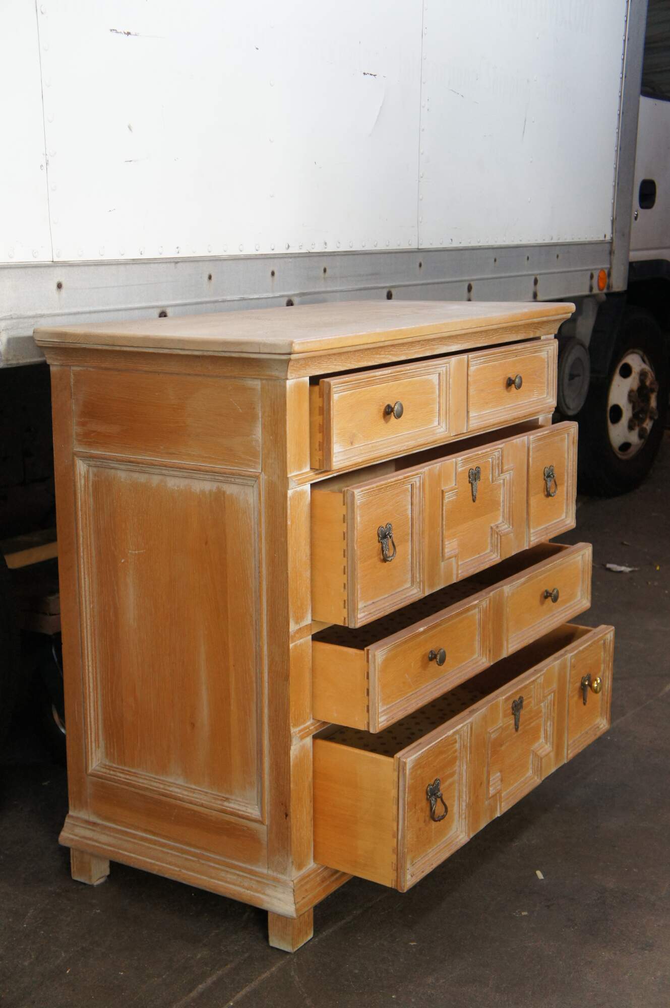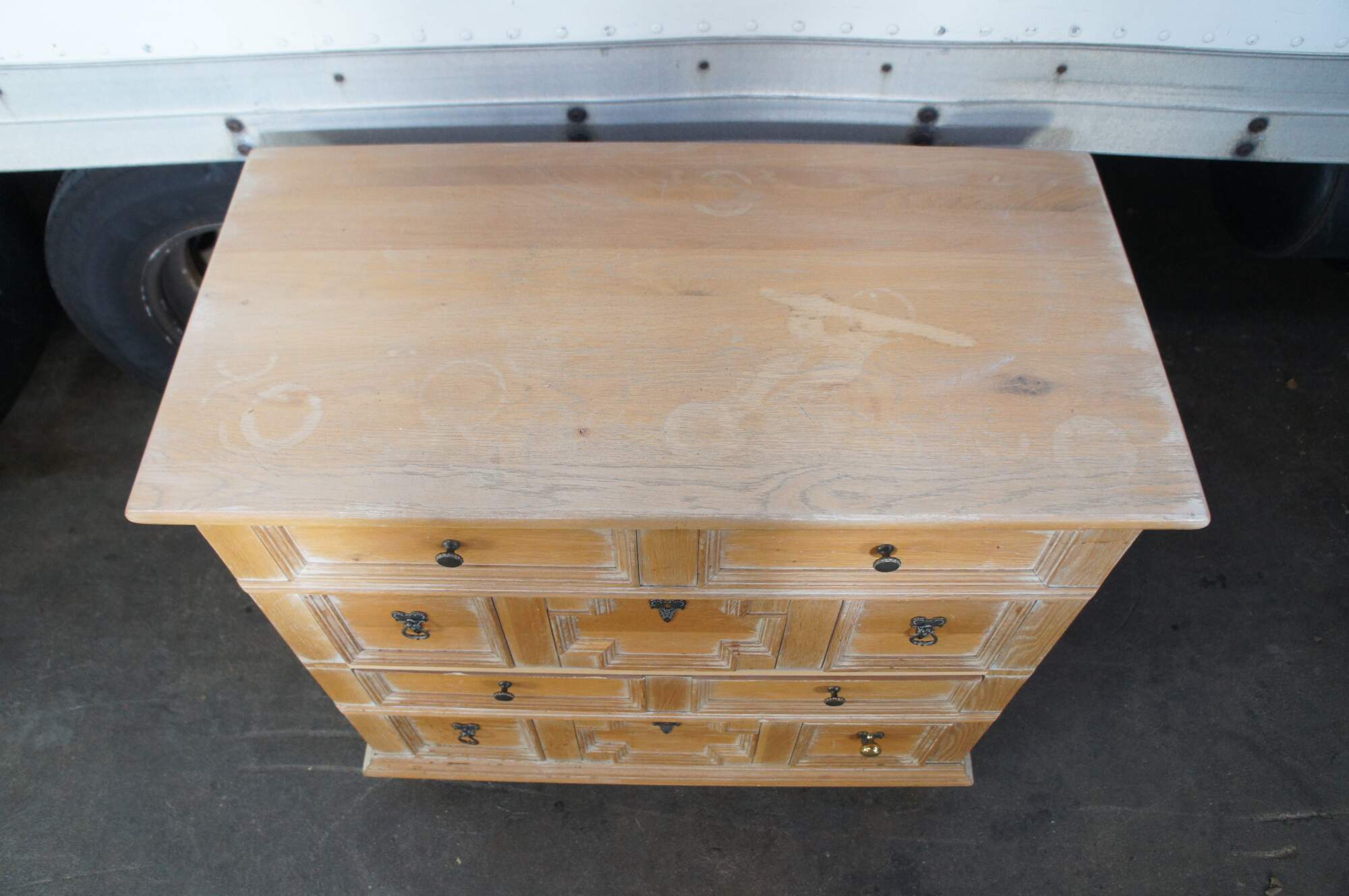 Lexington Furniture Industries American Country West Santa Fe Four Drawer Dresser. Features a rectangular form made from oak with four dovetailed drawers. The surface has a unique partial white wash and unique paneling. Lexington 912-221, Made in USA